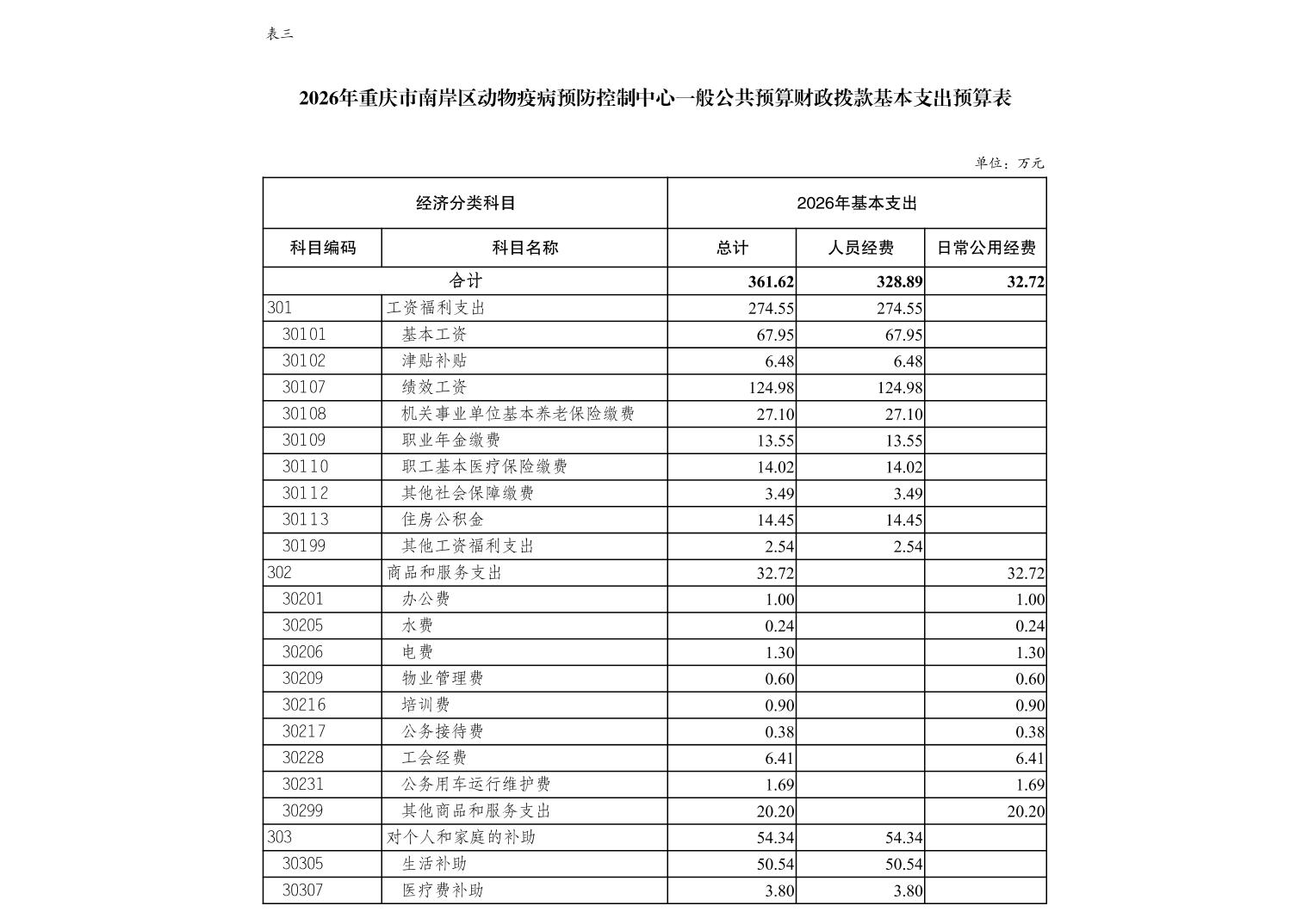 重庆市南岸区动物疫病预防控制中心2026年单位预算情况说明