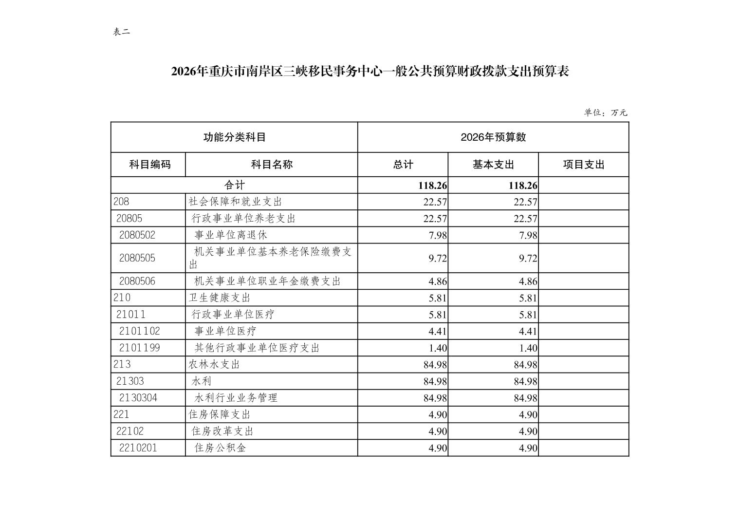 重庆市南岸区三峡移民事务中心2026年单位预算情况说明