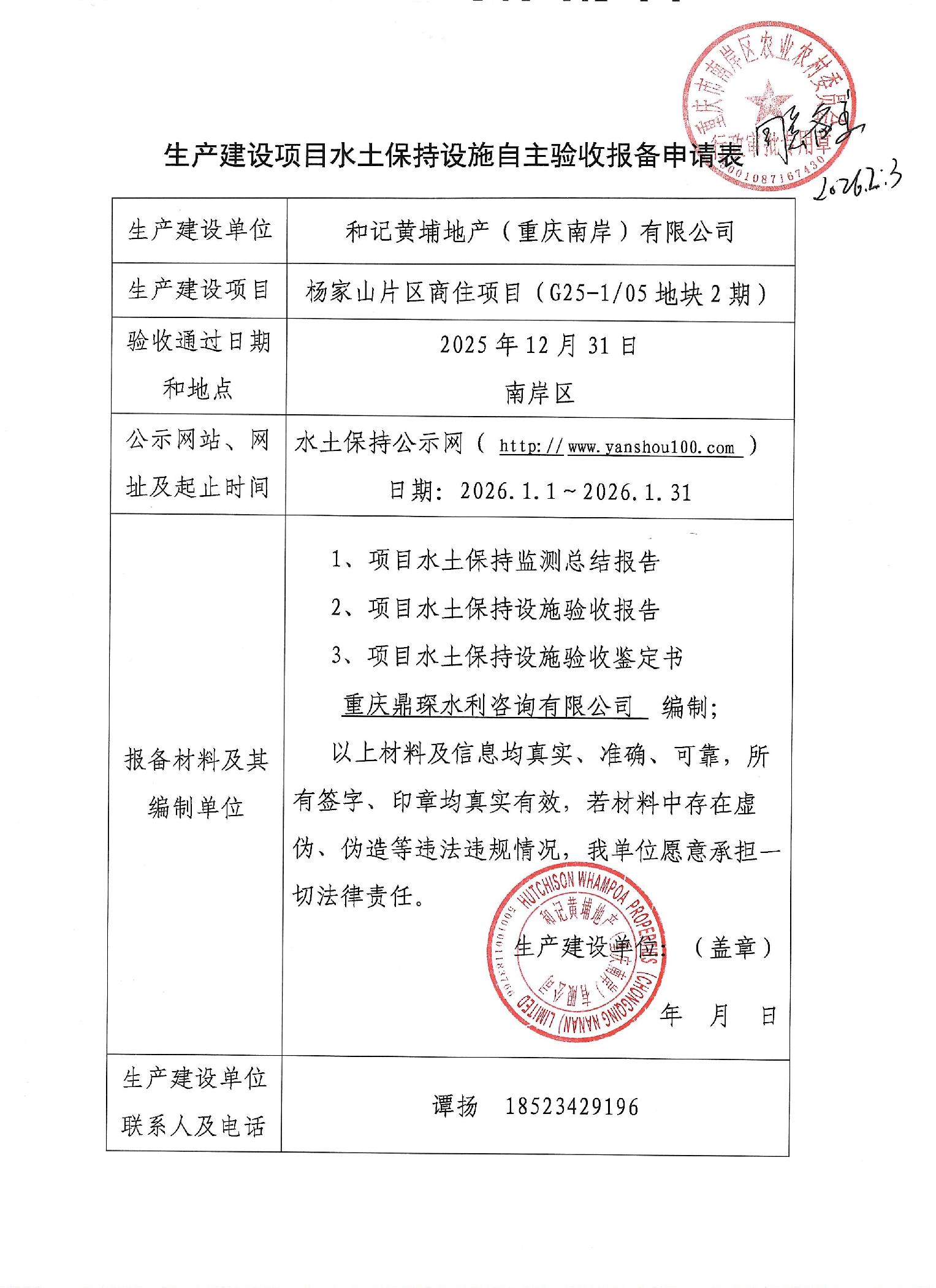 杨家山片区商住项目(G25-105地块2期)自主验收报备申请表