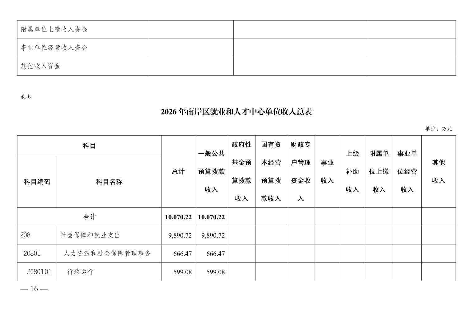 重庆市南岸区就业和人才中心2026年单位预算情况说明