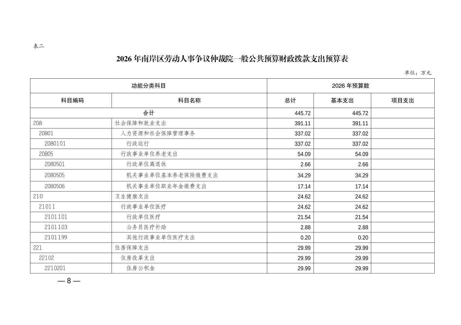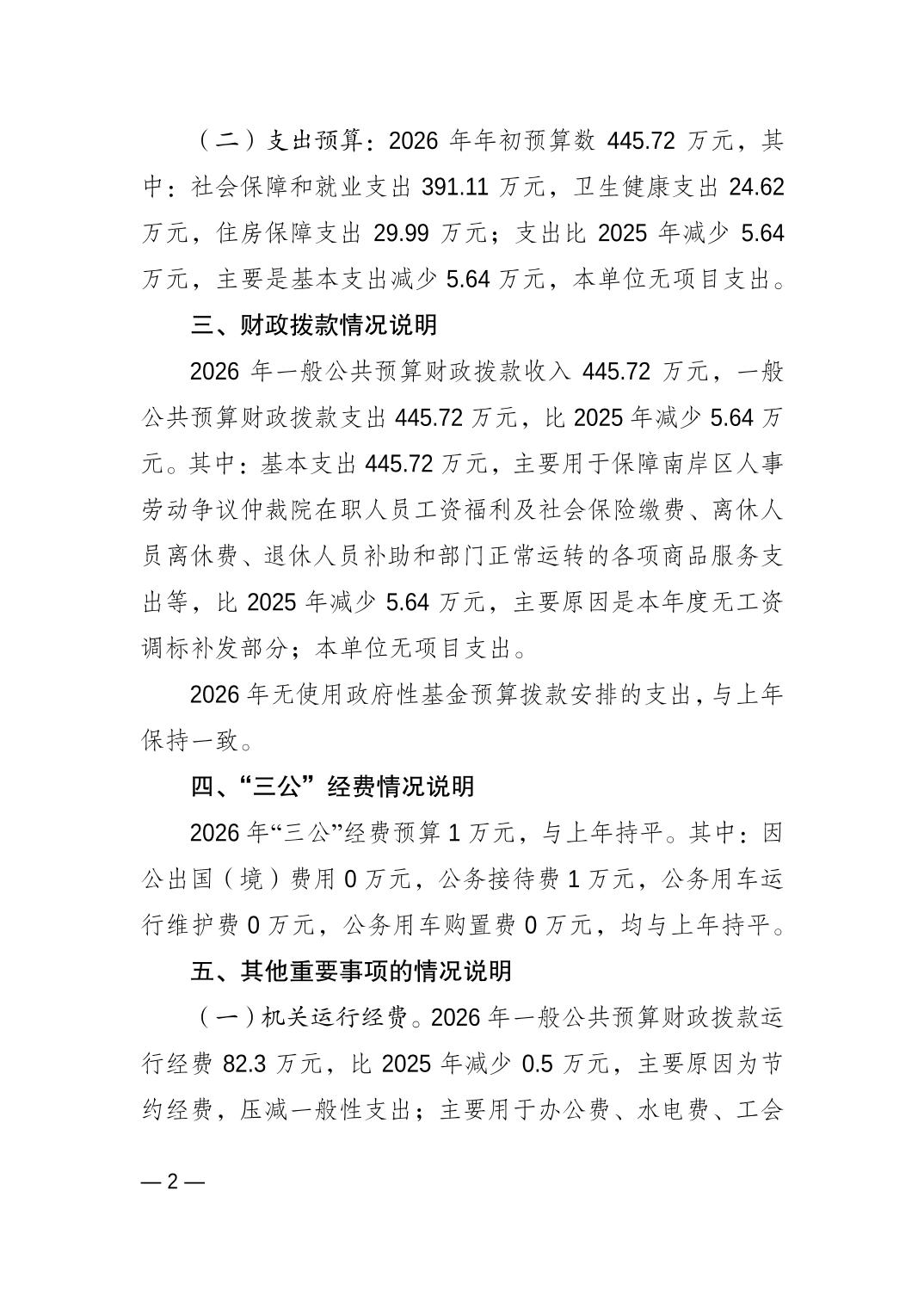 重庆市南岸区人事劳动争议仲裁院2026年单位预算情况说明