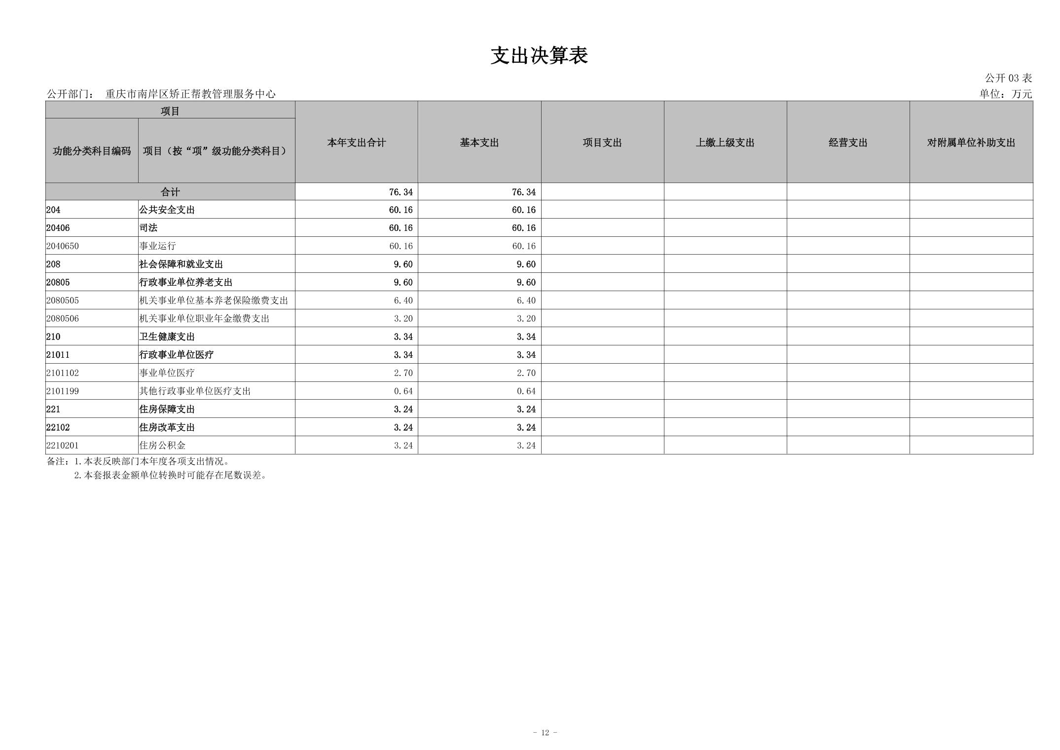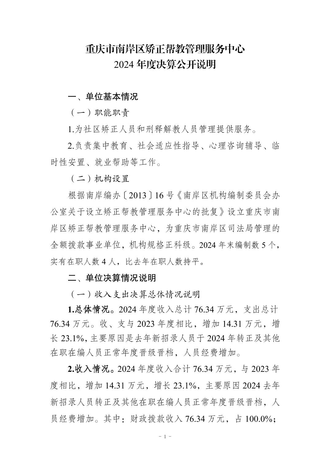 重庆市南岸区矫正帮教管理服务中心2024年度决算公开说明