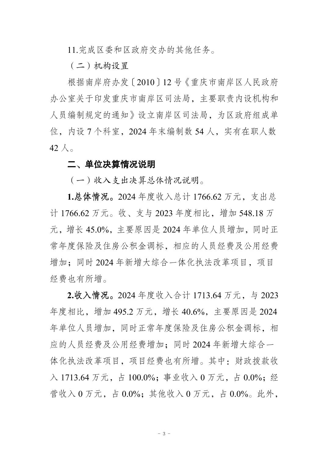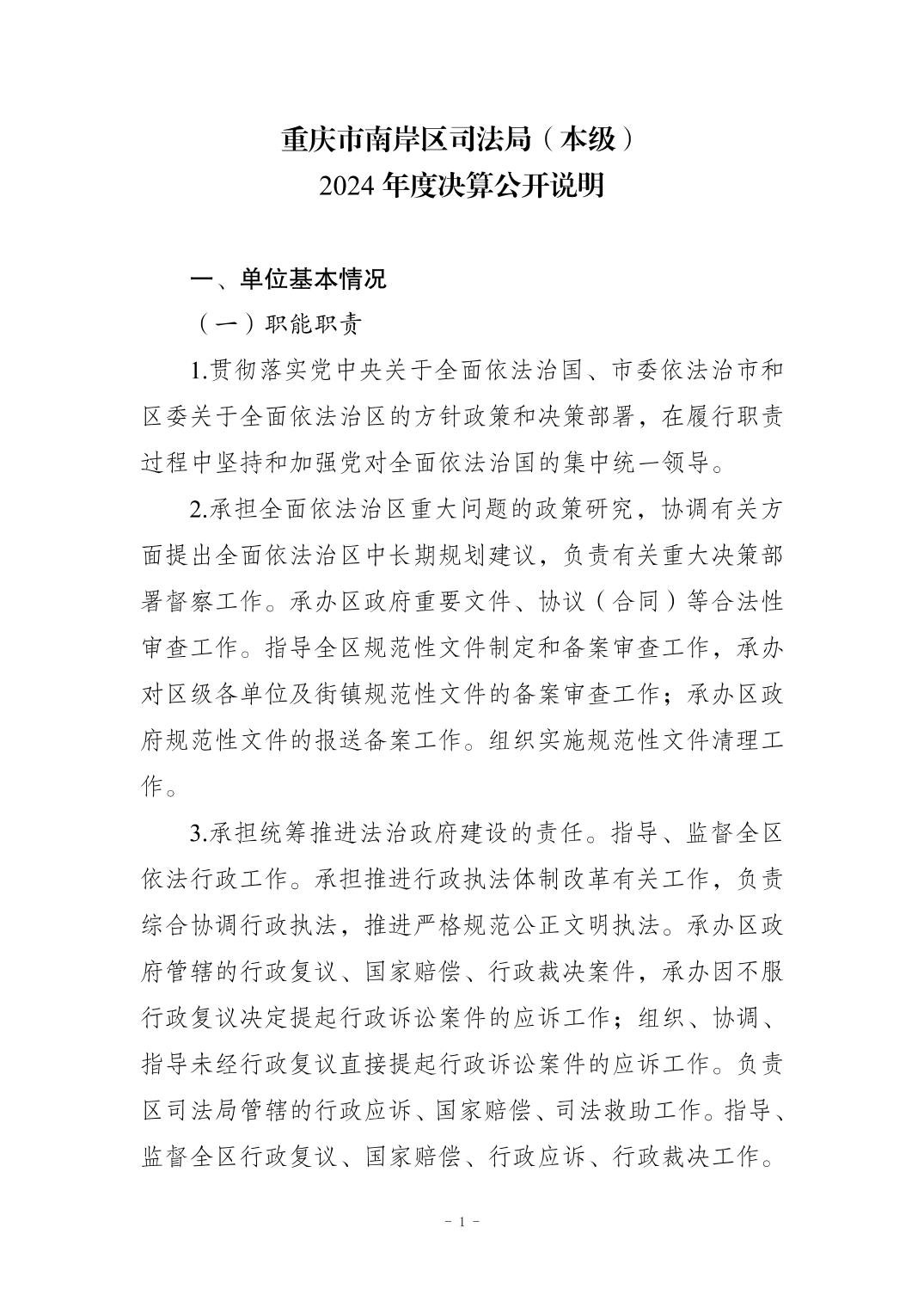 重庆市南岸区司法局(本级)2024年度决算公开说明