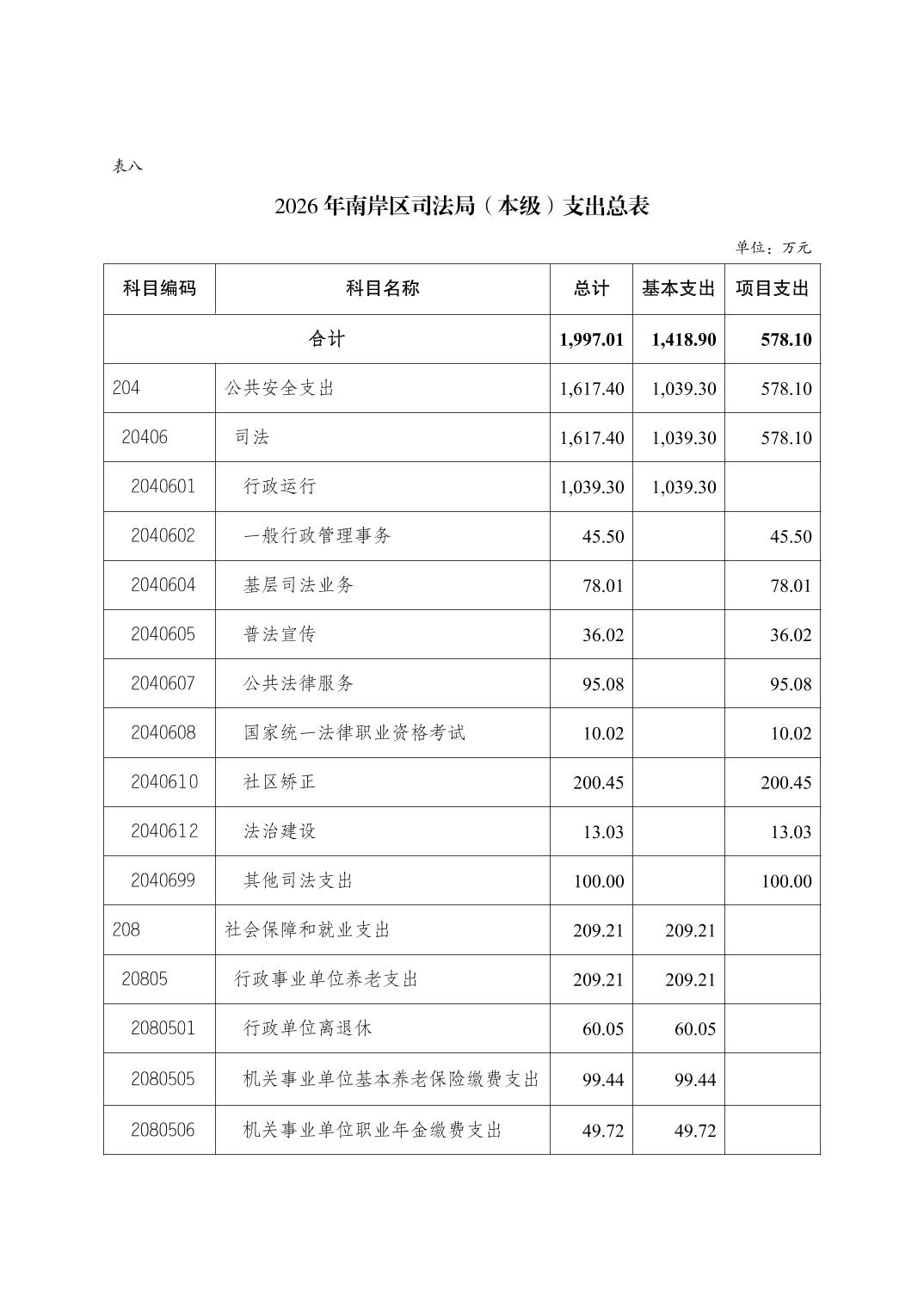 重庆市南岸区司法局(本级)2026年单位预算情况说明