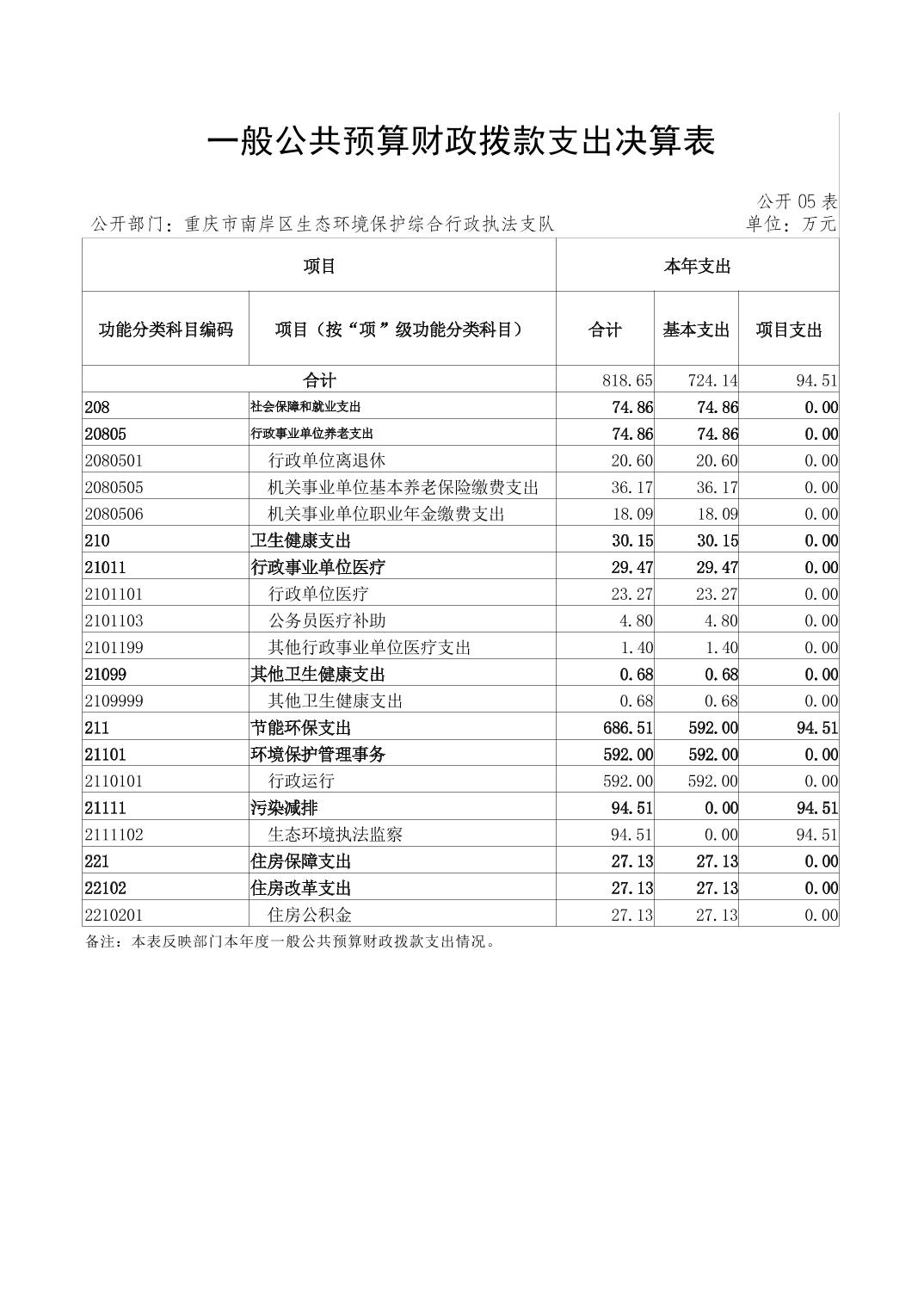 重庆市南岸区生态环境保护综合行政执法支队2022年度部门决算情况说明