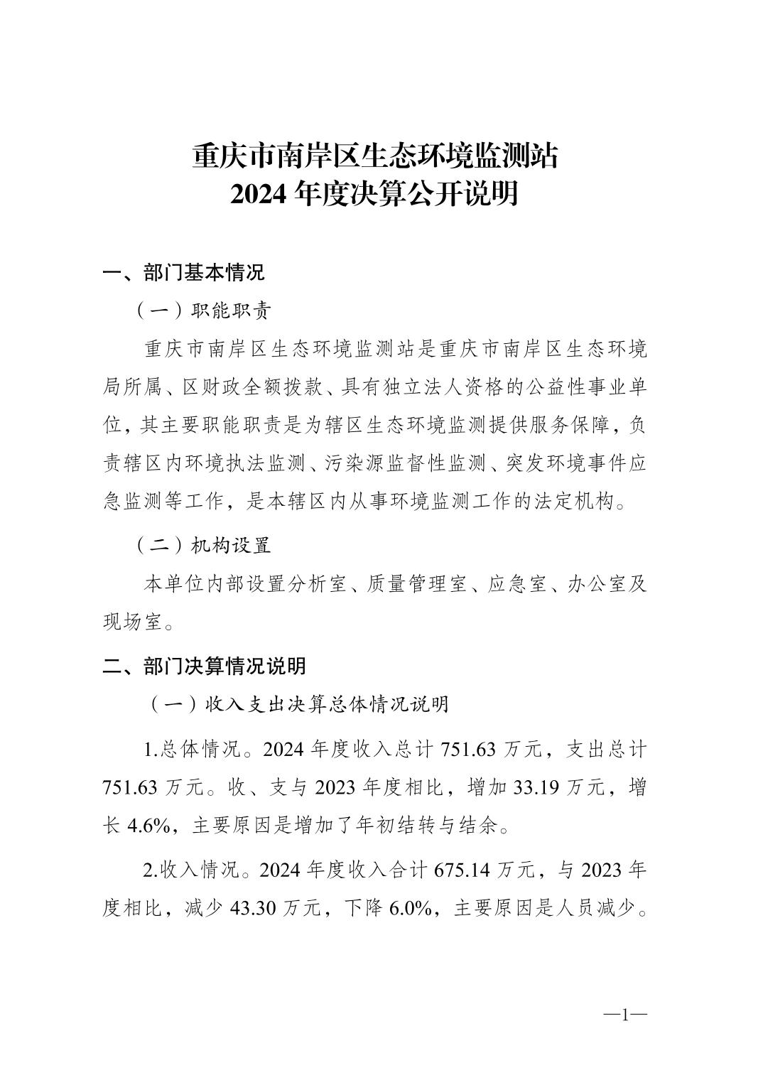 重庆市南岸区生态环境监测站2024年度决算公开说明