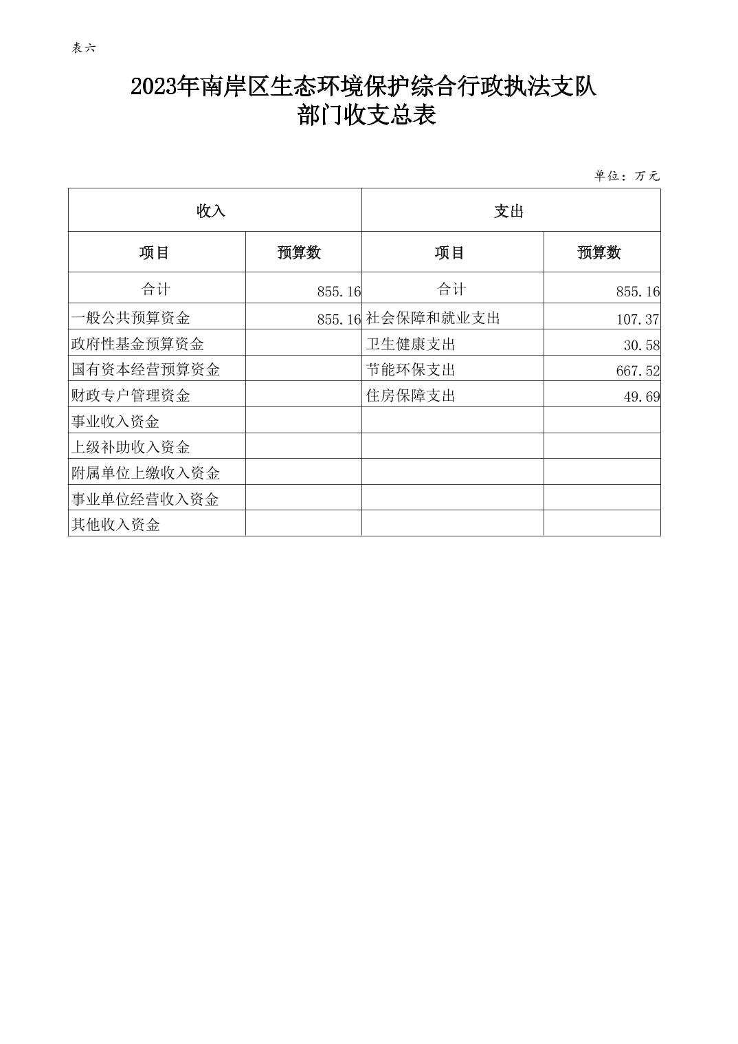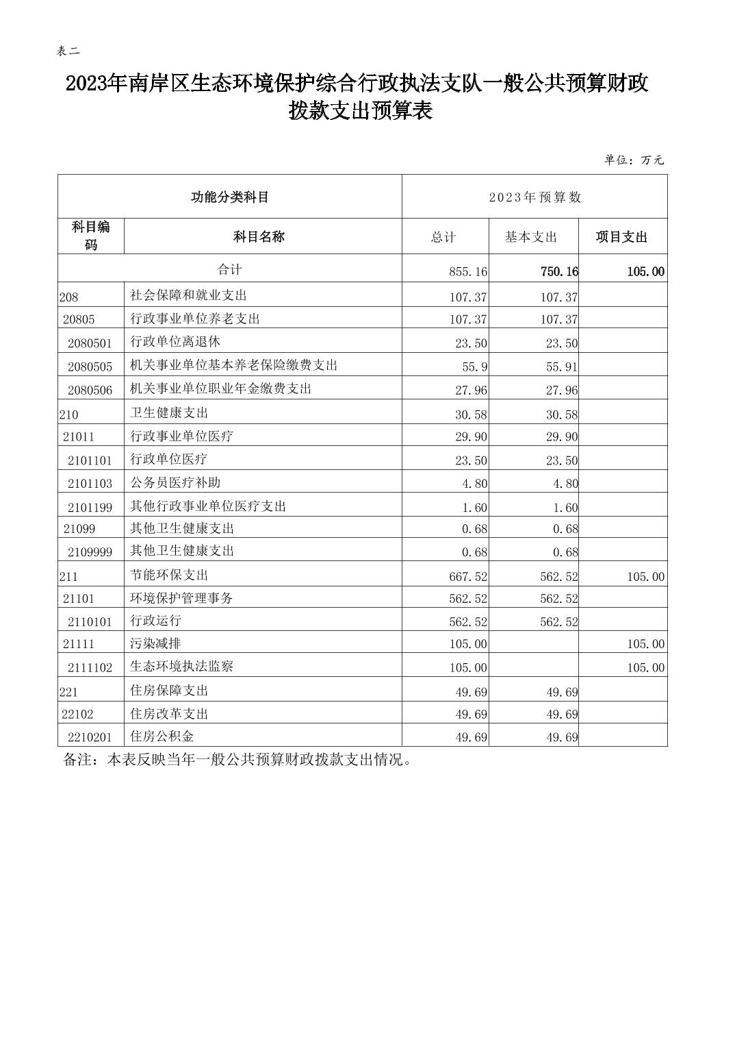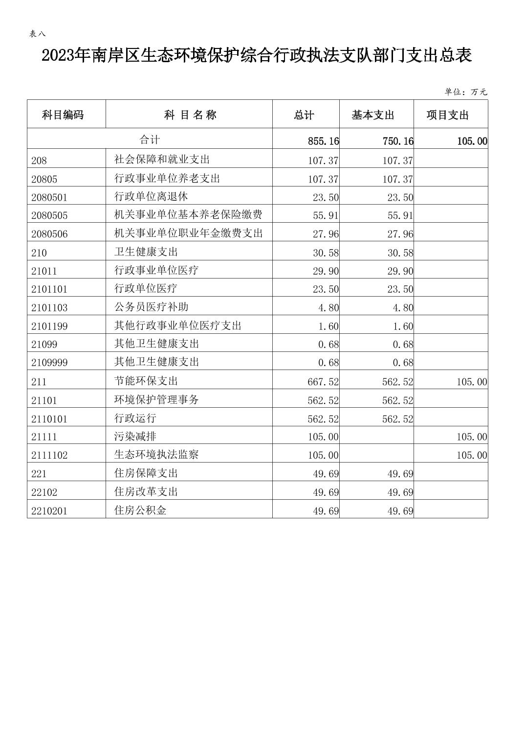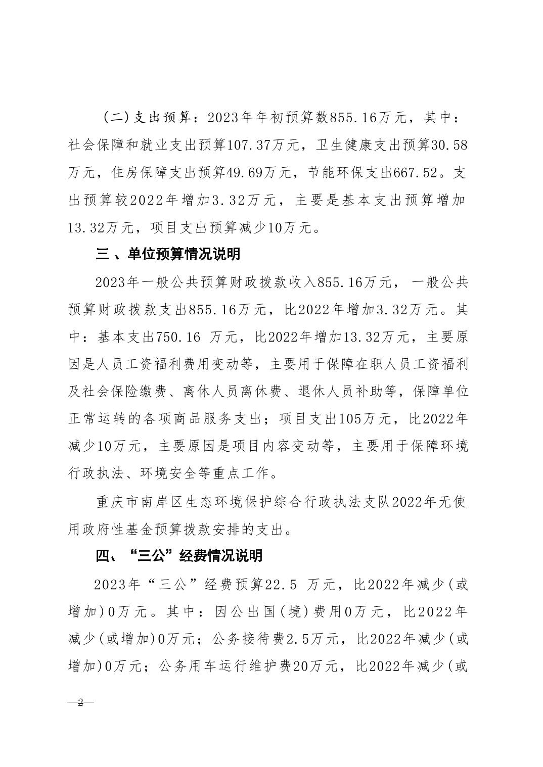 重庆市南岸区生态环境保护综合行政执法支队2023年单位预算情况说明
