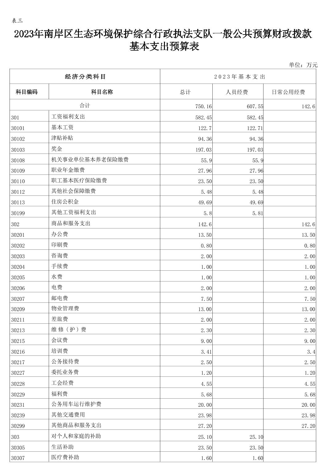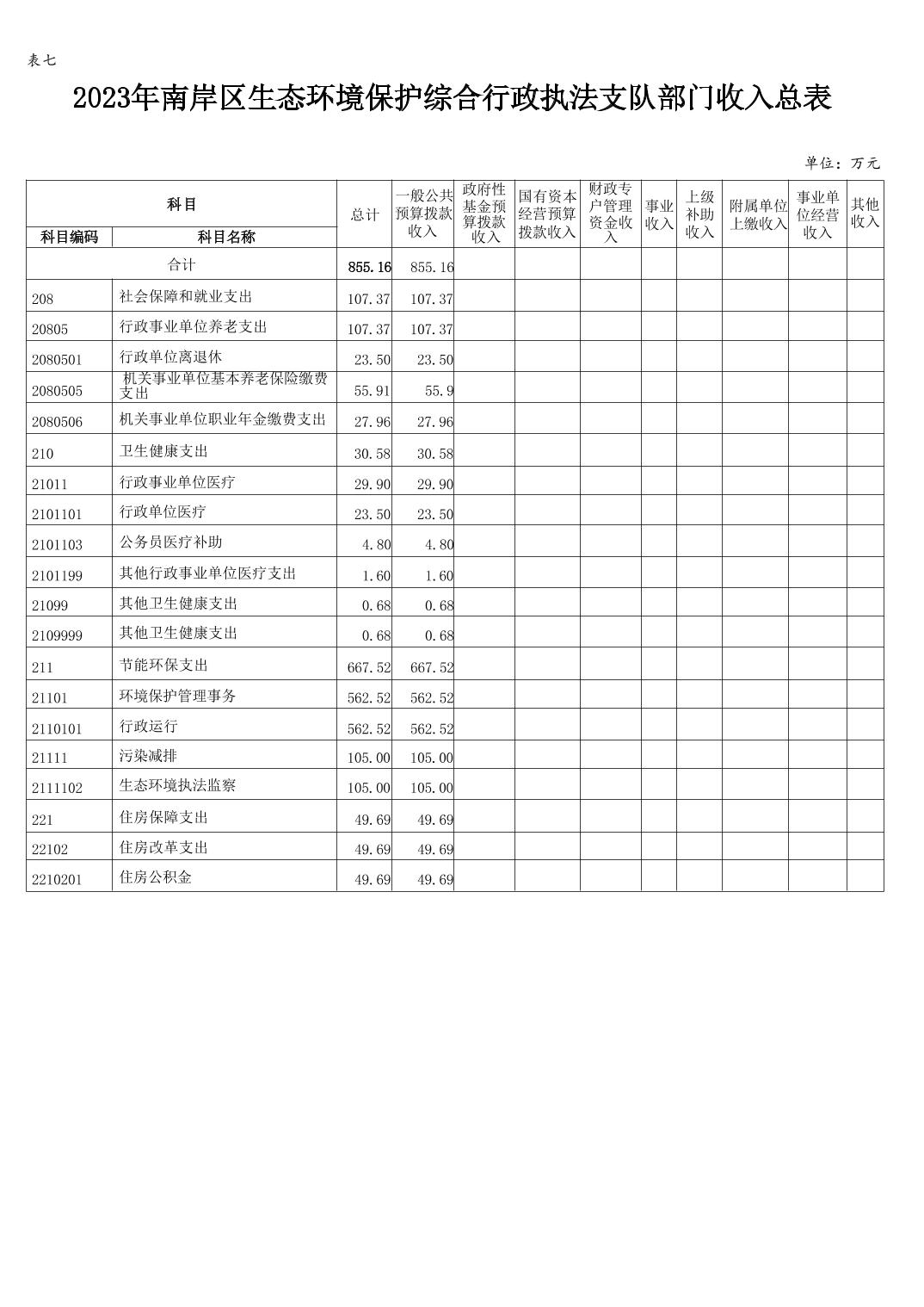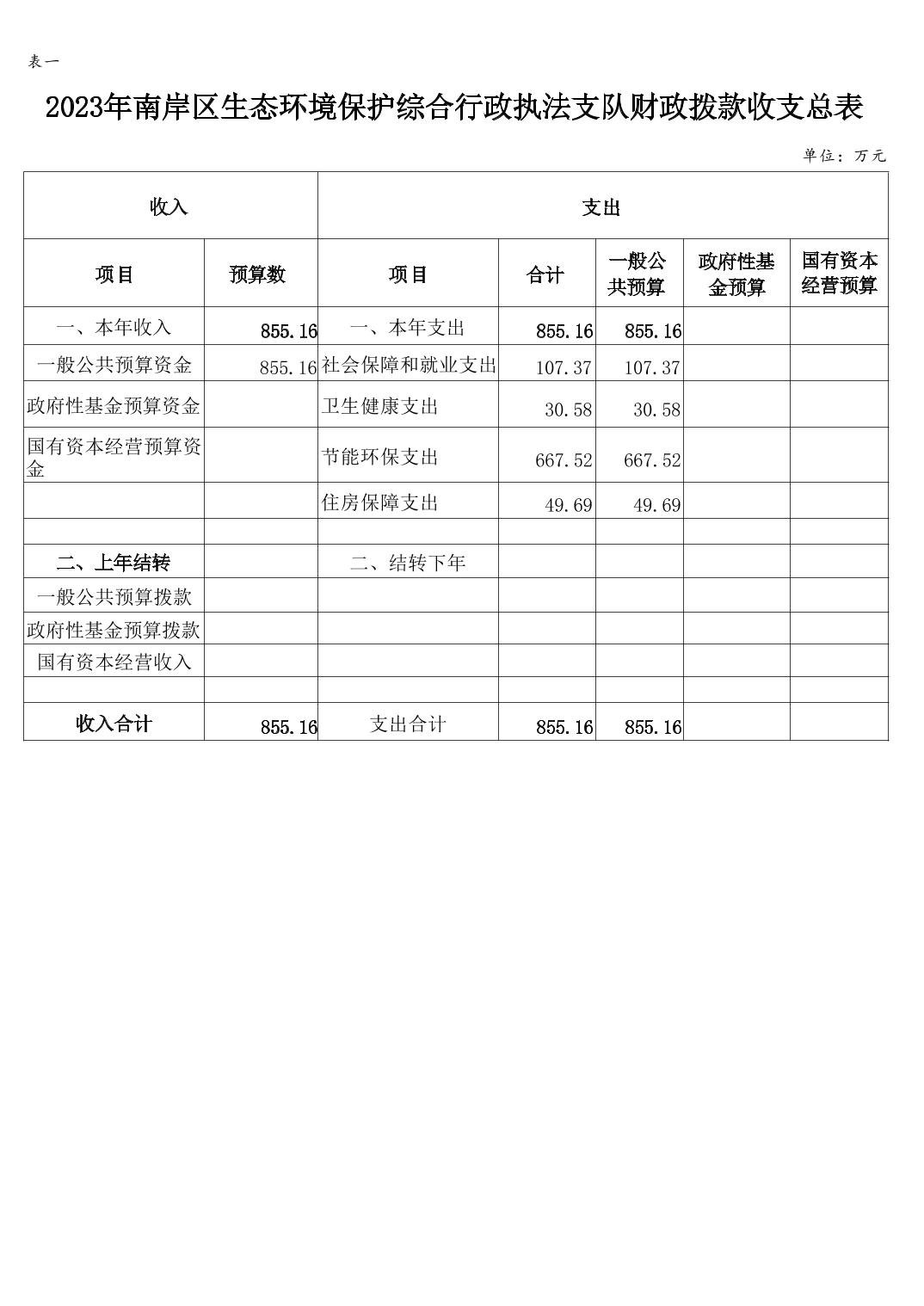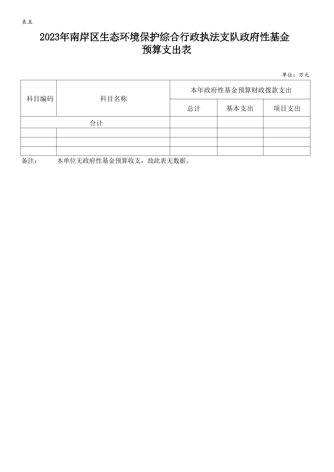 重庆市南岸区生态环境保护综合行政执法支队2023年单位预算情况说明
