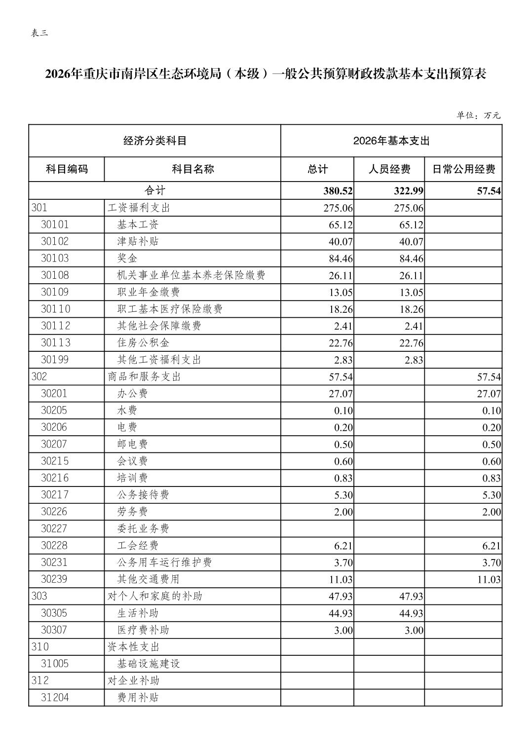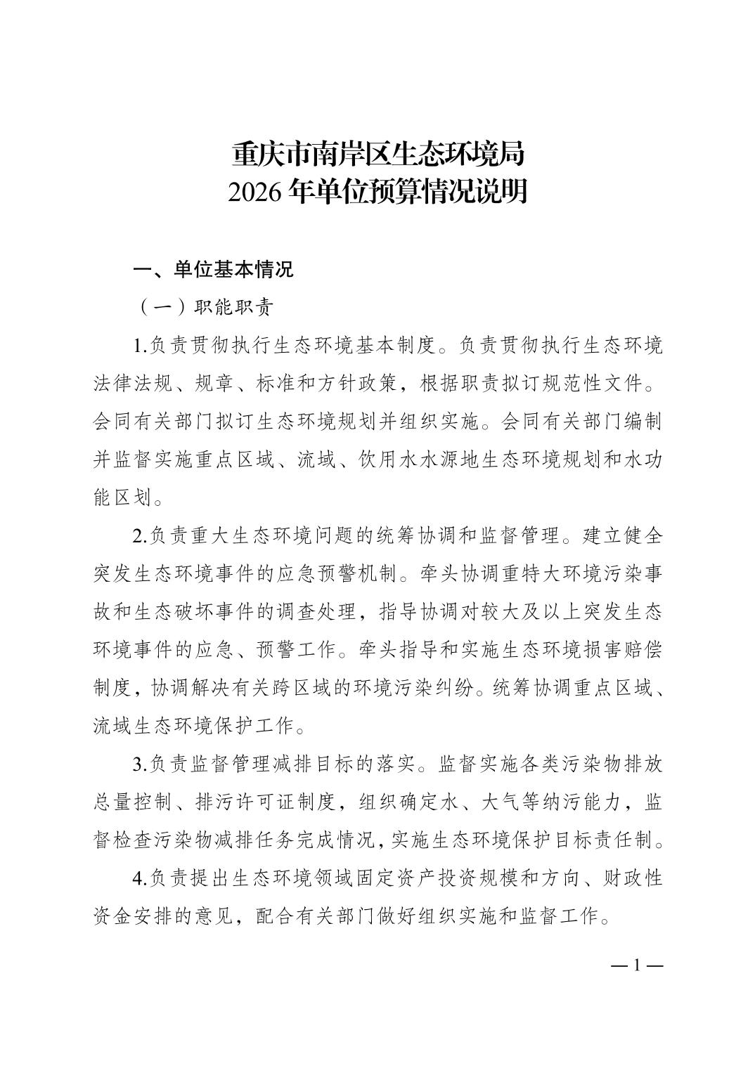 重庆市南岸区生态环境局2026年单位预算情况说明