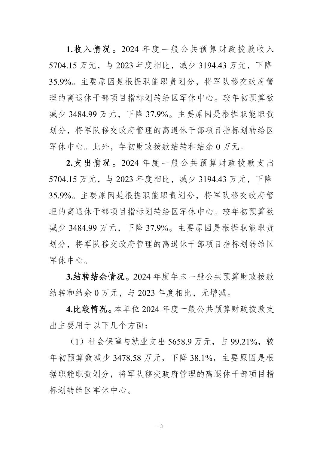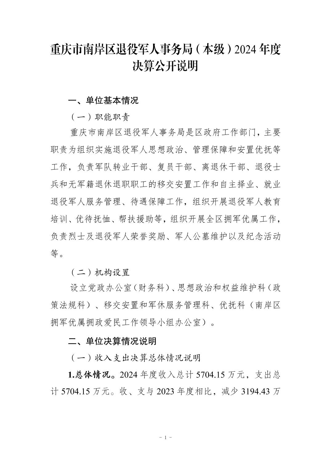 重庆市南岸区退役军人事务局(本级)2024年度决算公开说明