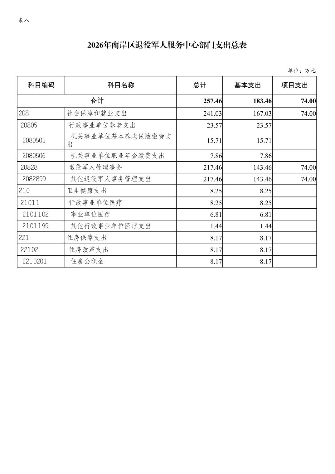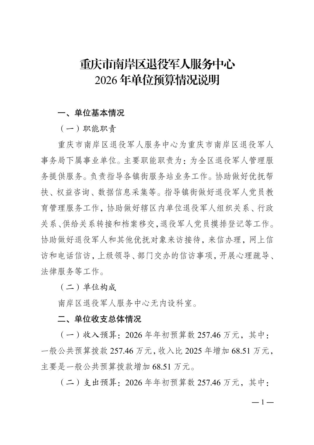 重庆市南岸区退役军人服务中心2026年单位预算情况说明