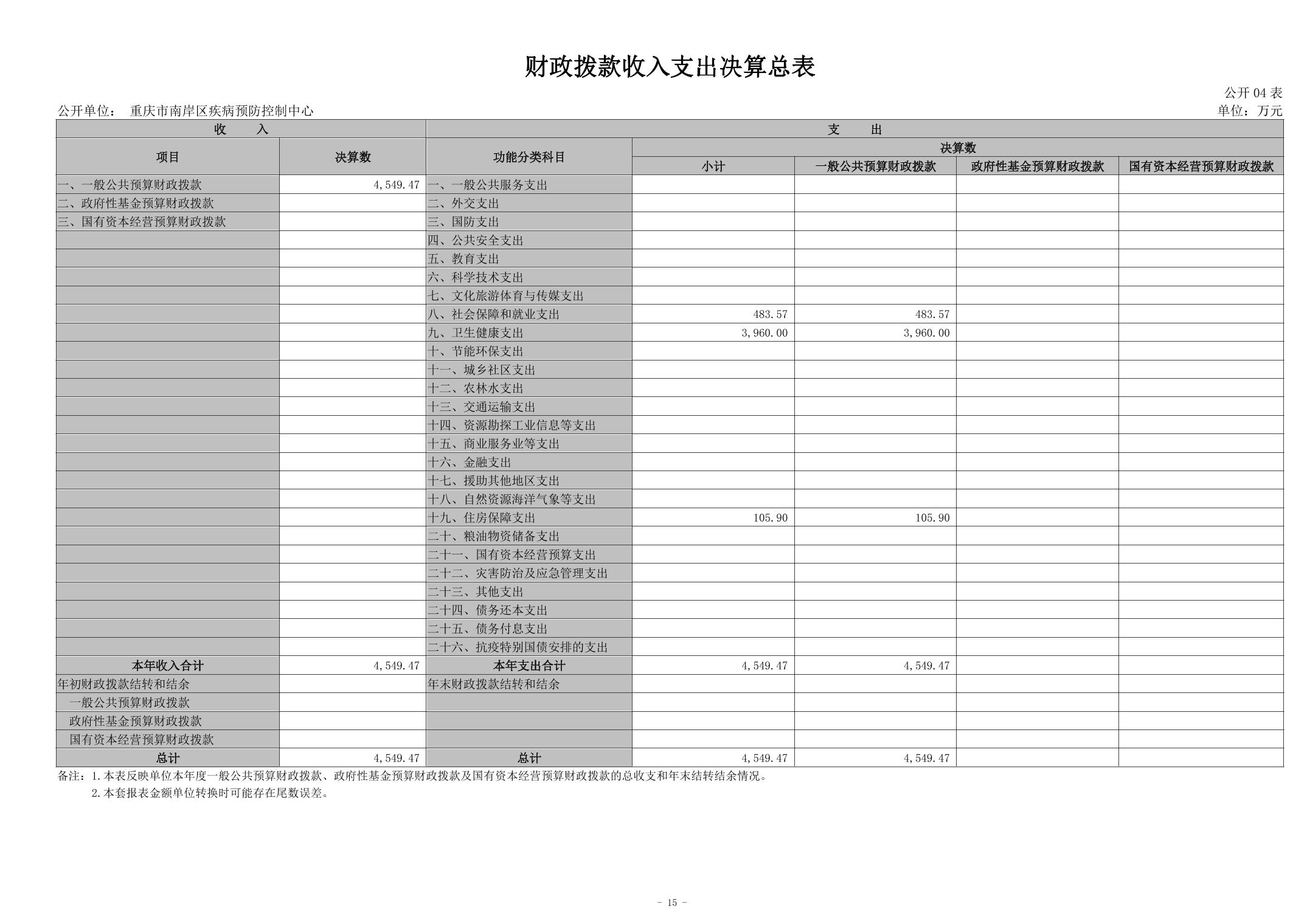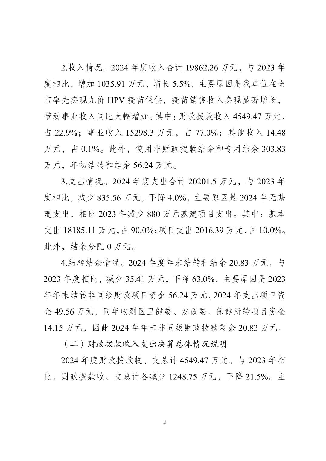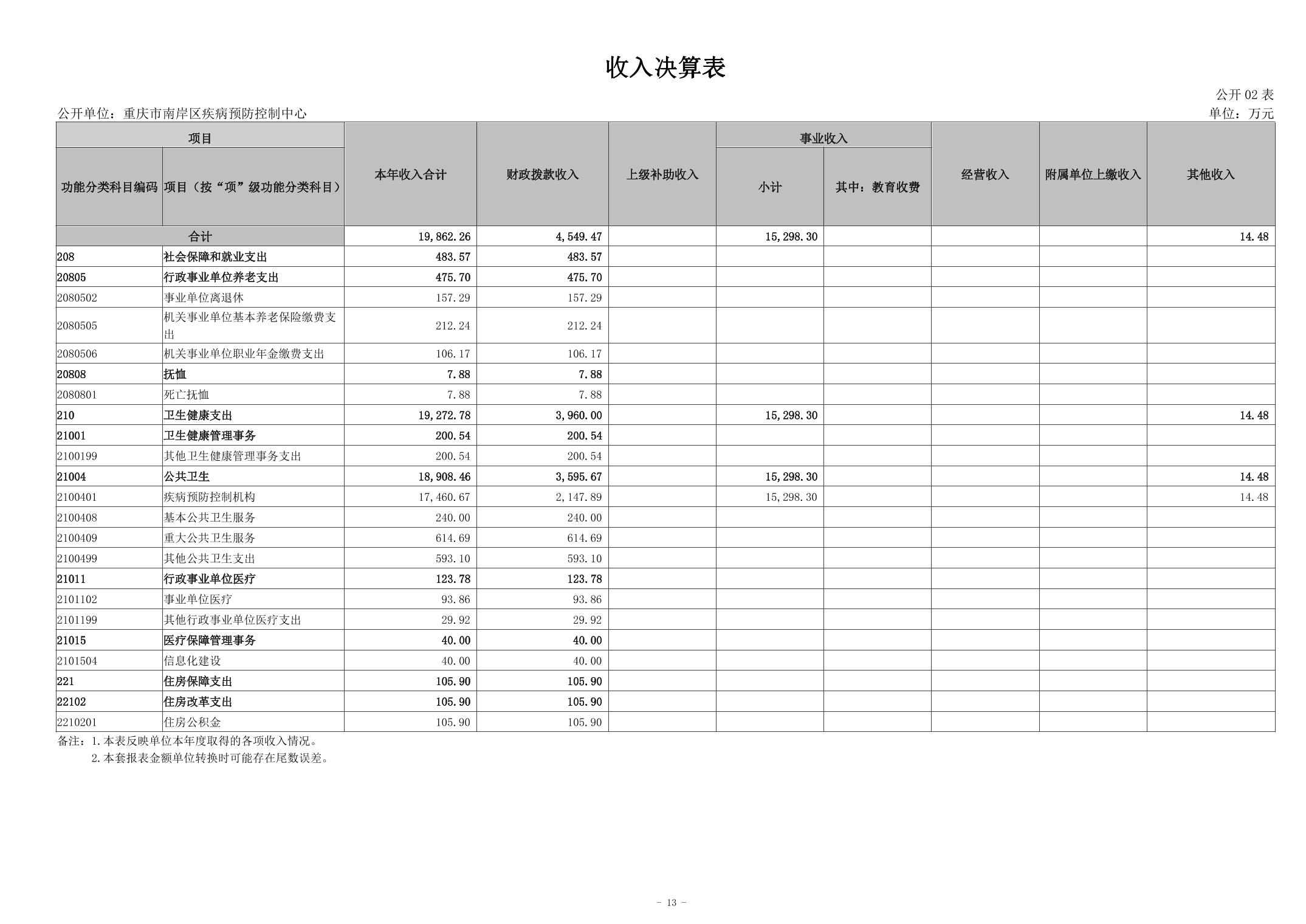 2024年度重庆市南岸区疾病预防控制中心决算公开