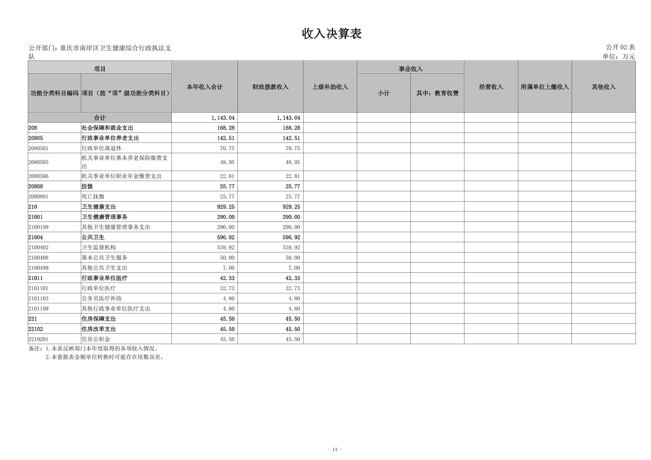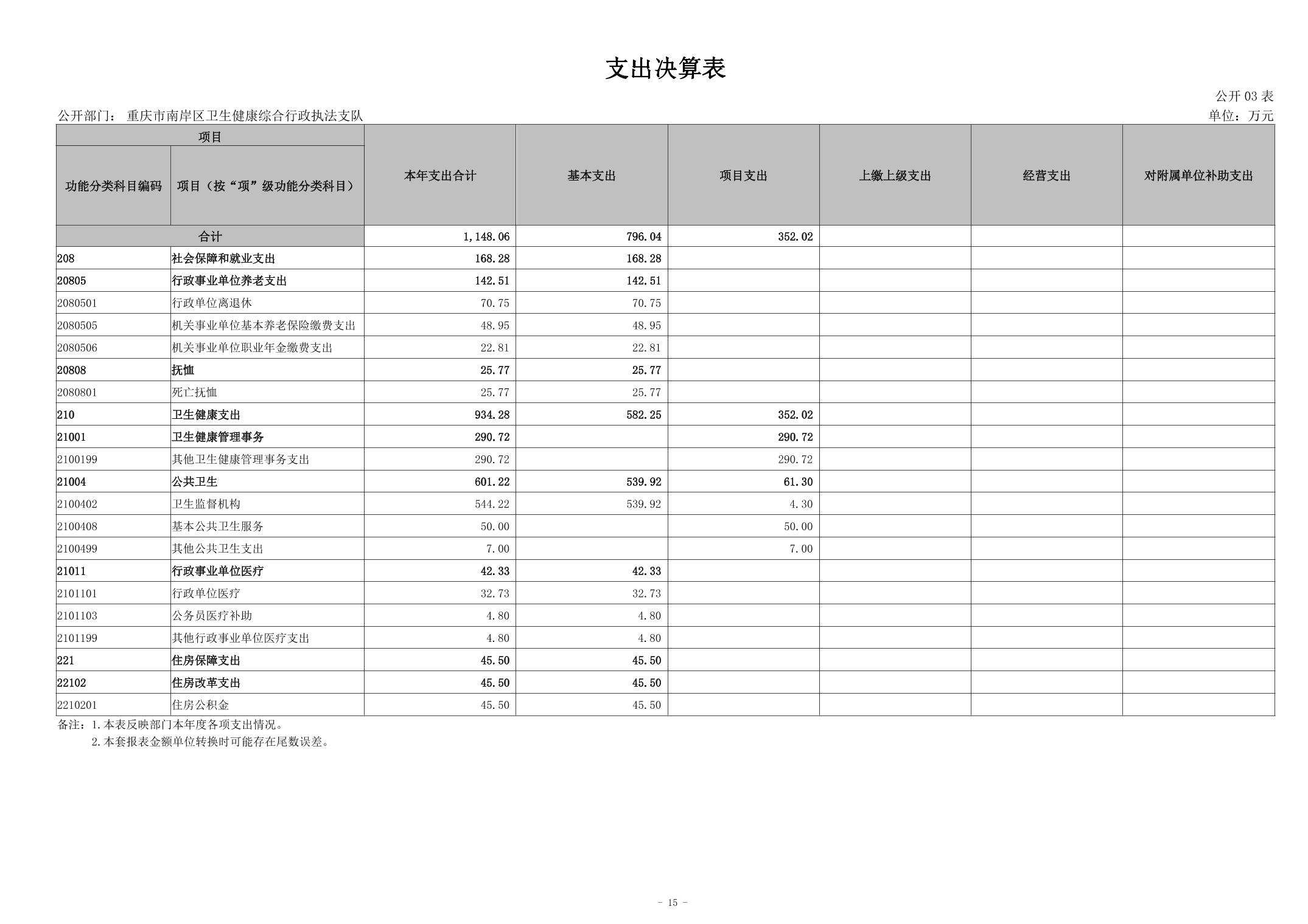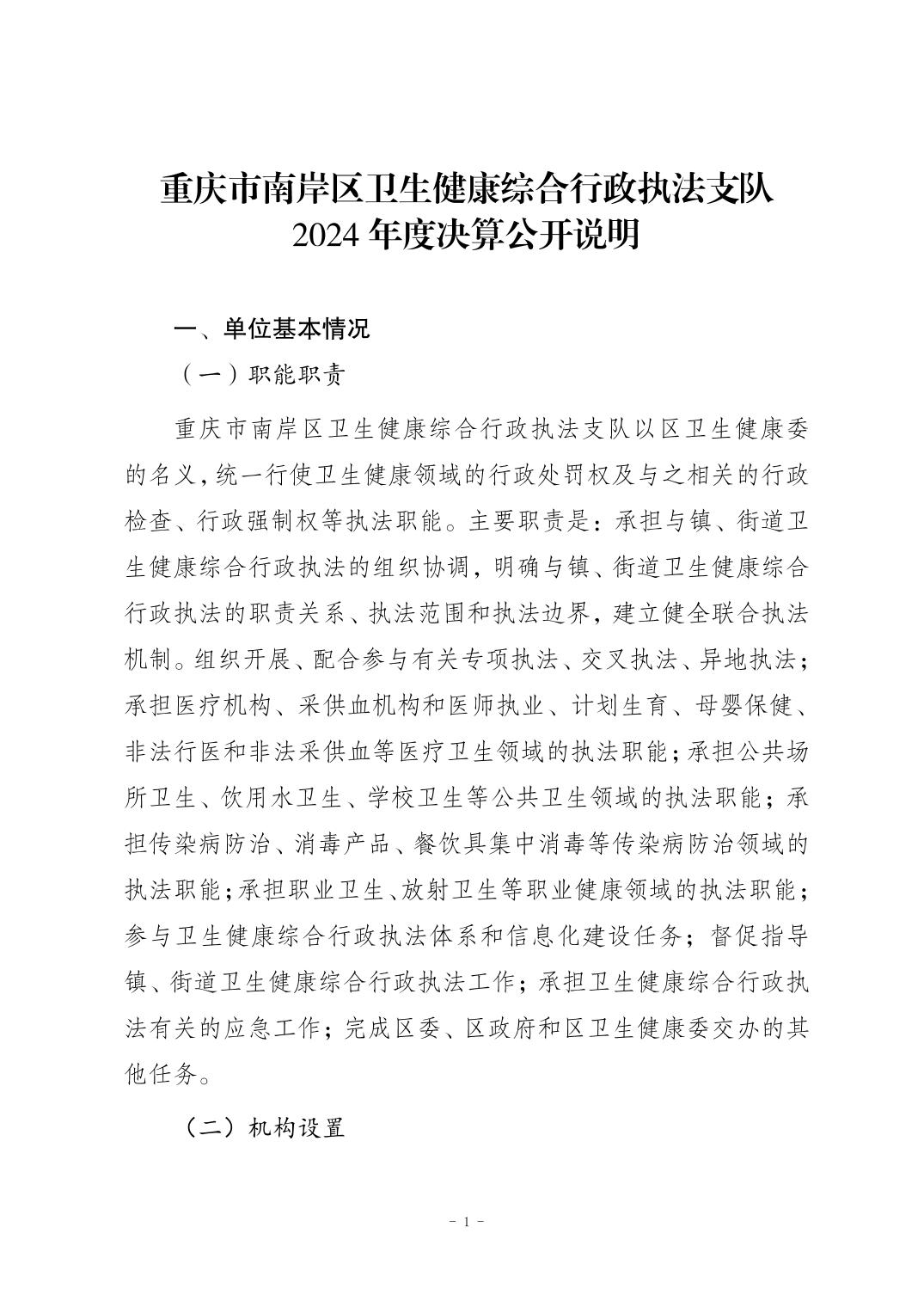 2024年度重庆市南岸区卫生健康综合行政执法支队决算公开