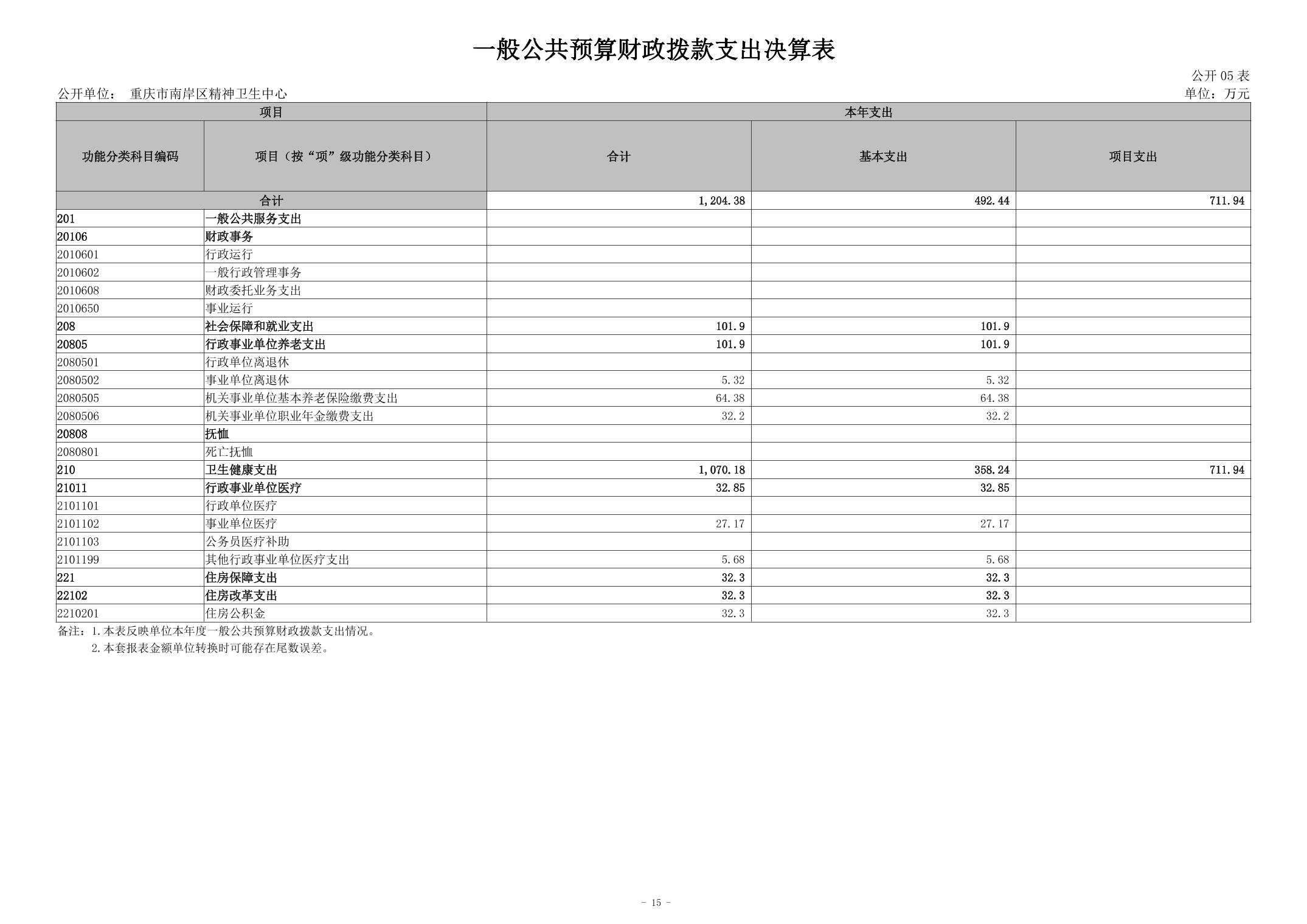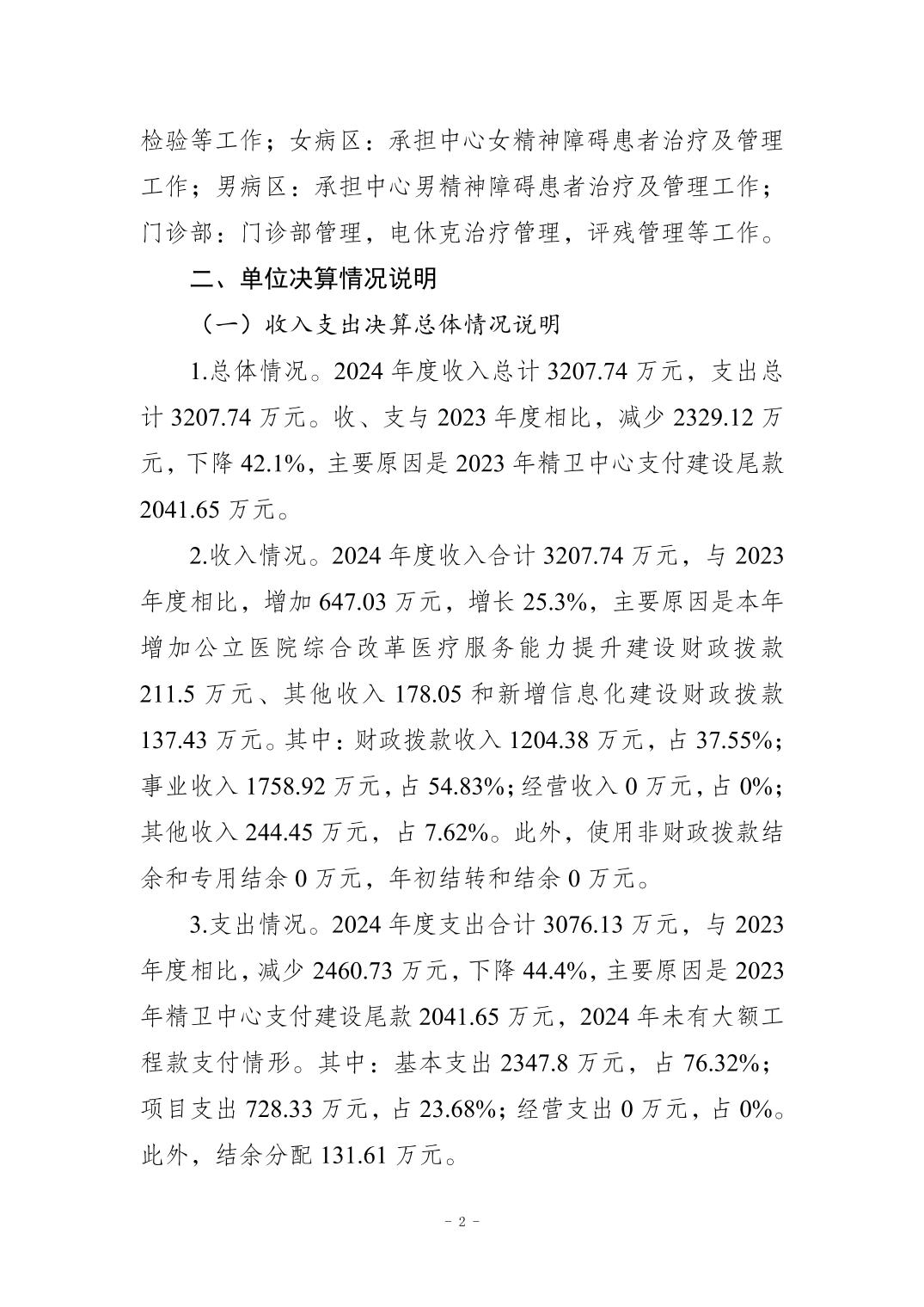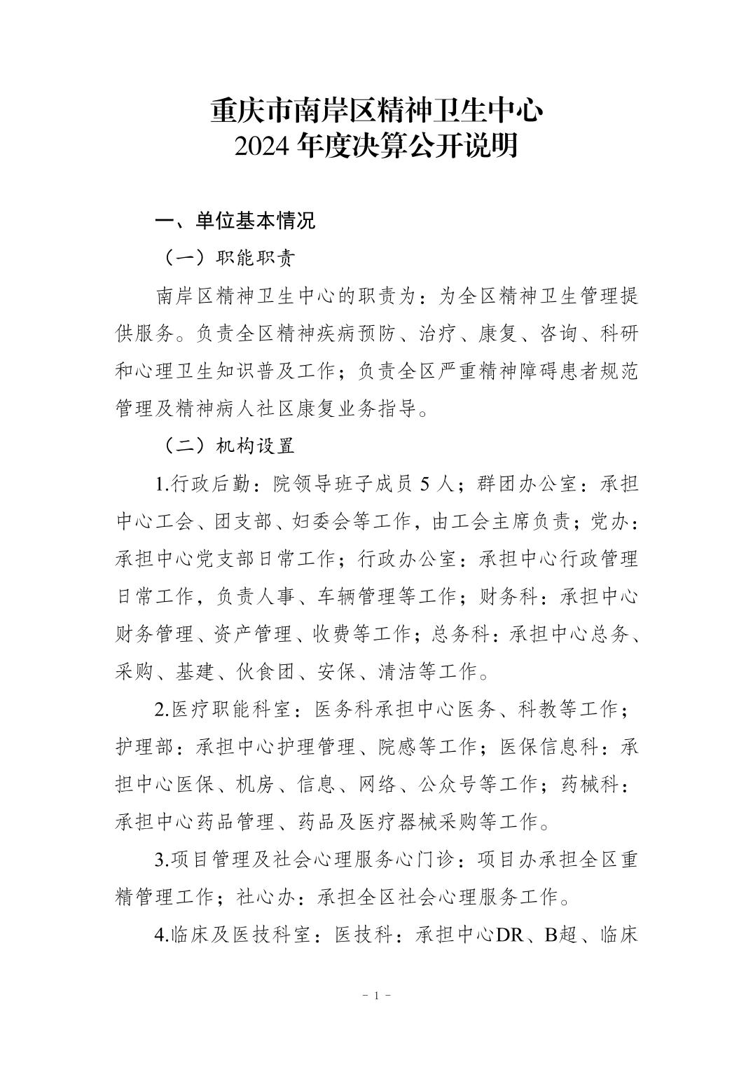 2024年度重庆市南岸区精神卫生中心决算公开
