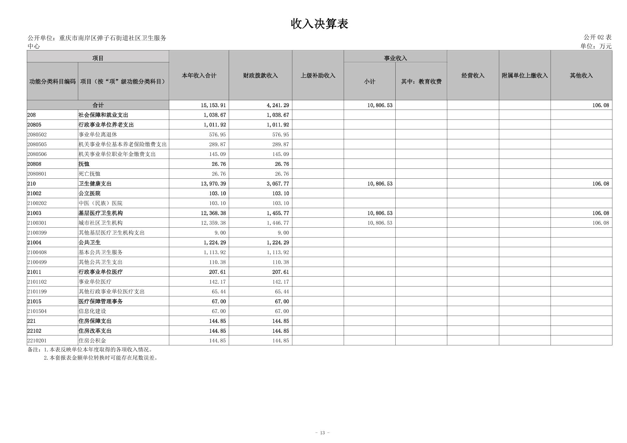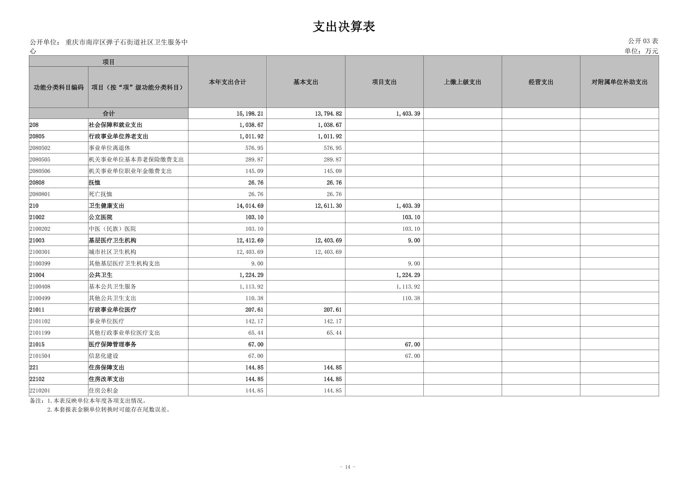2024年度重庆市南岸区弹子石街道社区卫生服务中心决算公开