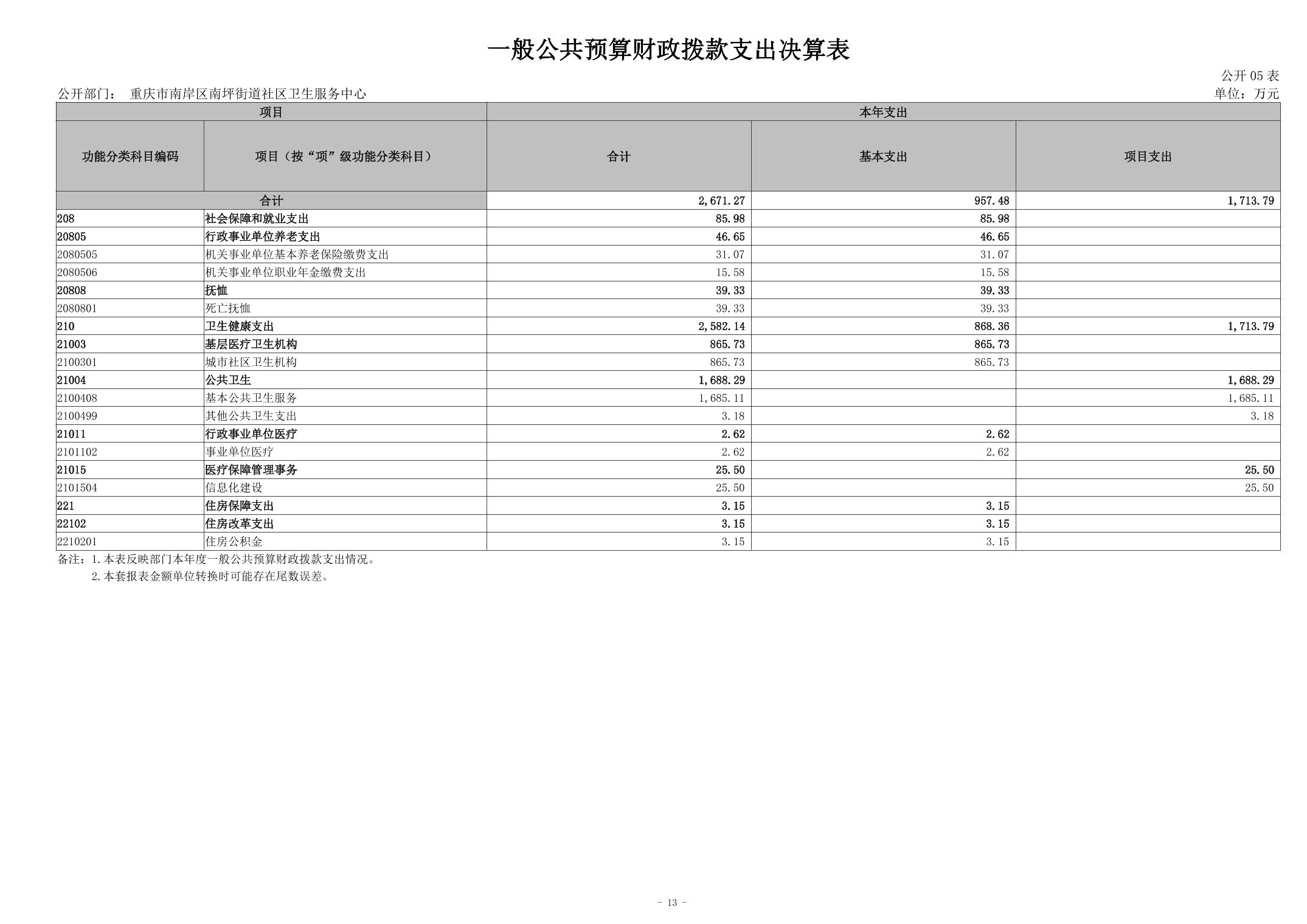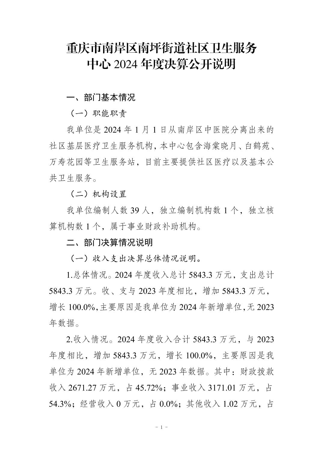 2024年度重庆市南岸区南坪街道社区卫生服务中心决算公开