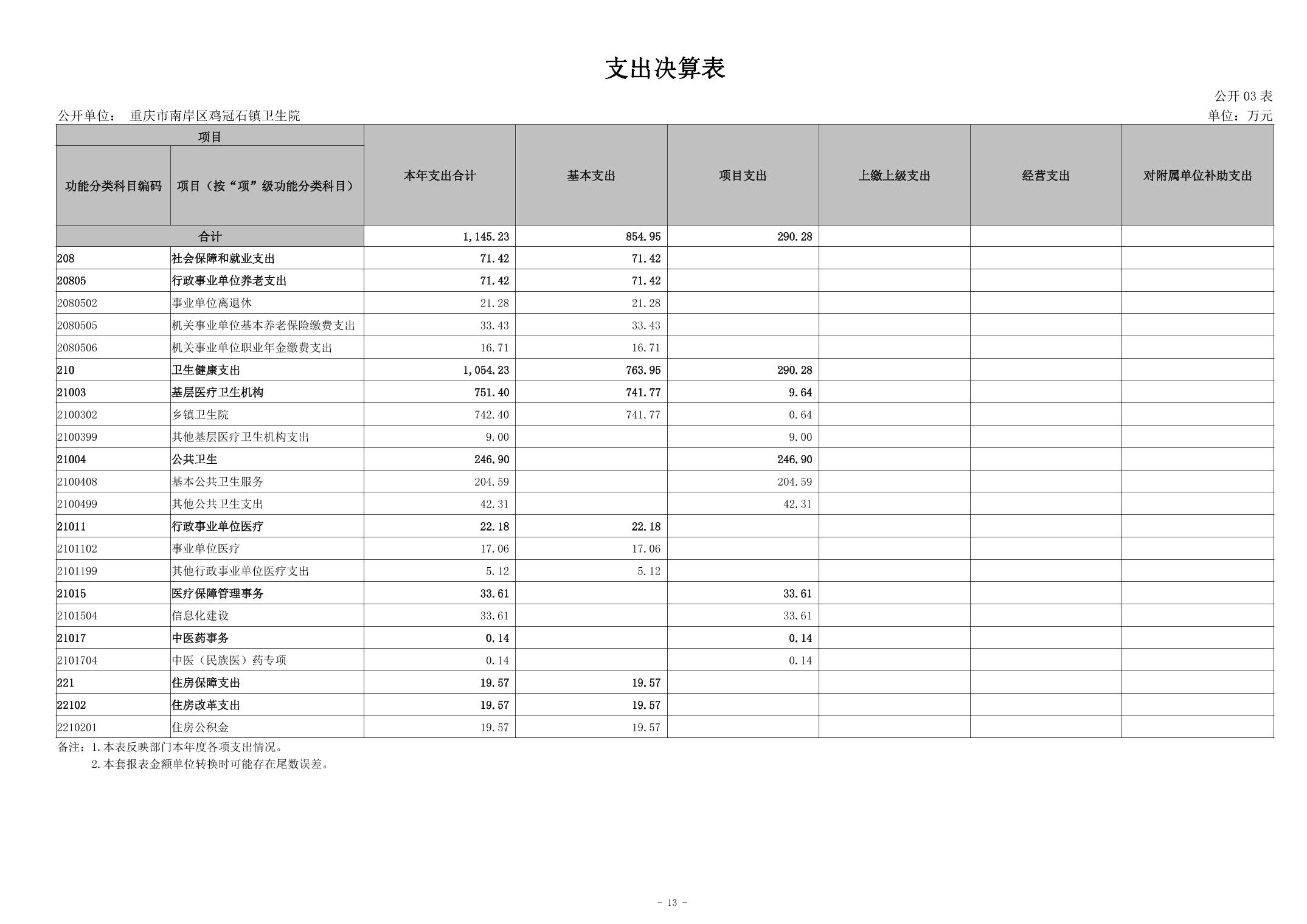 2024年度重庆市南岸区鸡冠石镇卫生院决算公开