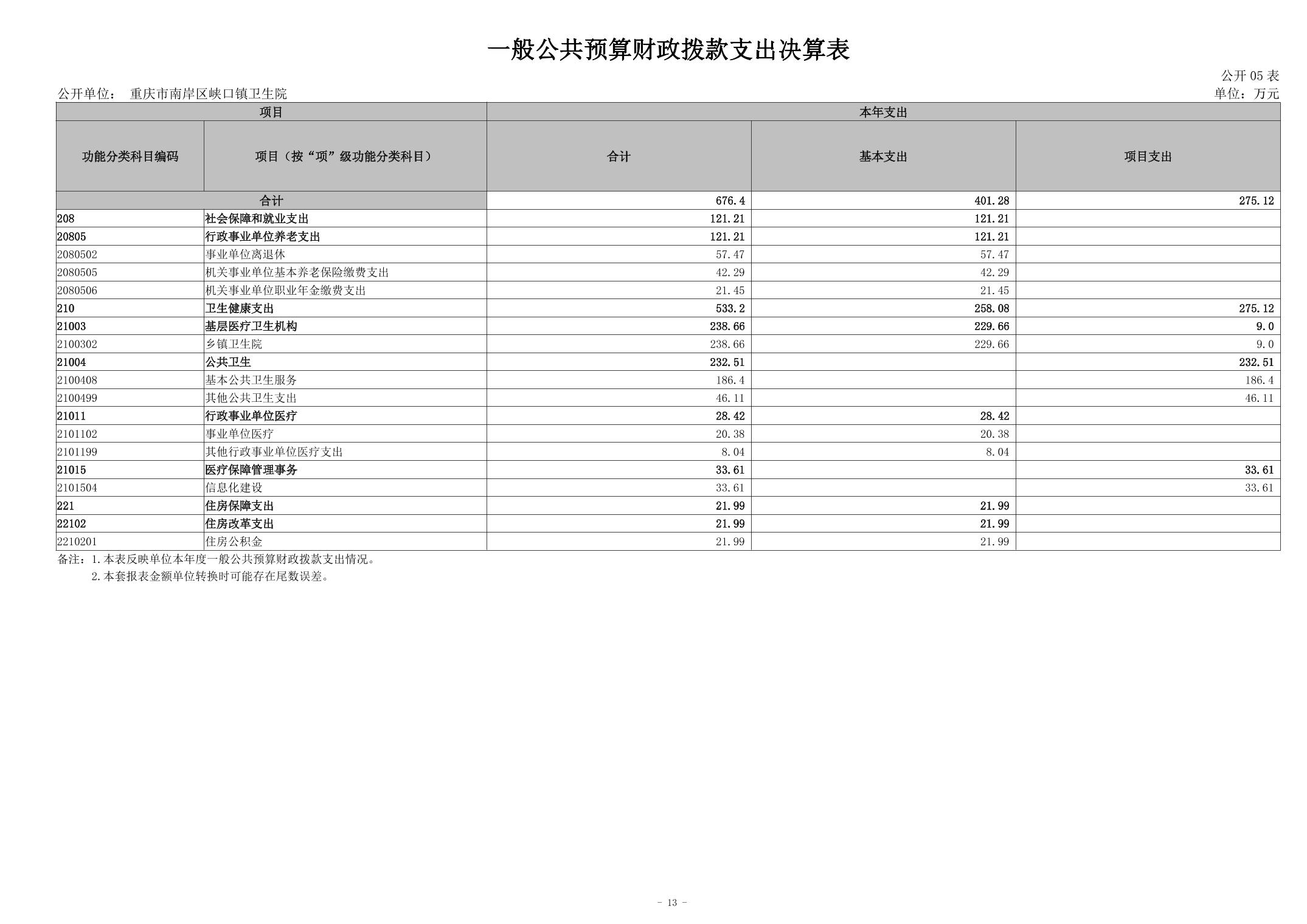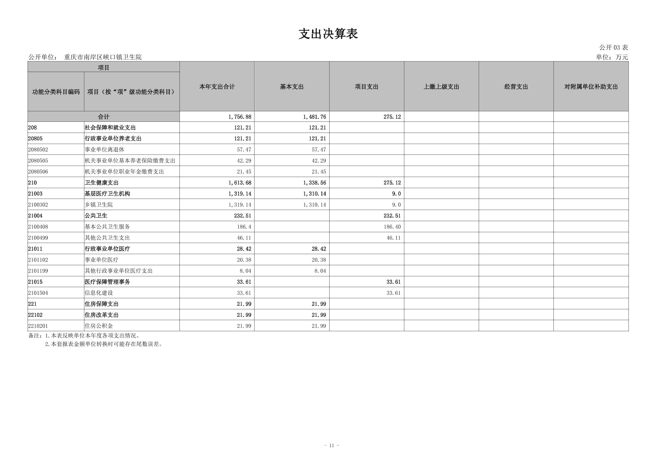 2024年度重庆市南岸区峡口镇卫生院决算公开