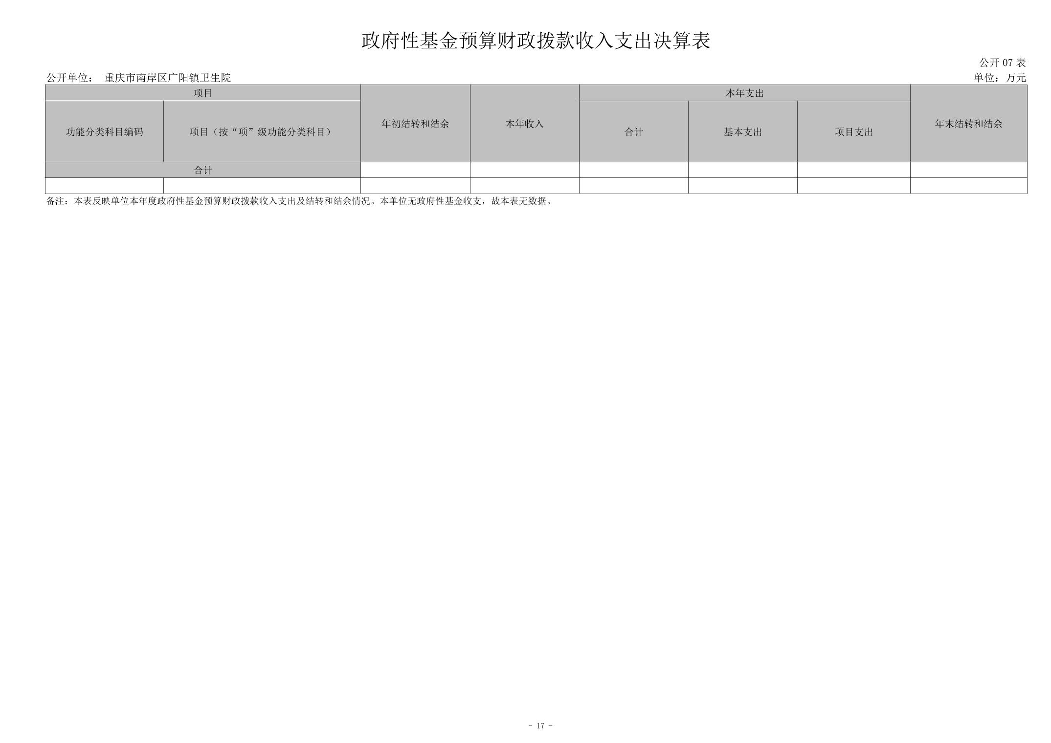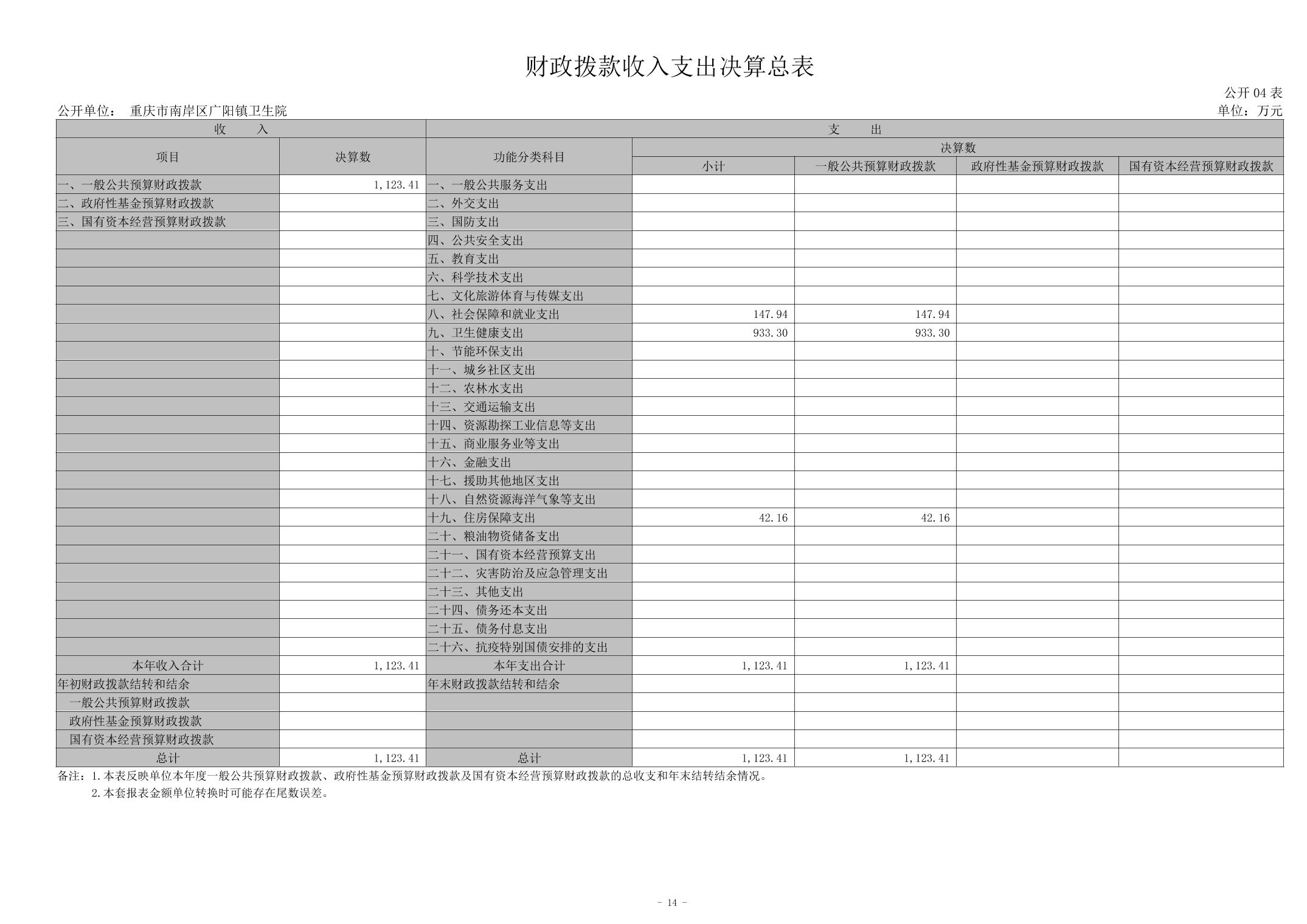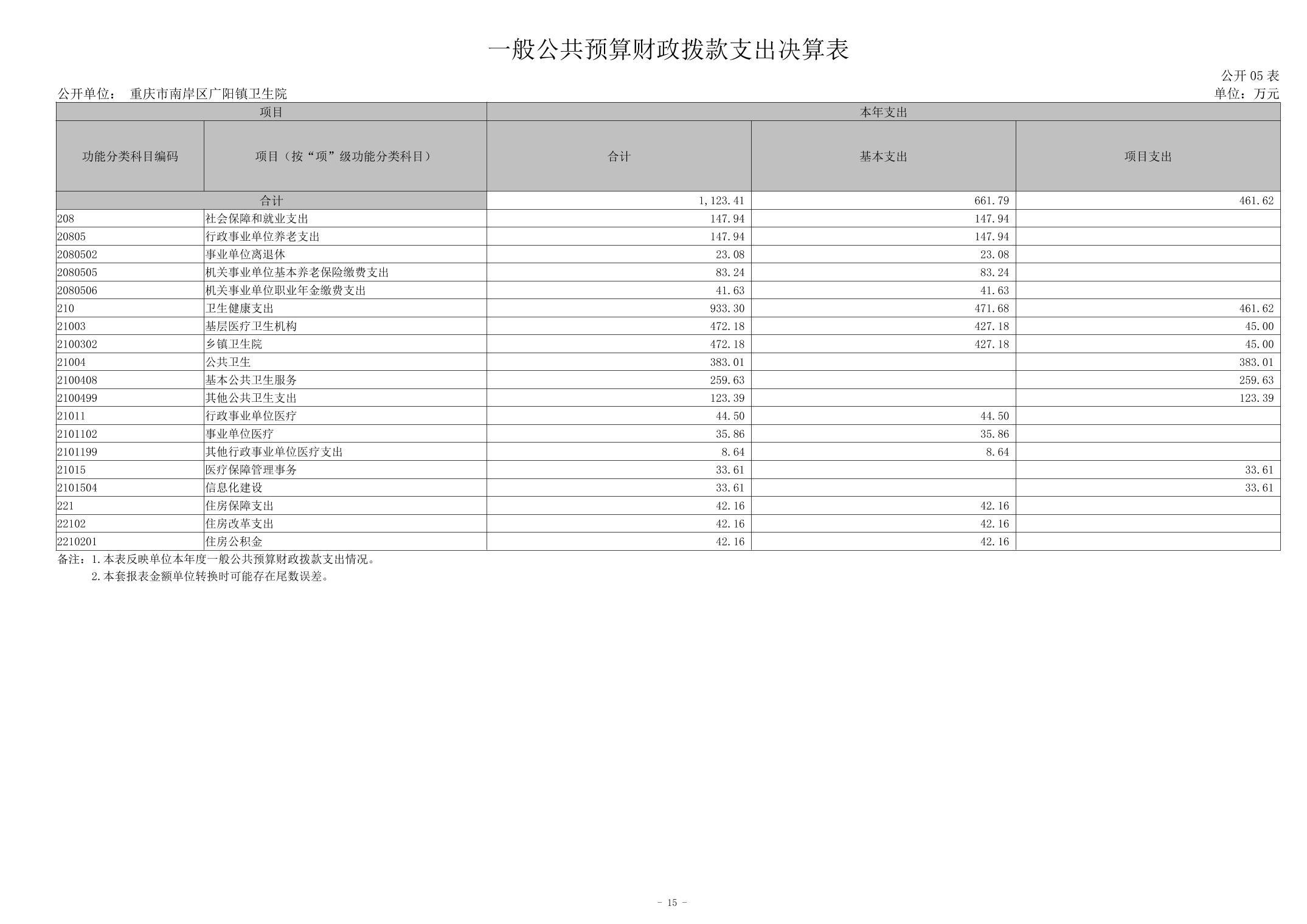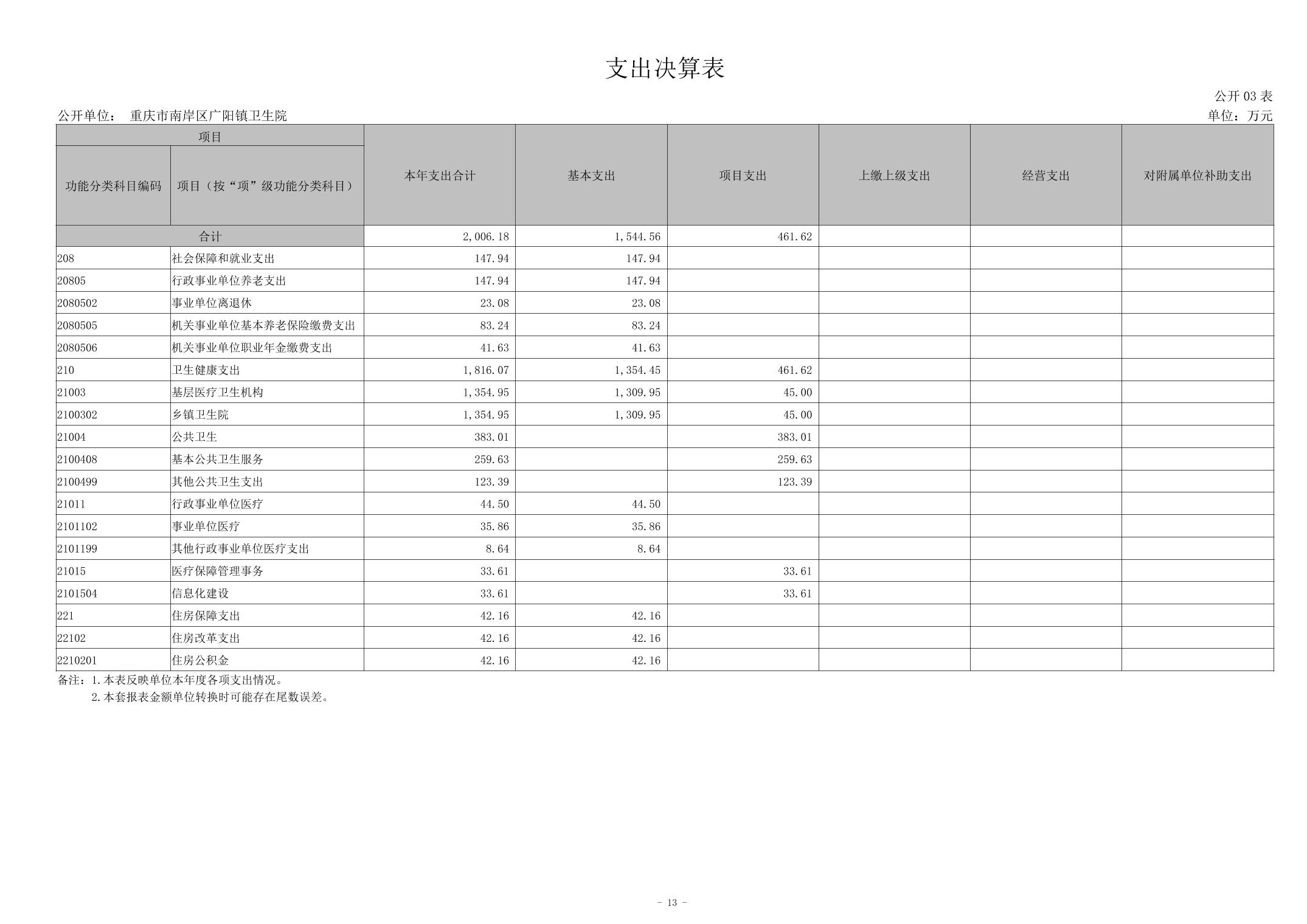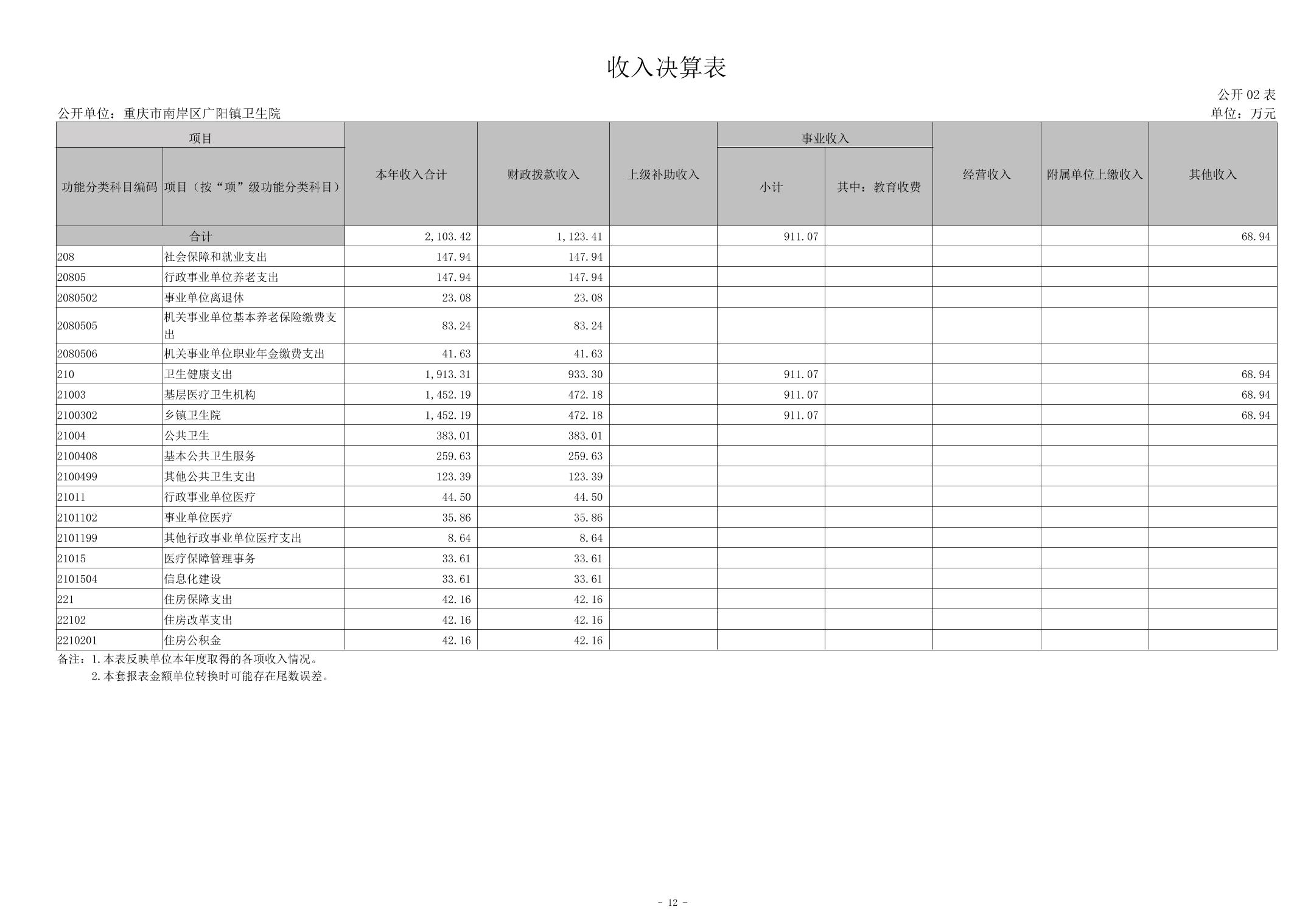 2024年度重庆市南岸区广阳镇卫生院决算公开