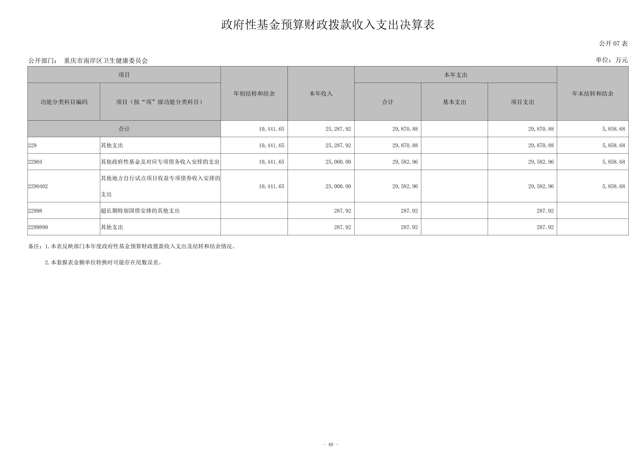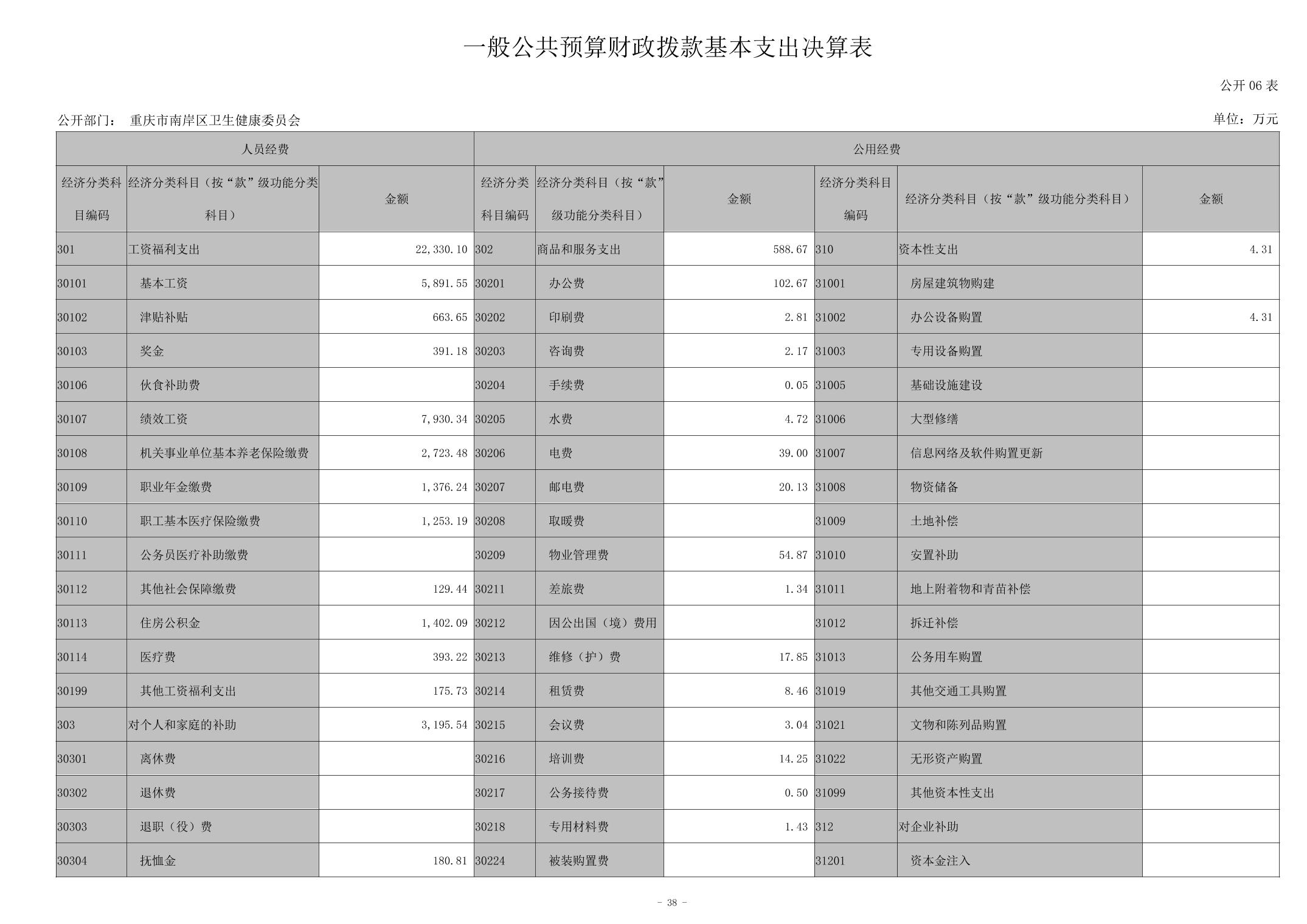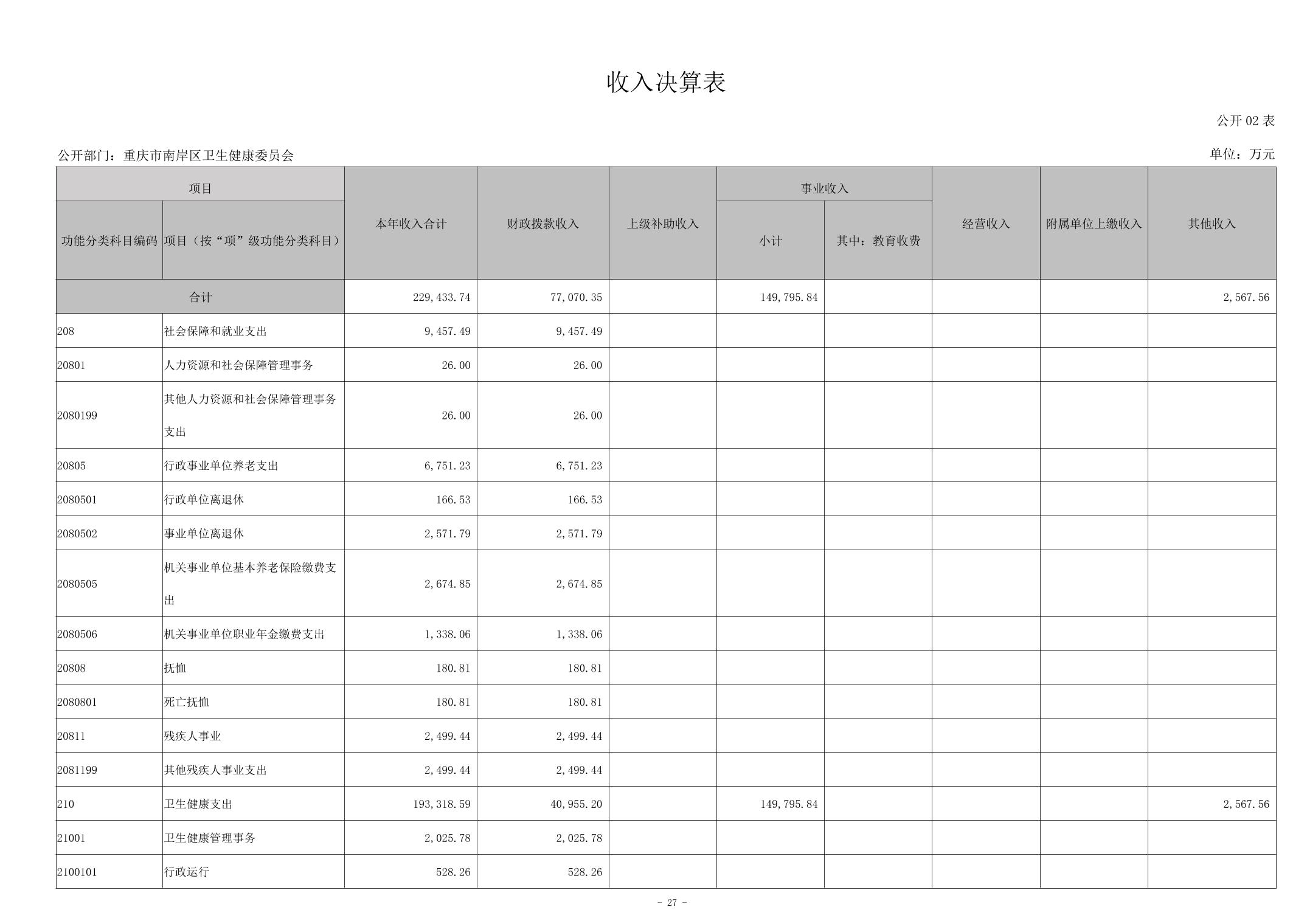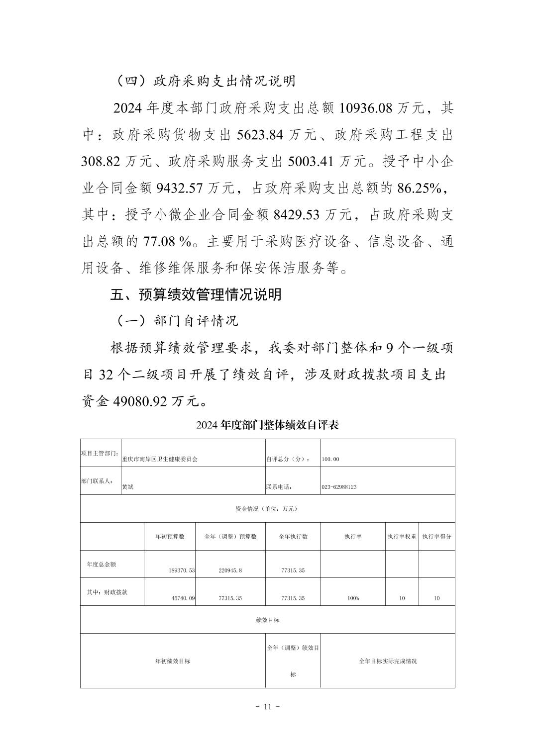 2024年度重庆市南岸区卫生健康委员会决算公开(部门)