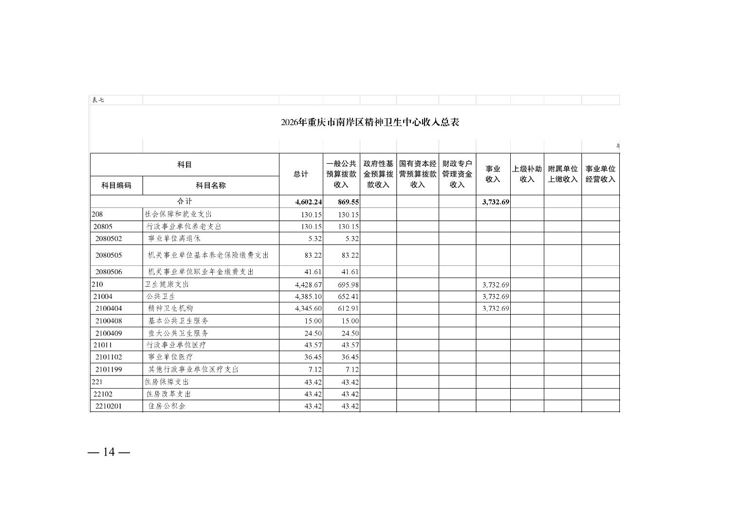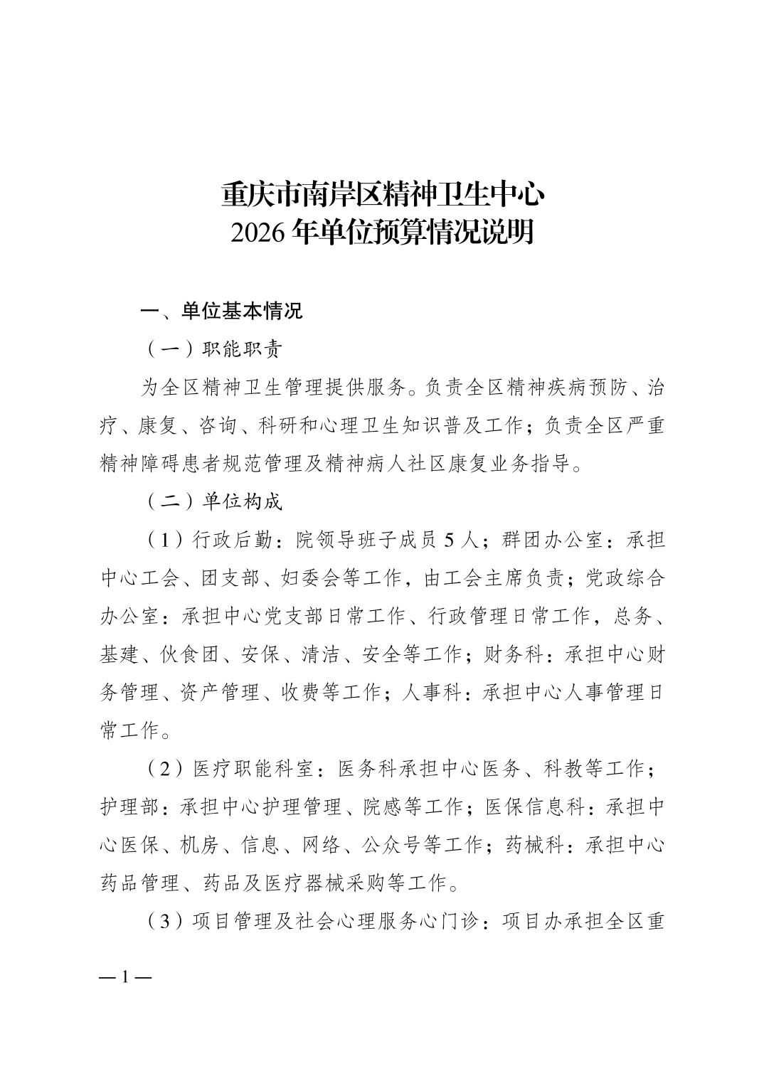 重庆市南岸区精神卫生中心2026年单位预算情况说明