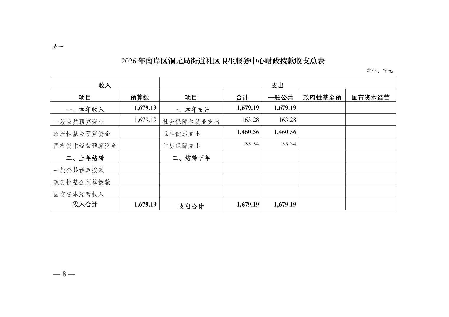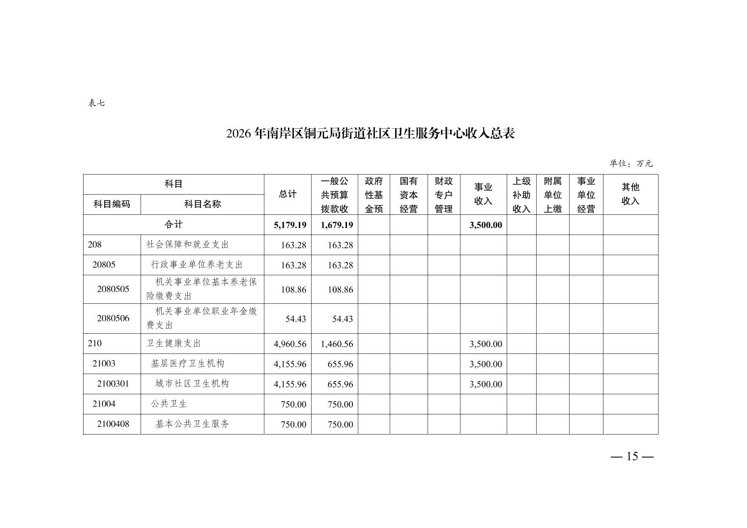 重庆市南岸区铜元局街道社区卫生服务中心2026年单位预算情况说明