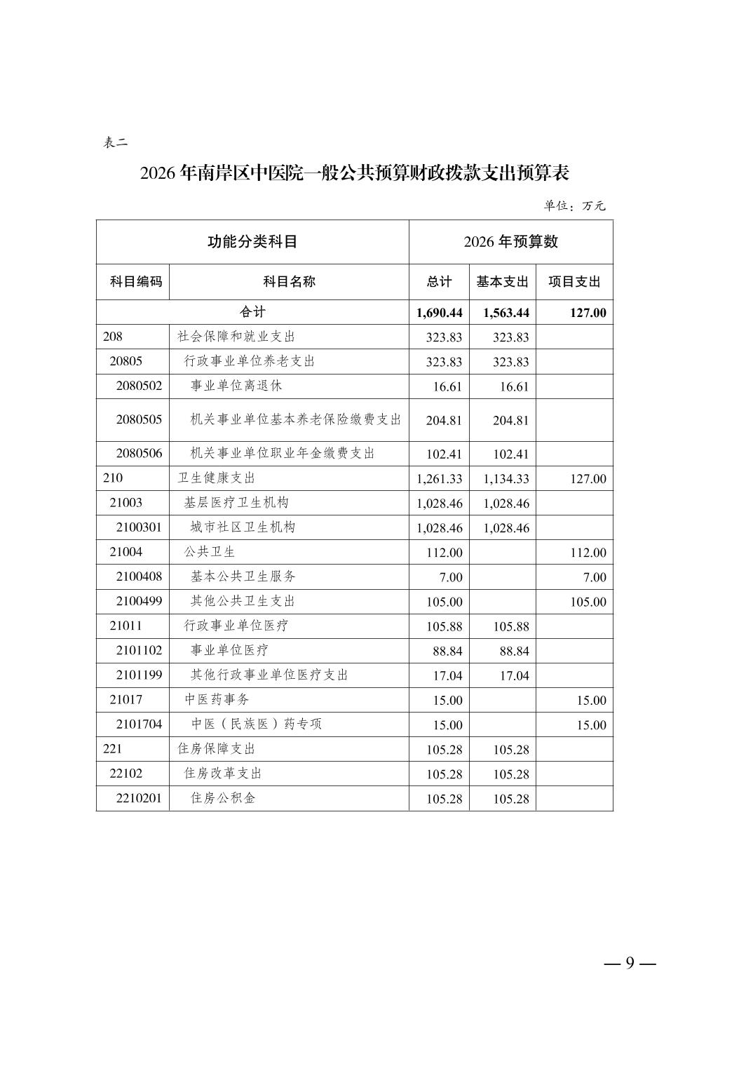 重庆市南岸区中医院2026年单位预算情况说明