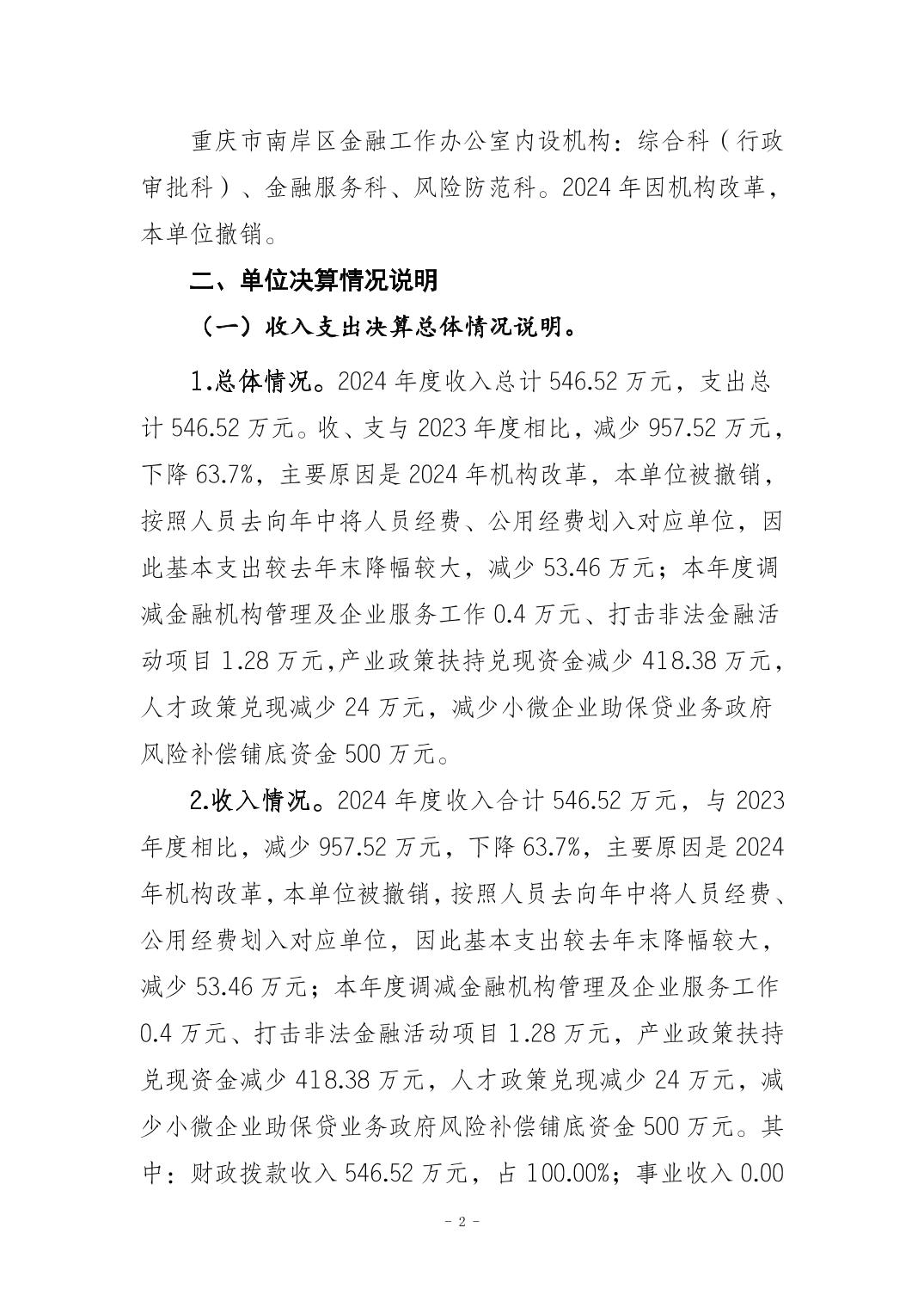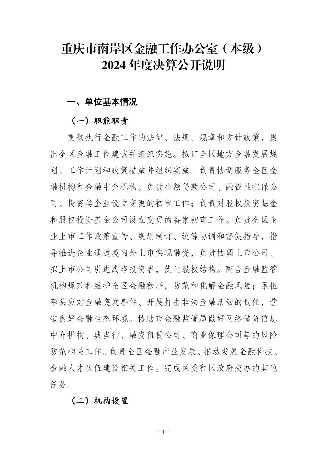 重庆市南岸区金融工作办公室(本级)2024年度决算公开说明