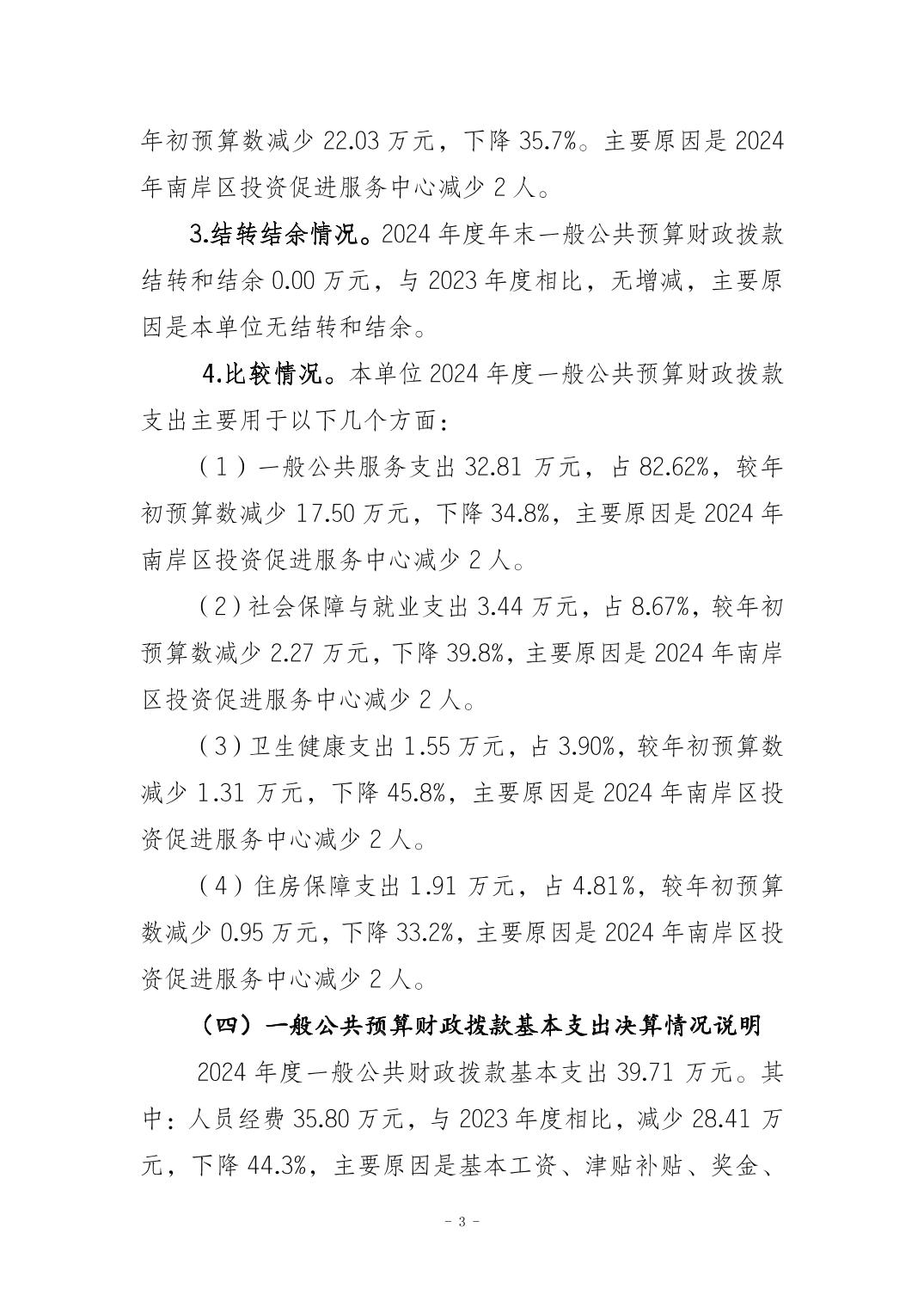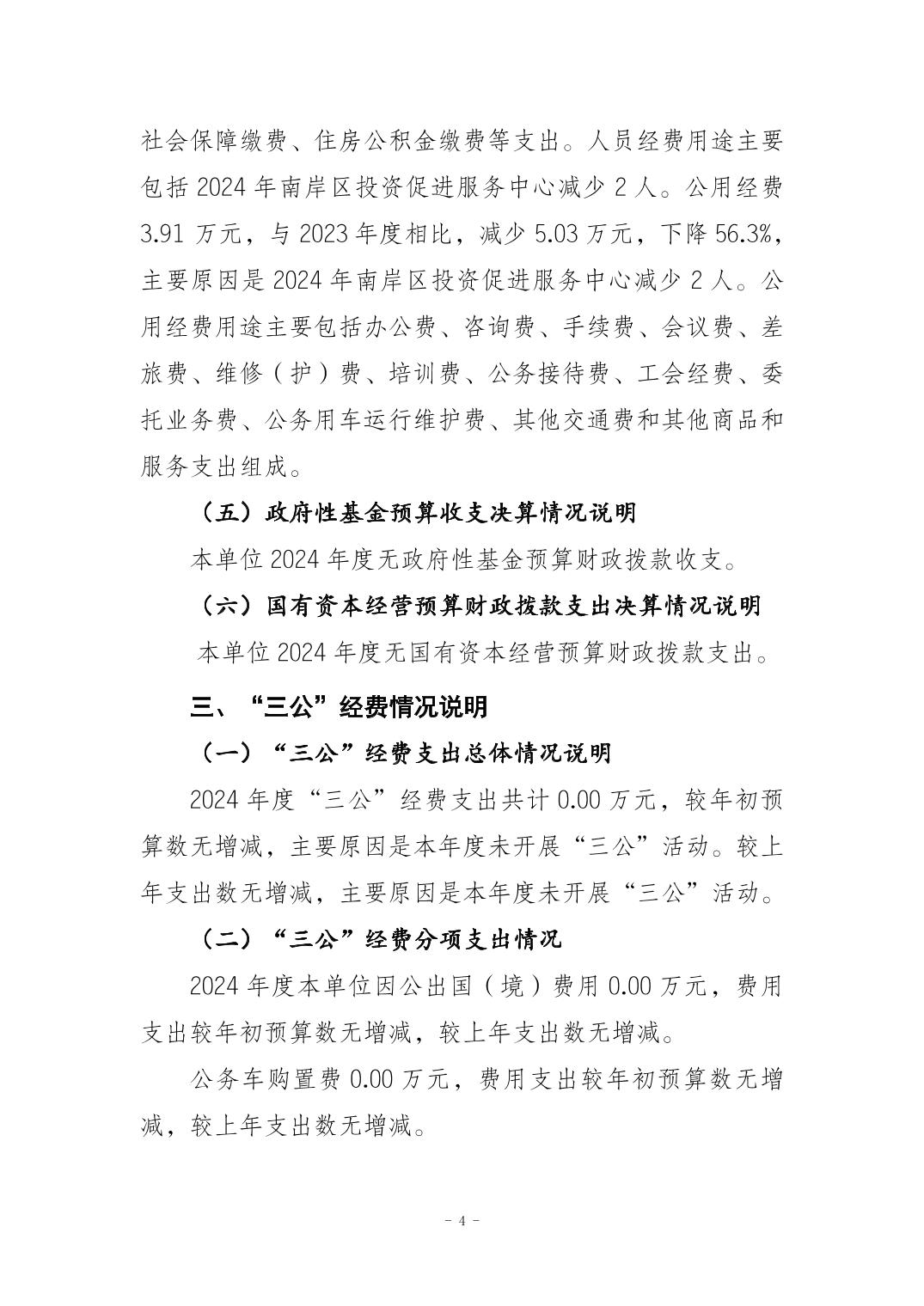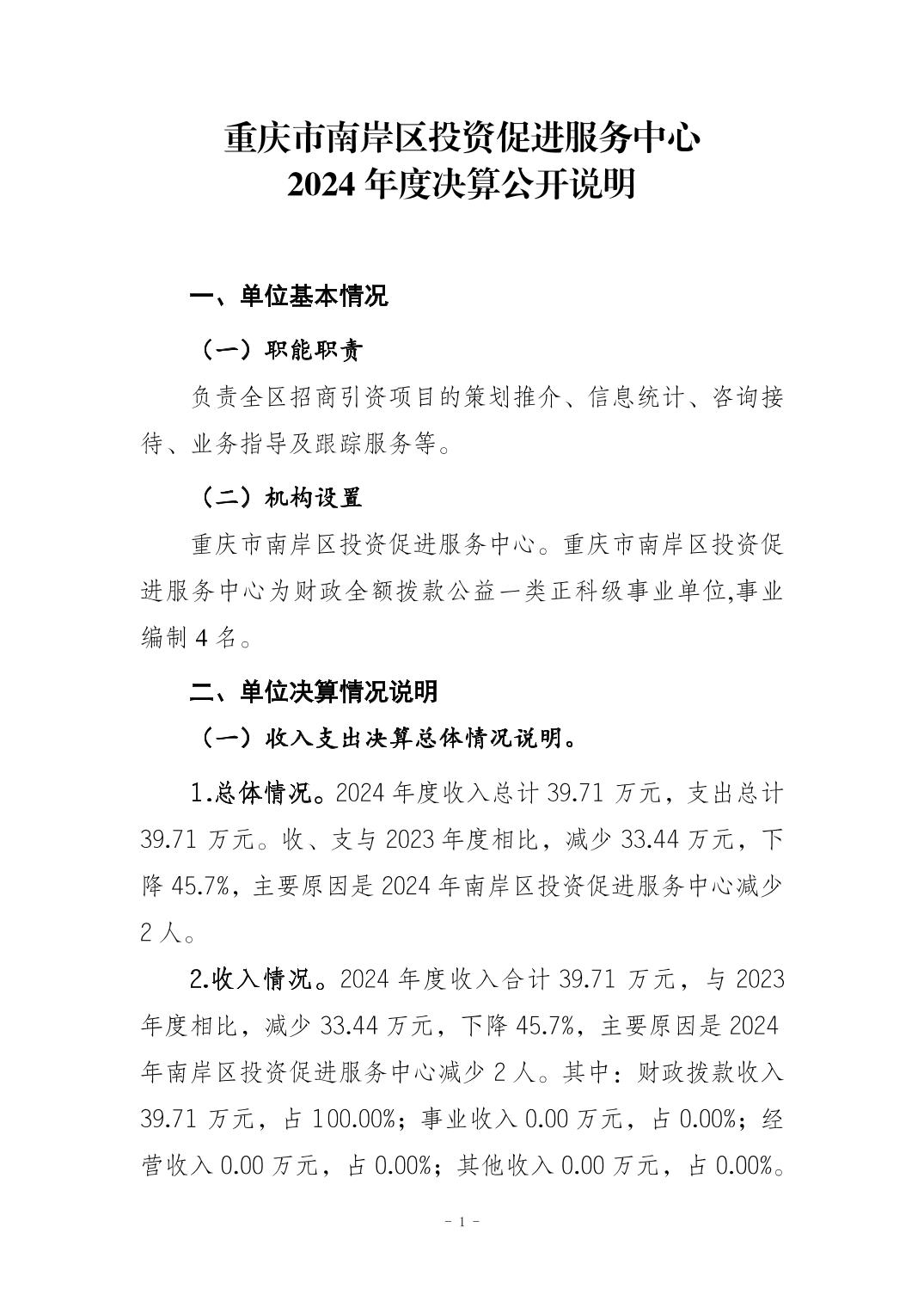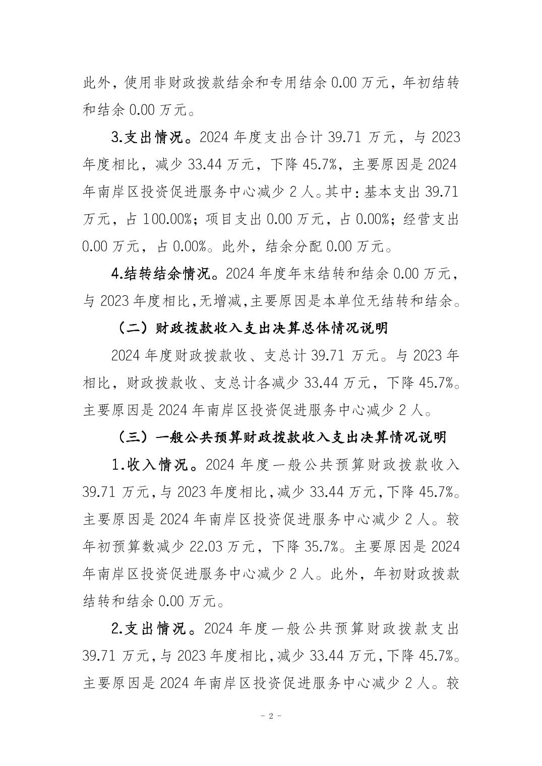 重庆市南岸区投资促进服务中心2024年度决算公开说明