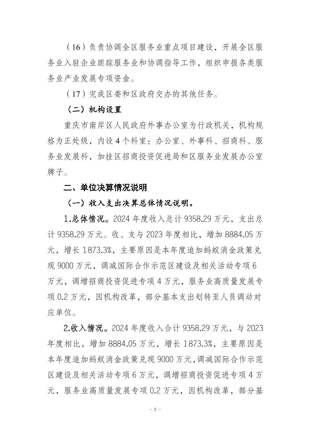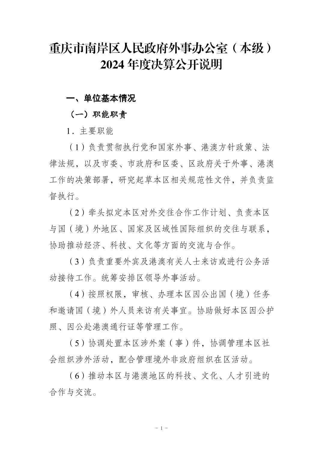 重庆市南岸区人民政府外事办公室(本级)2024年度决算公开说明