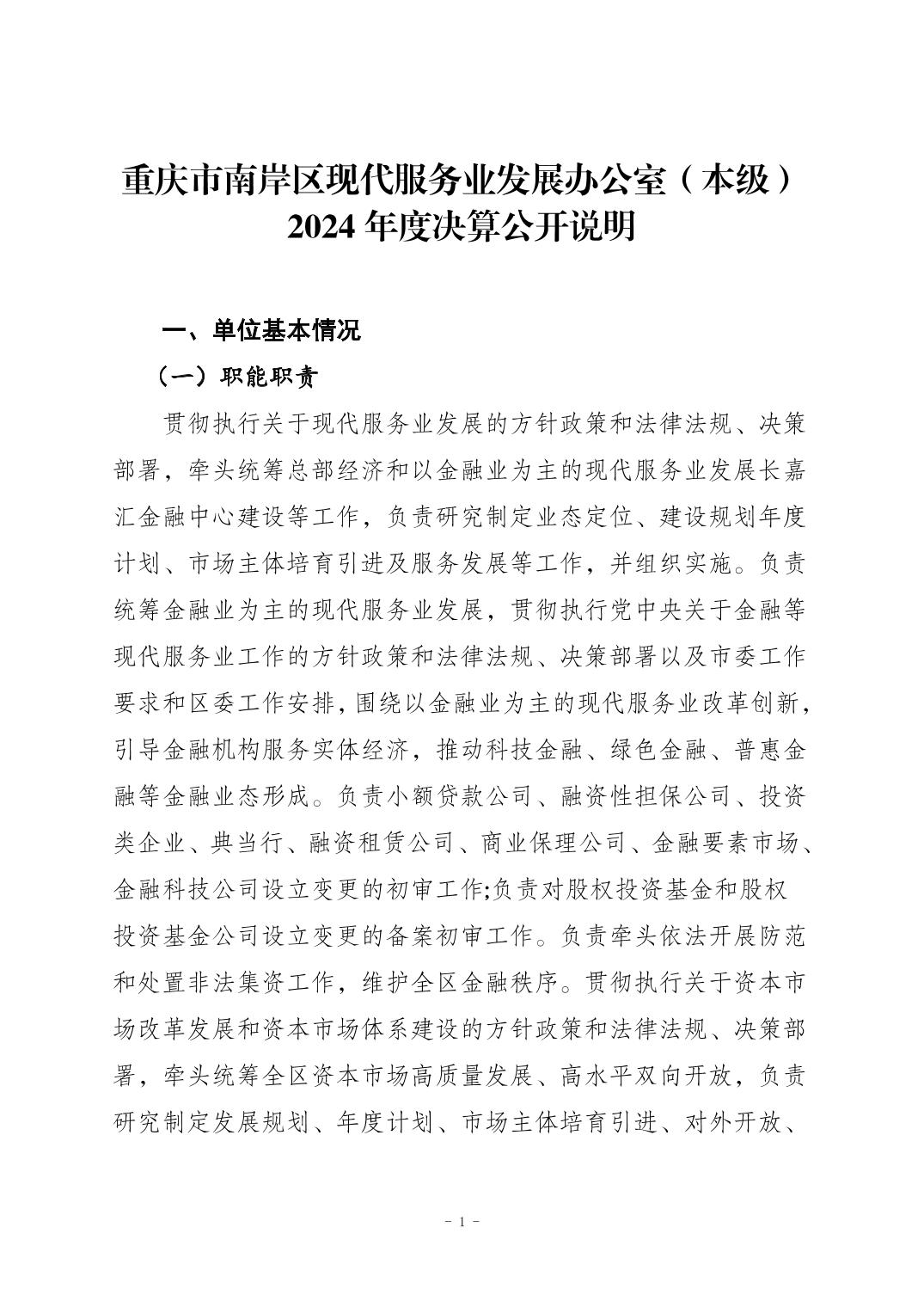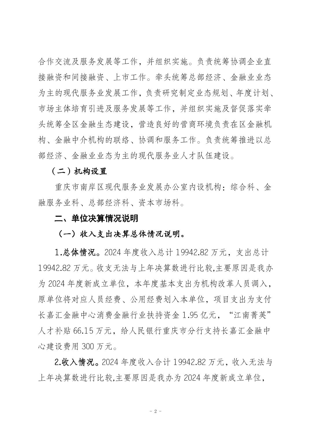 重庆市南岸区现代服务业发展办公室(本级)2024年度决算公开说明