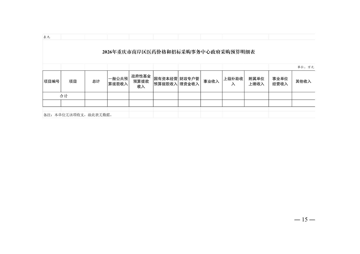 重庆市南岸区医药价格和招标采购事务中心2026年单位预算情况说明