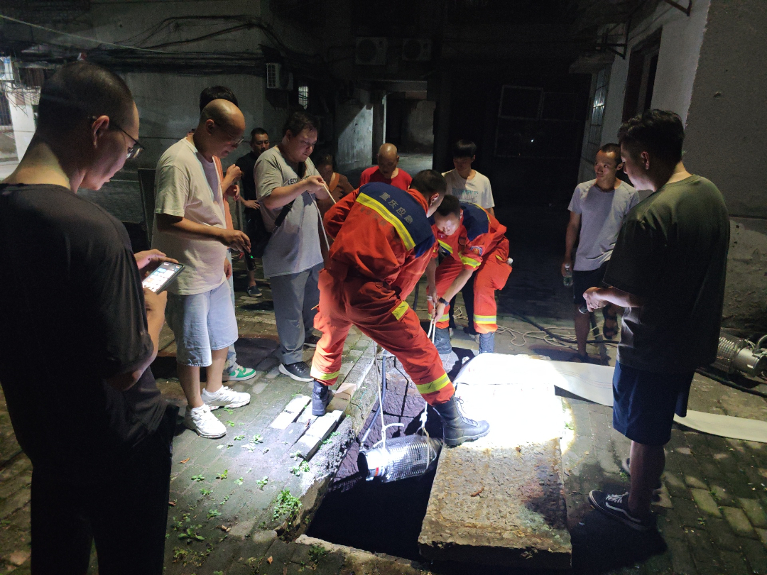 在设备布防的同时,救援支队还分成多个小组,对小区展开 “拉网式” 安全隐患排查。队员们重点检查了小区排水管网的通畅情况,用工具清理管网入口处的落叶、杂物;仔细查看小区边坡的稳定性,排查是否存在泥土松动、石块脱落等风险;对小区应急电源设备进行通电测试,确保断电时能及时供电。针对排查中发现的排水沟渠堵塞问题,队员们还主动协助物业工作人员进行疏通,并在地下车库入口、低洼路段等重点区域增设安全警示标志,提醒居民注意通行安全。