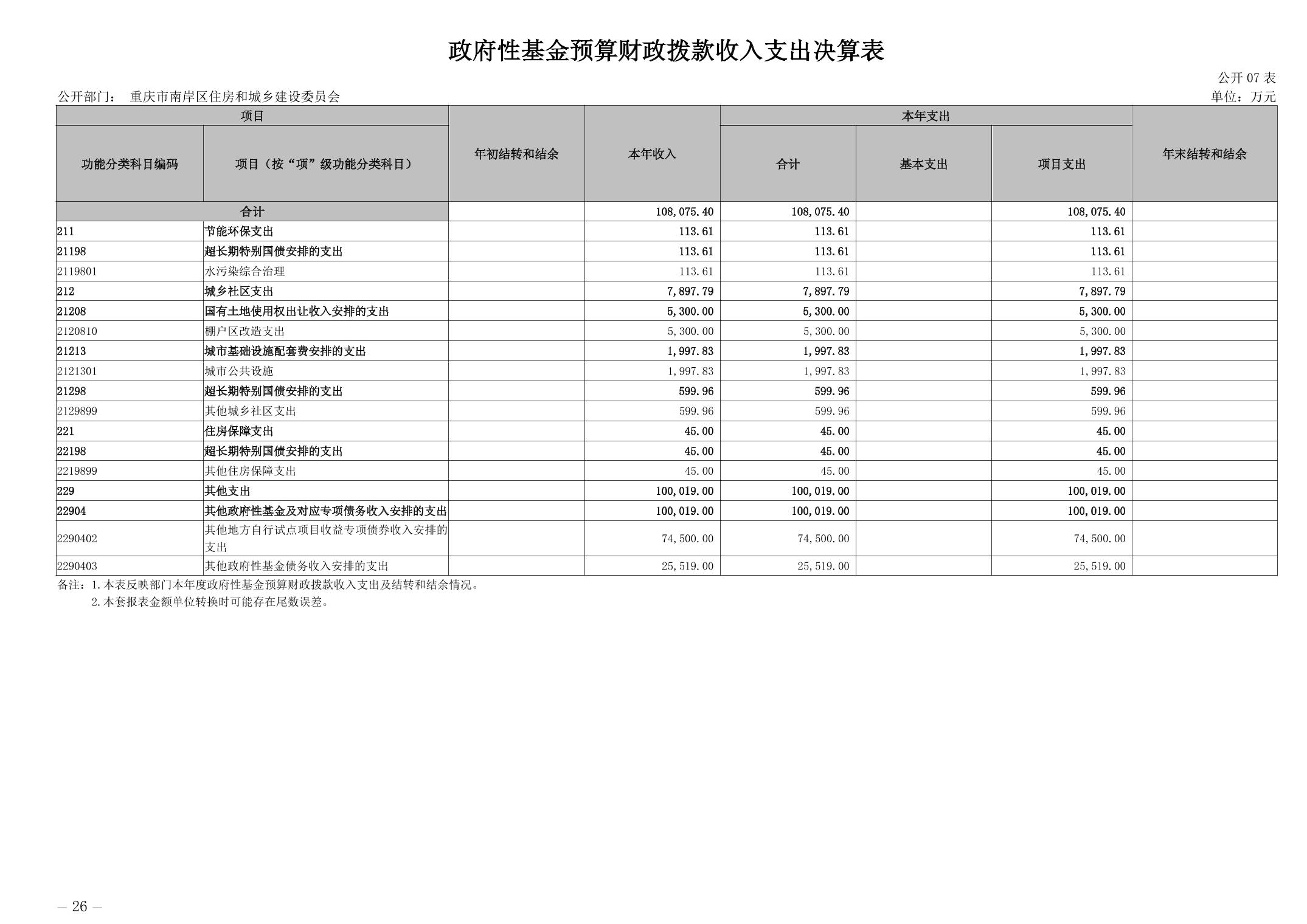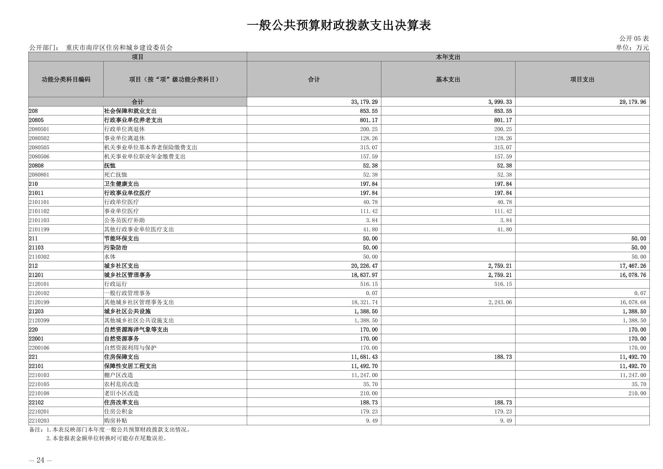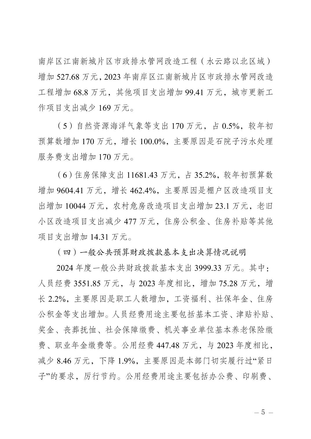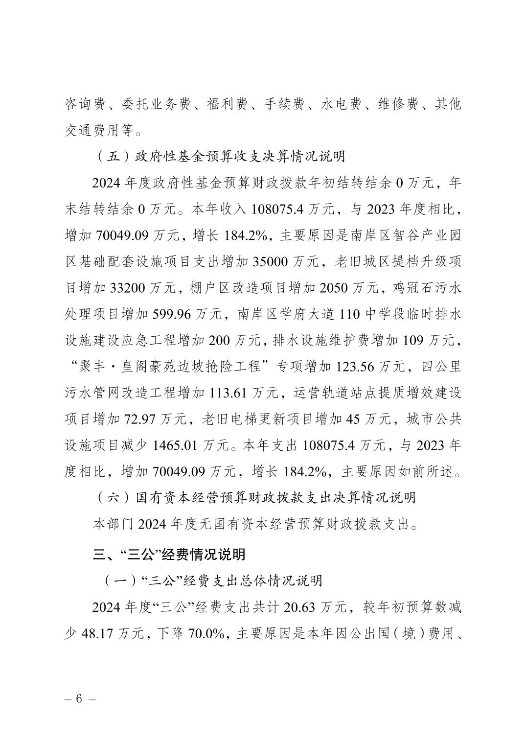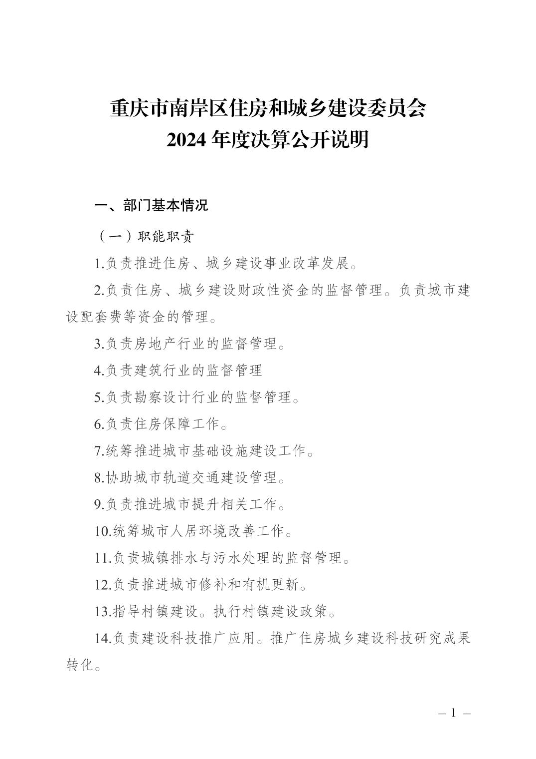 重庆市南岸区住房和城乡建设委员会2024年度决算公开说明