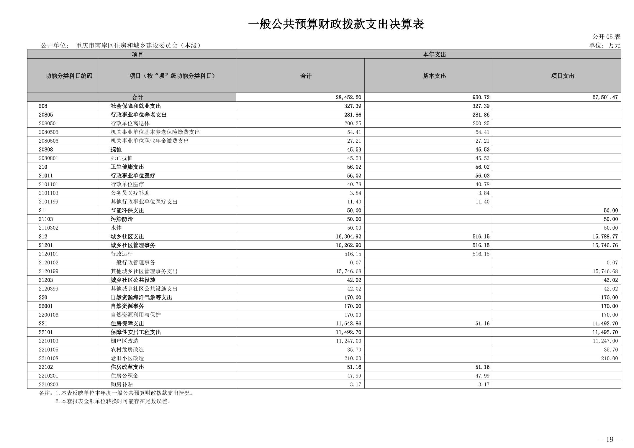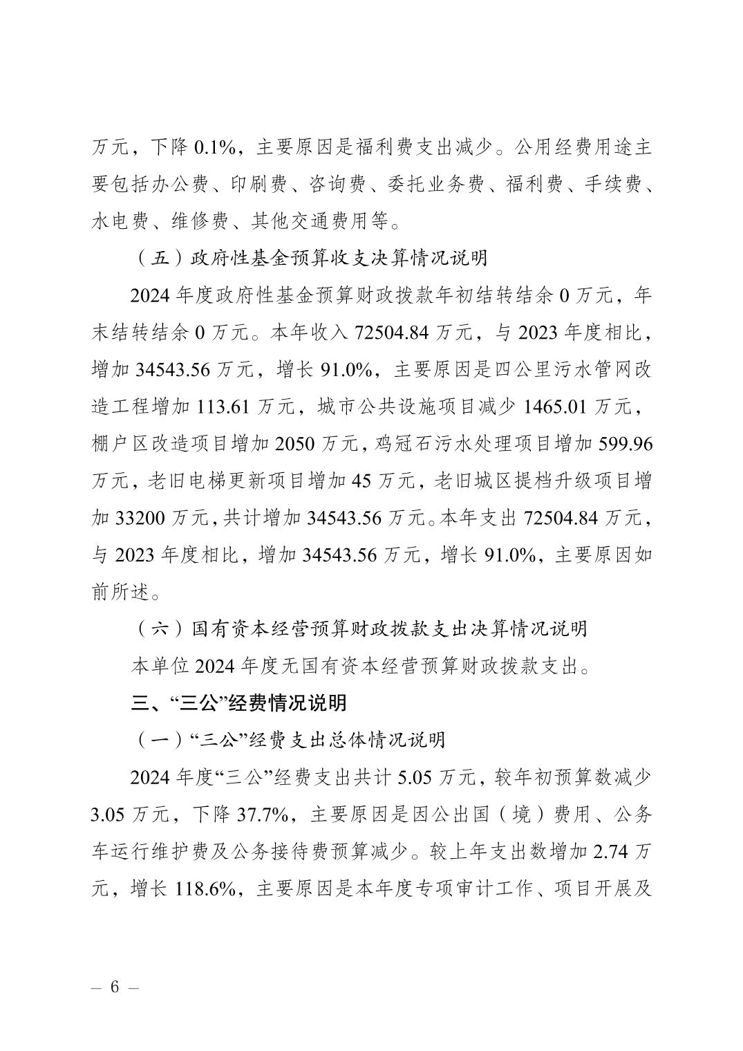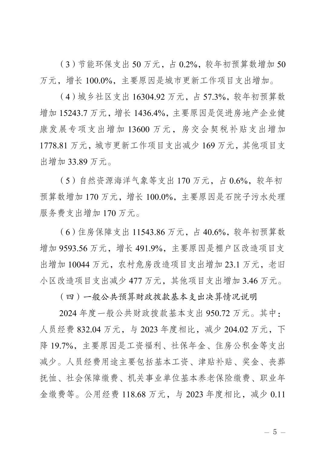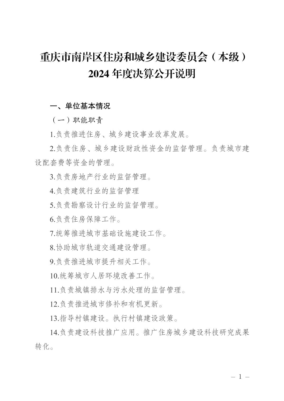 重庆市南岸区住房和城乡建设委员会(本级)2024 年度决算公开说明