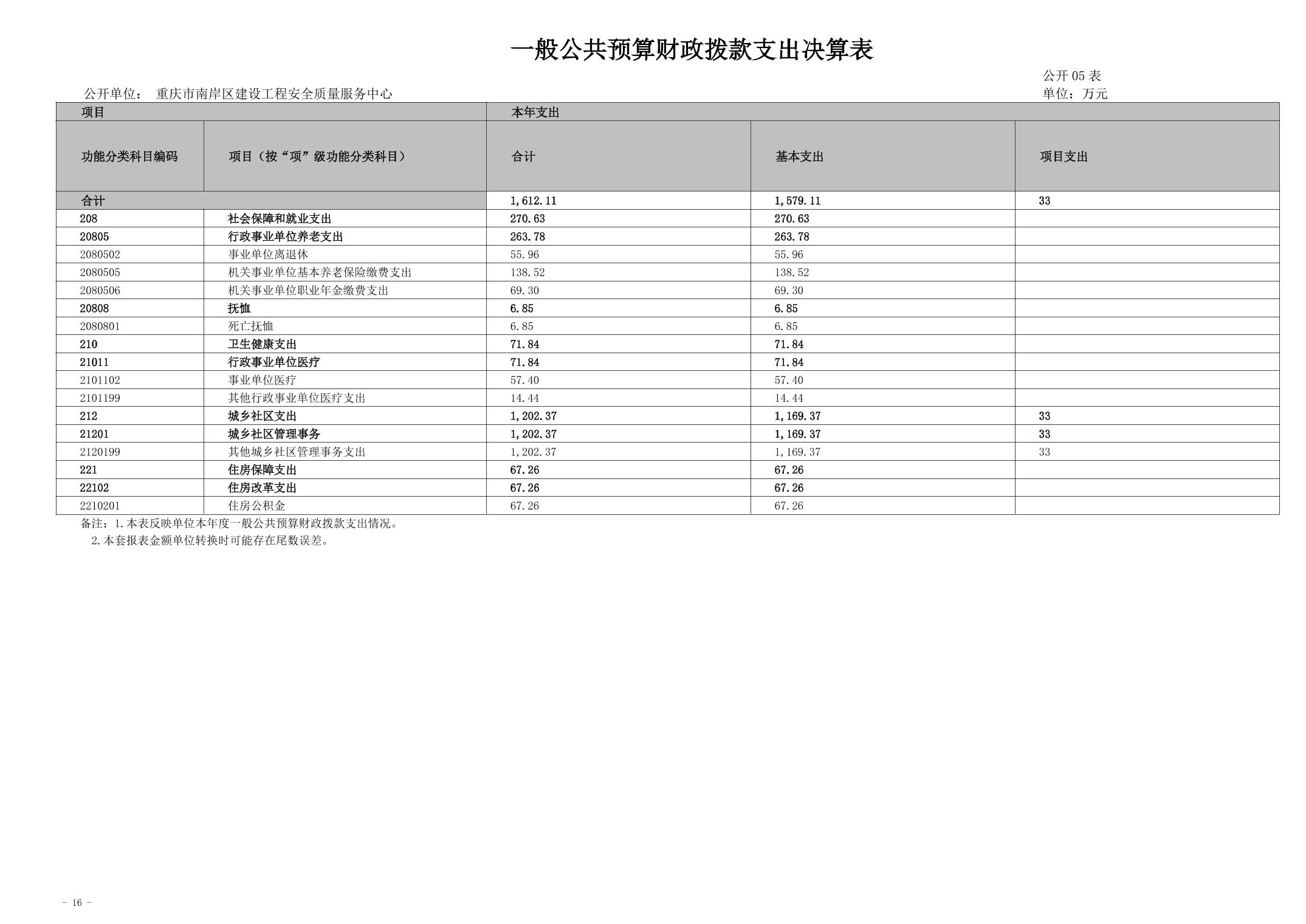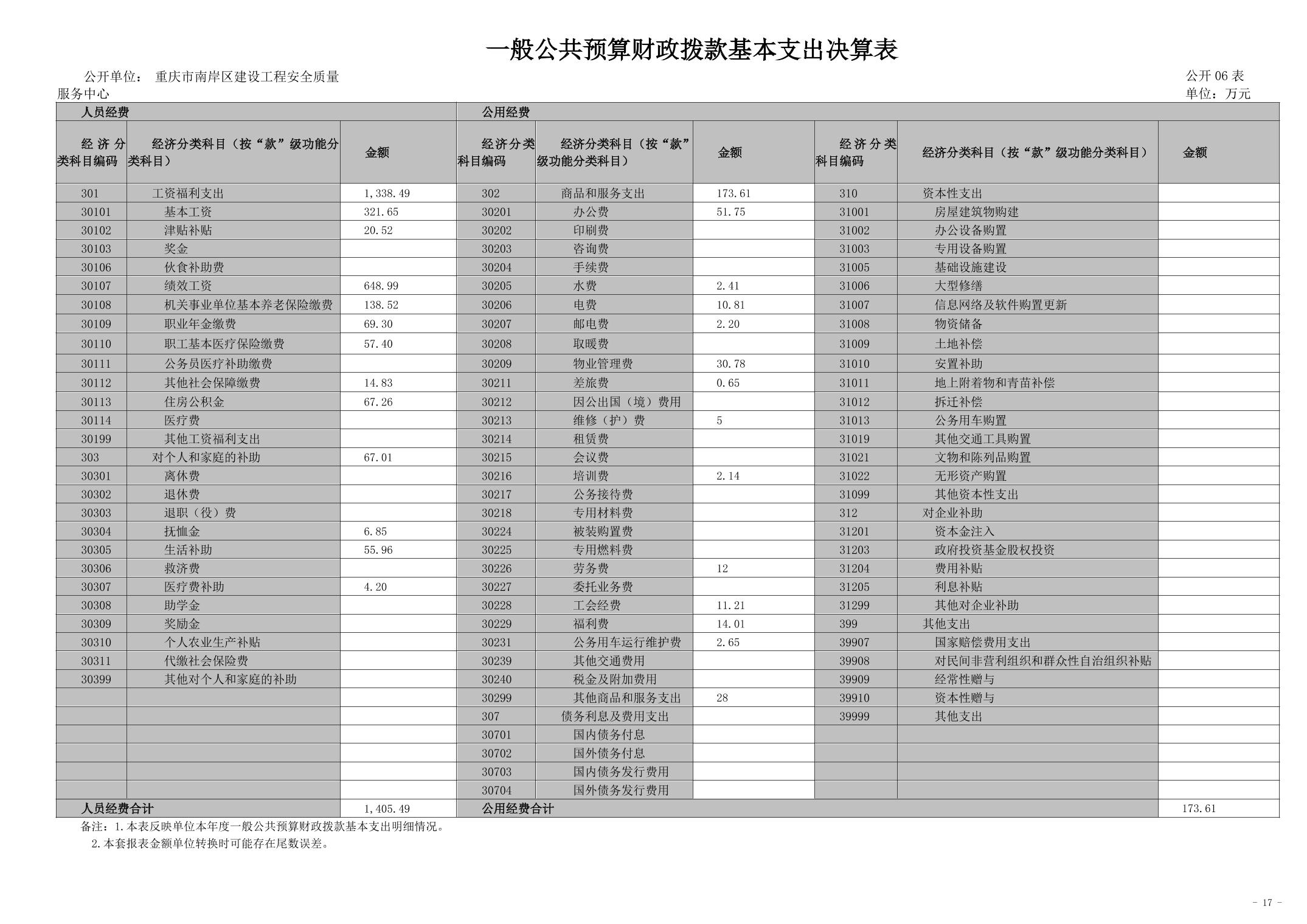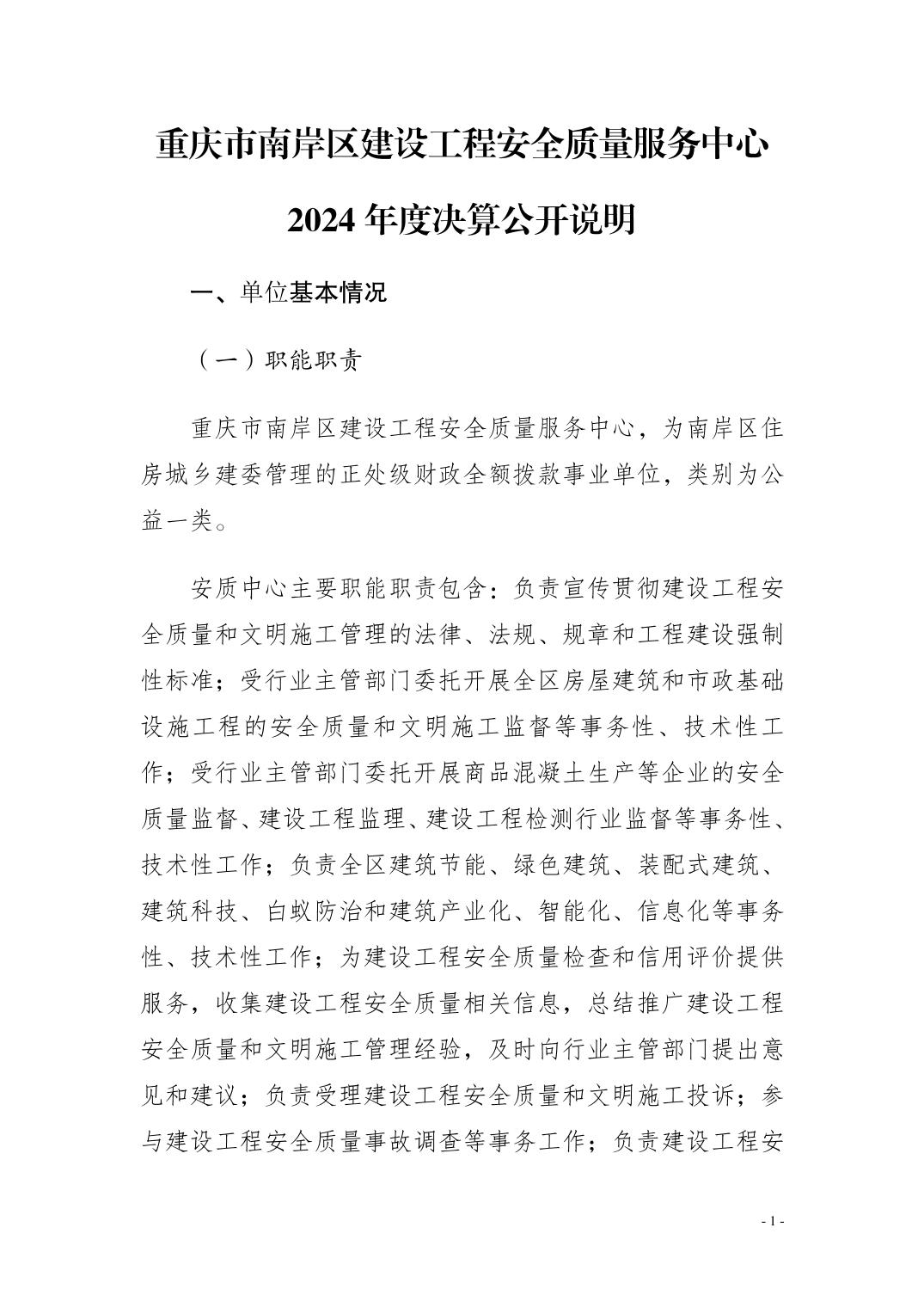 重庆市南岸区建设工程安全质量服务中心2024年度决算公开说明
