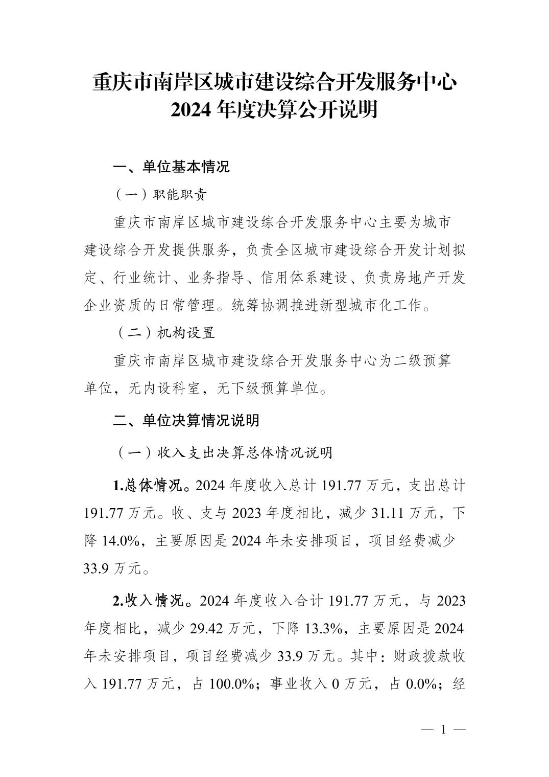 重庆市南岸区城市建设综合开发服务中心2024年度决算公开说明