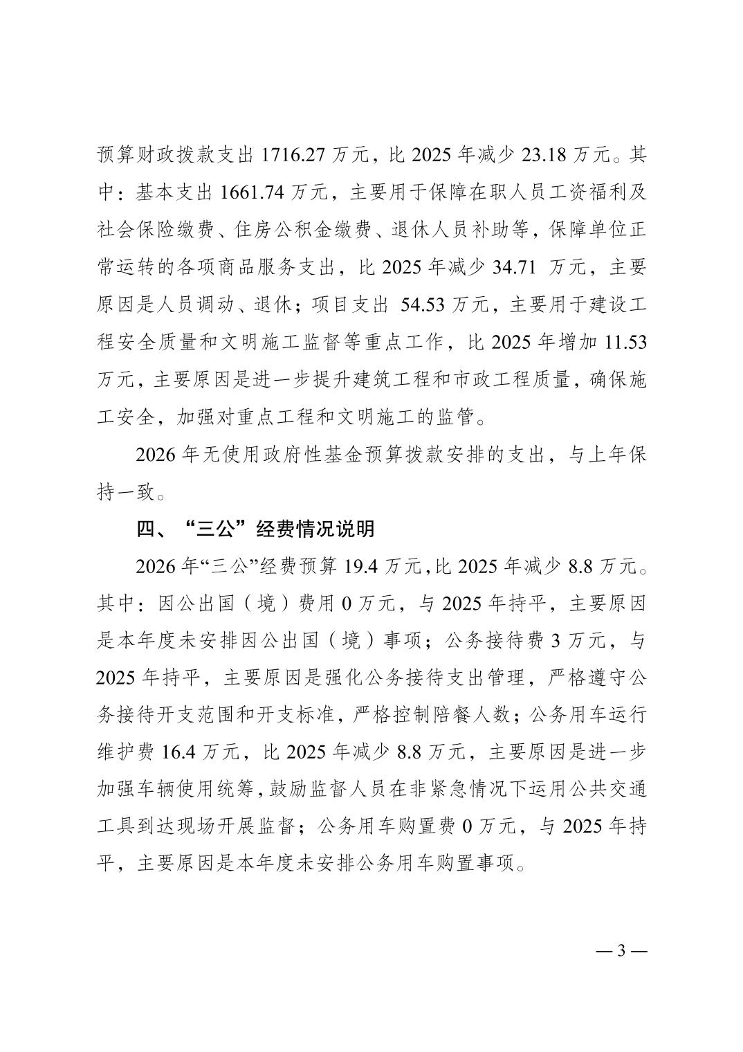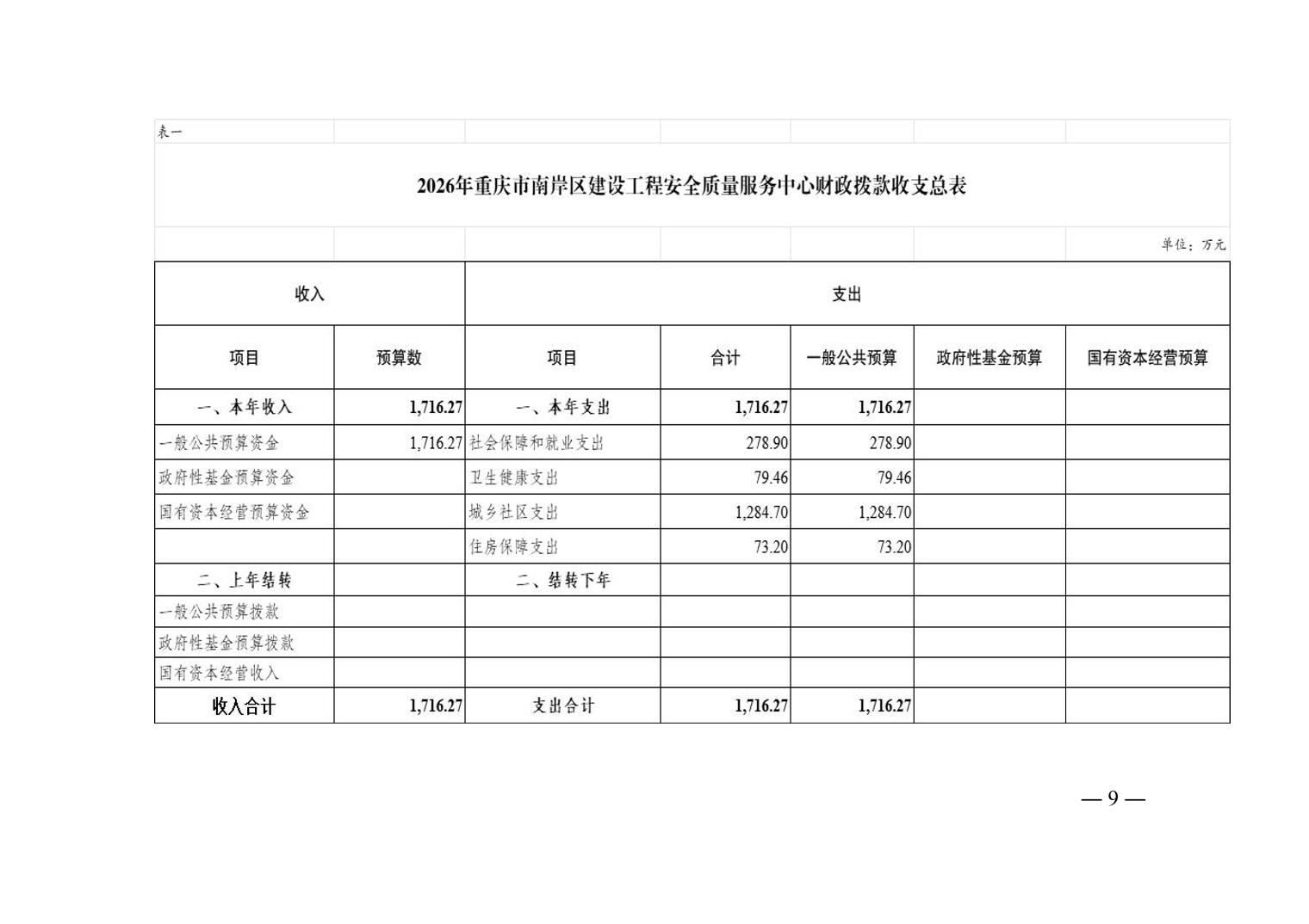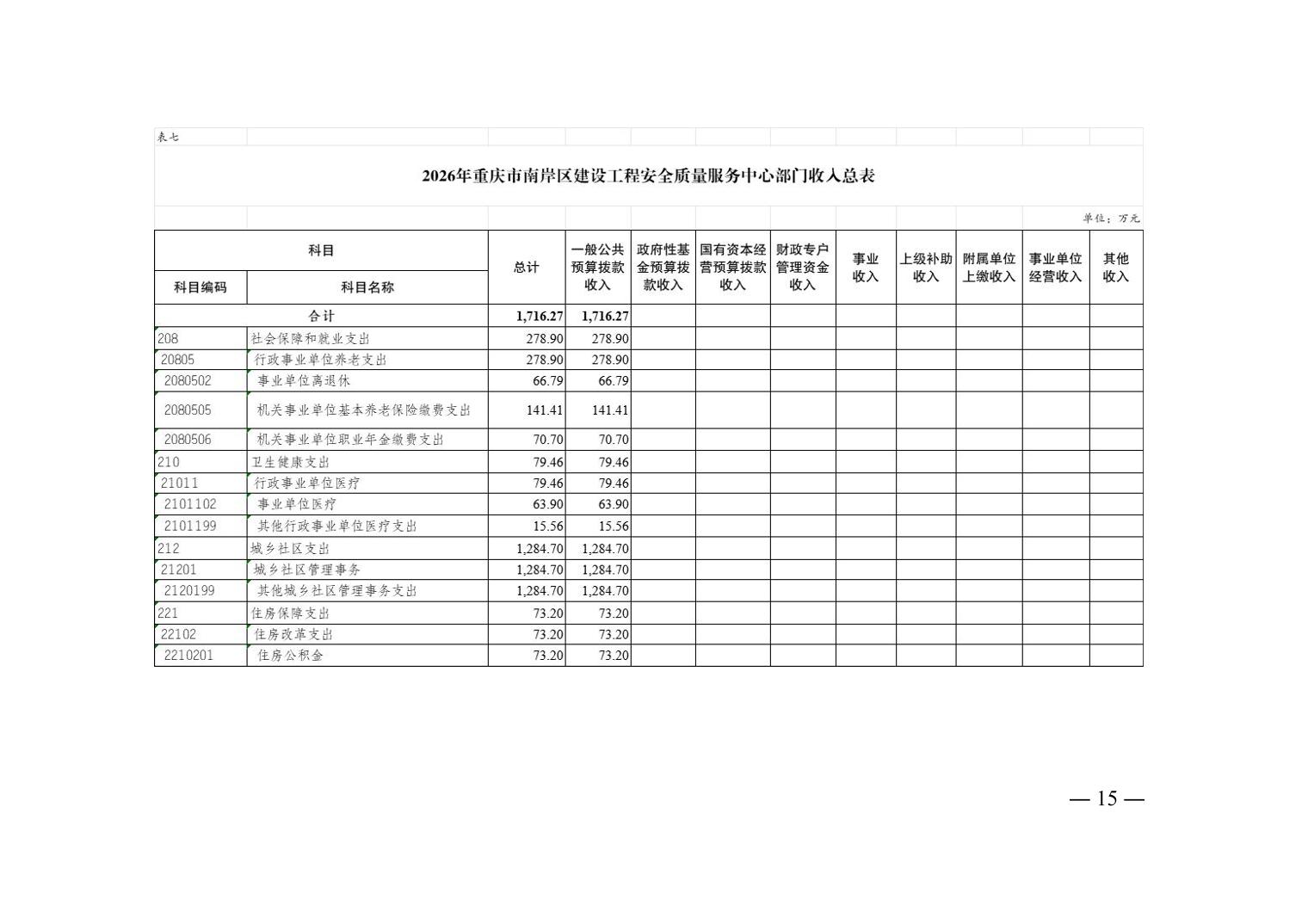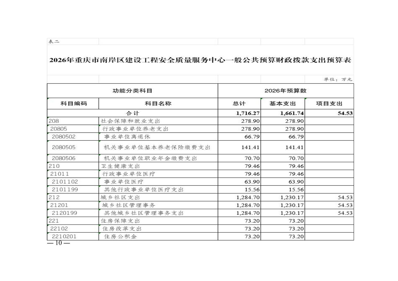 重庆市南岸区建设工程安全质量服务中心2026年单位预算情况说明