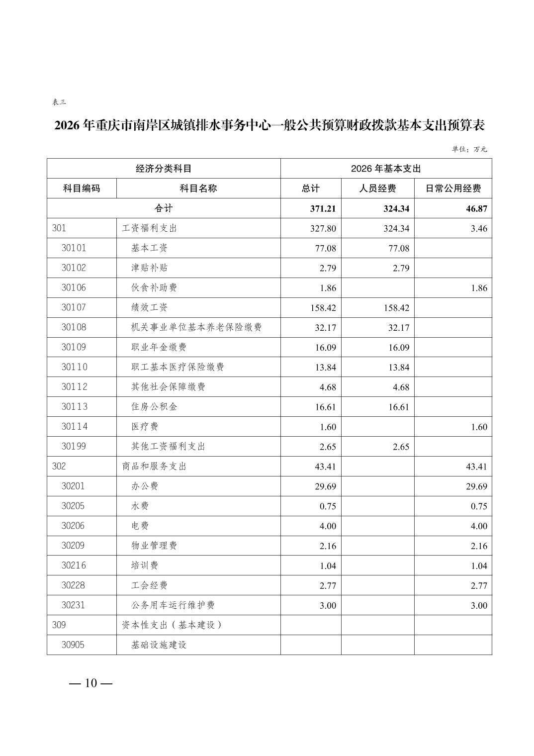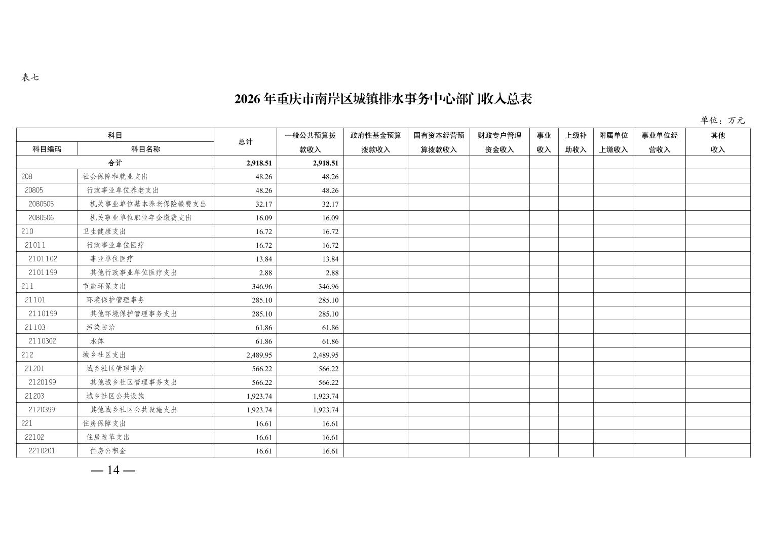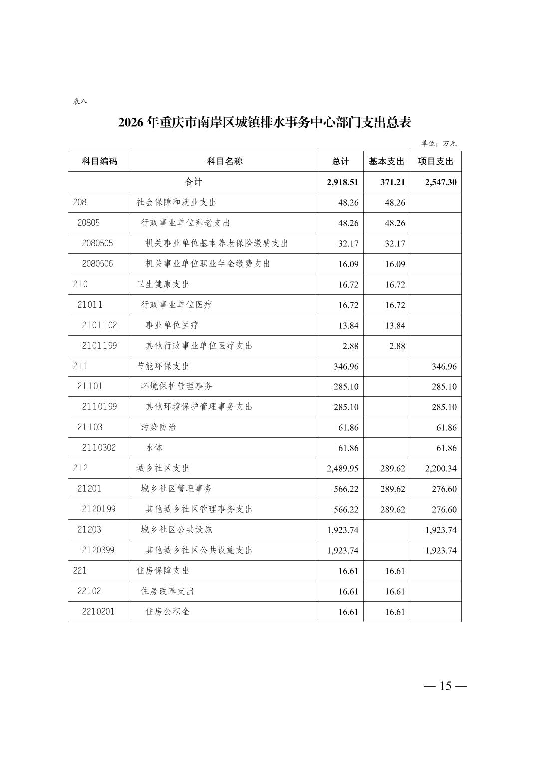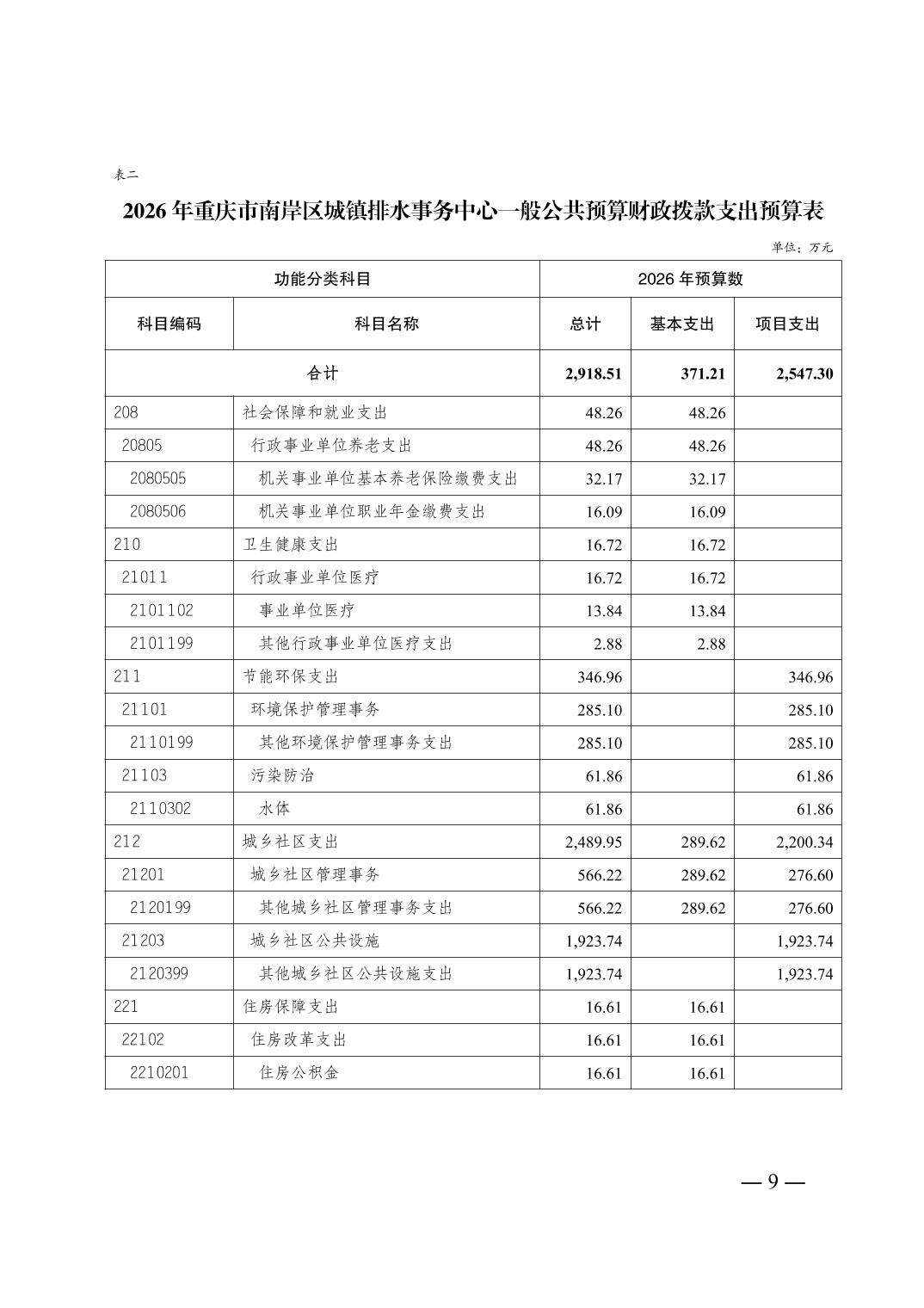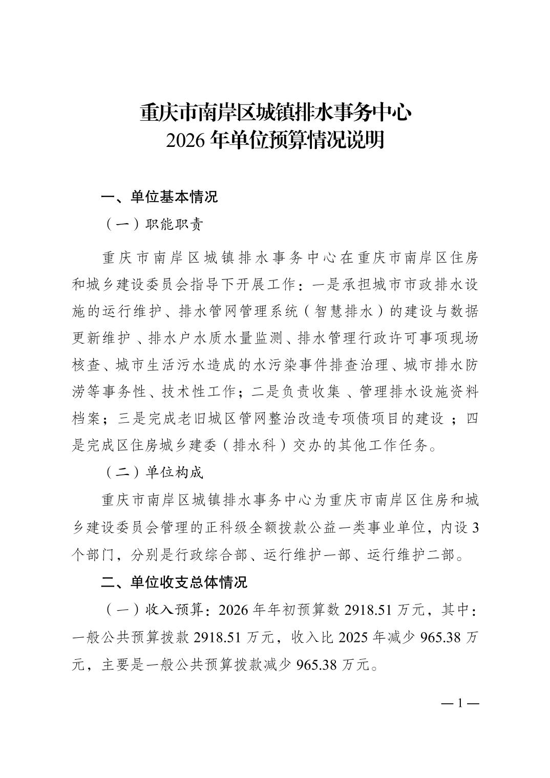 重庆市南岸区城镇排水事务中心2026年单位预算情况说明