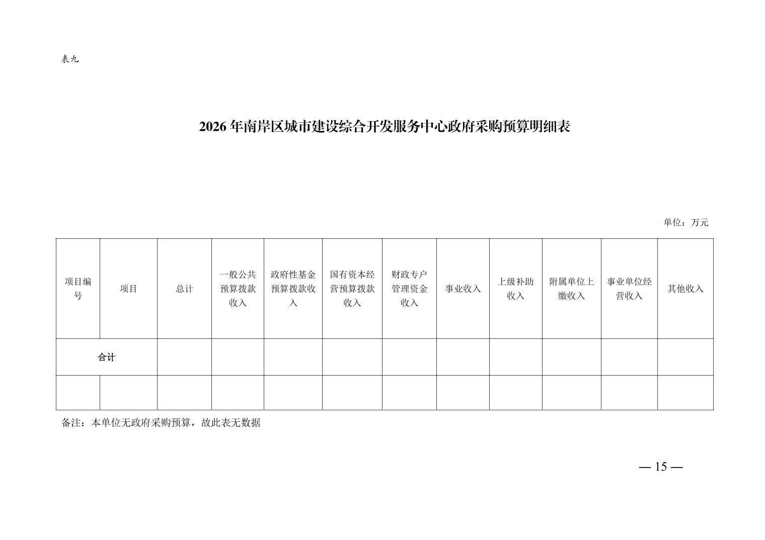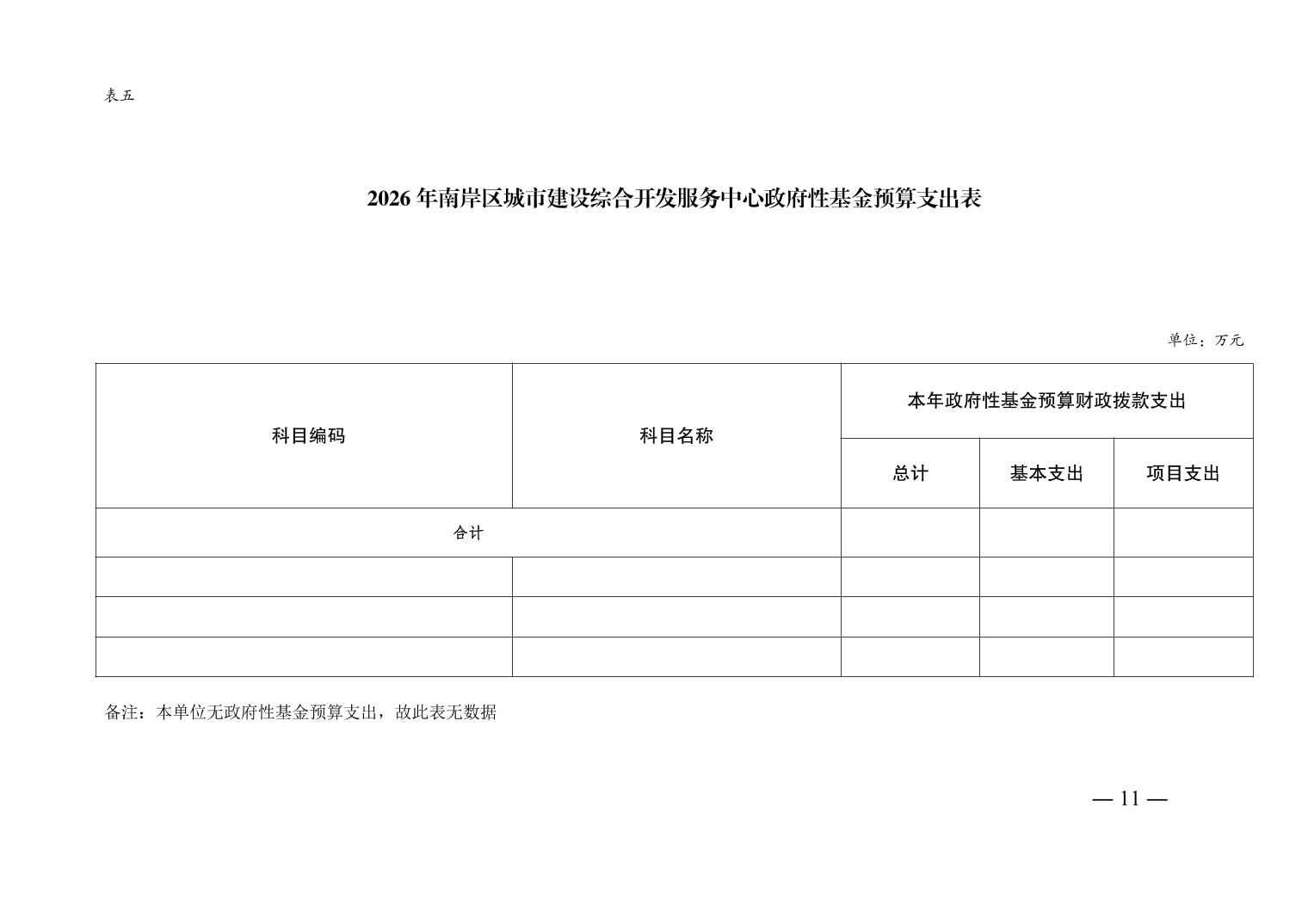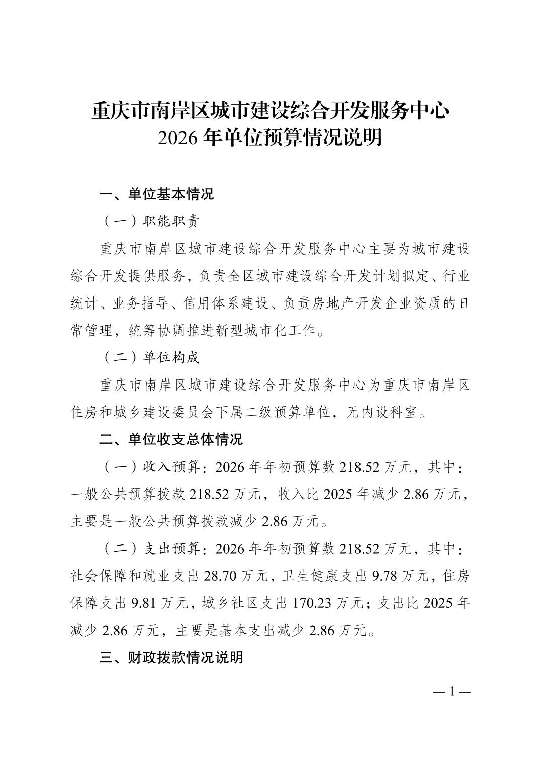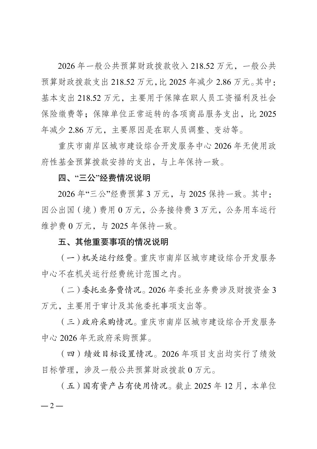 重庆市南岸区城市建设综合开发服务中心2026年单位预算情况说明