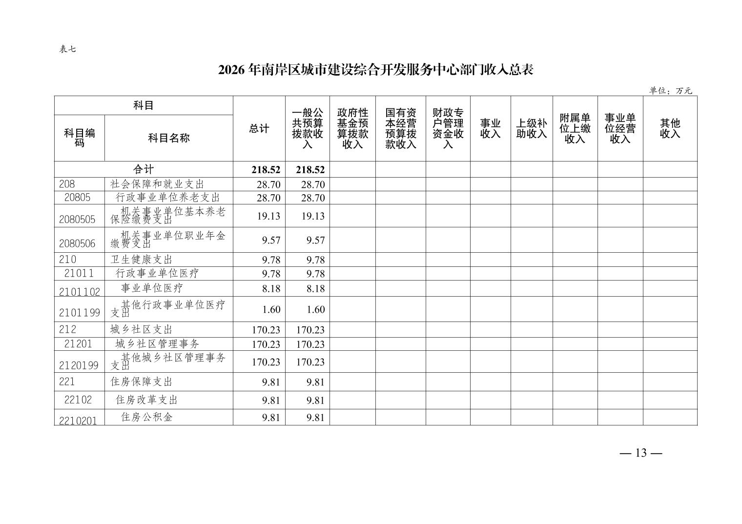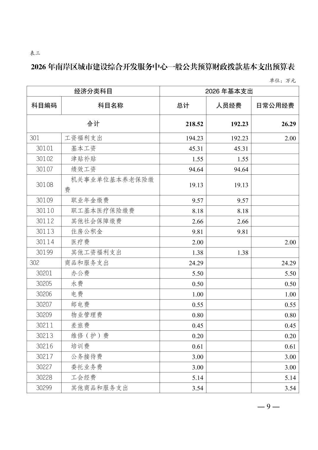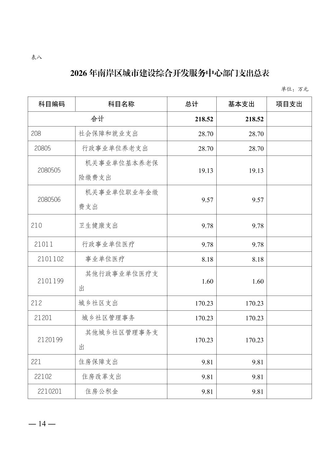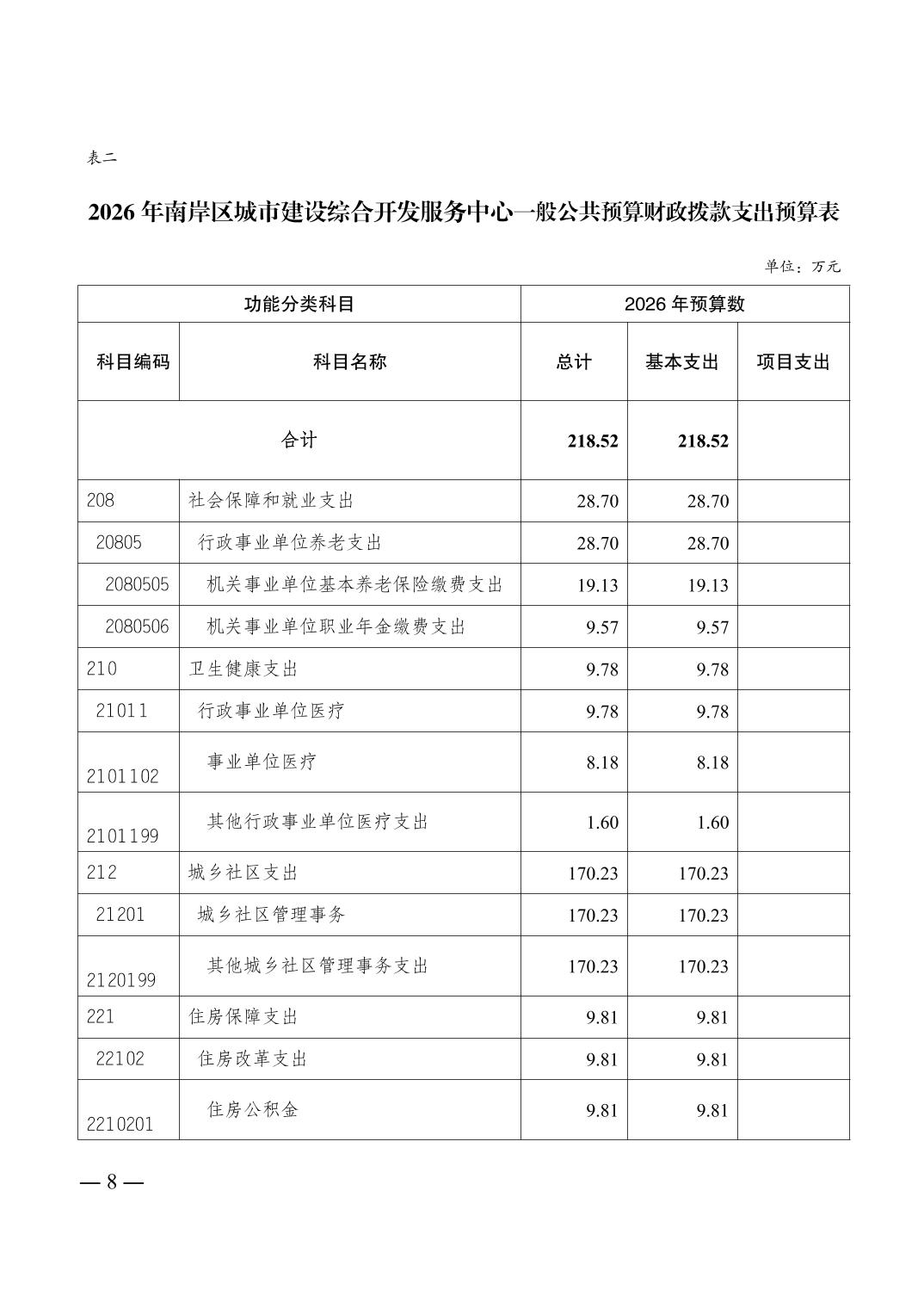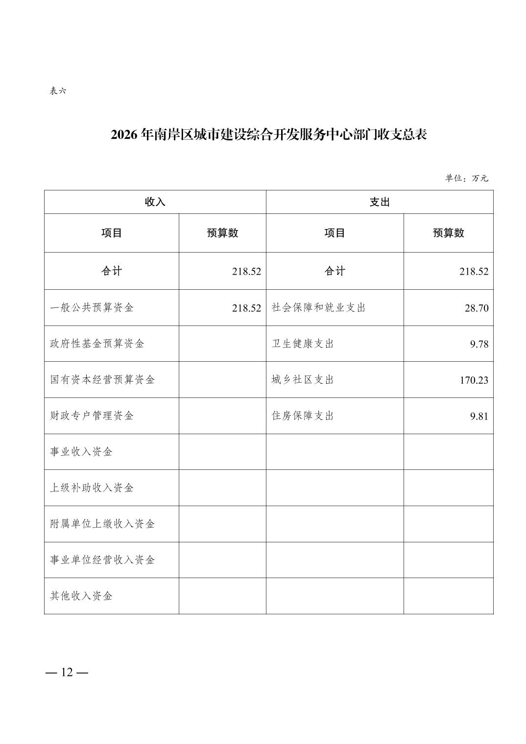 重庆市南岸区城市建设综合开发服务中心2026年单位预算情况说明