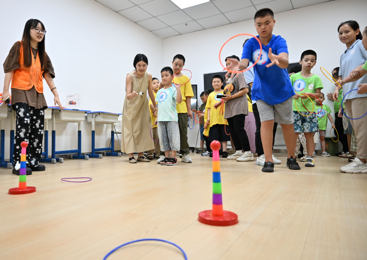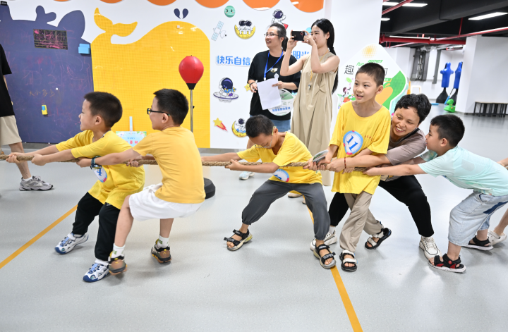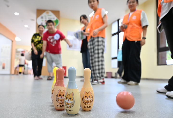 7月17日,2025年南岸区特奥趣味运动会在弹子石街道举行。在全国特奥日来临之际,一群来自康复机构的特殊参赛者们全情投入比赛,在欢声笑语中敞开心扉,拥抱阳光。