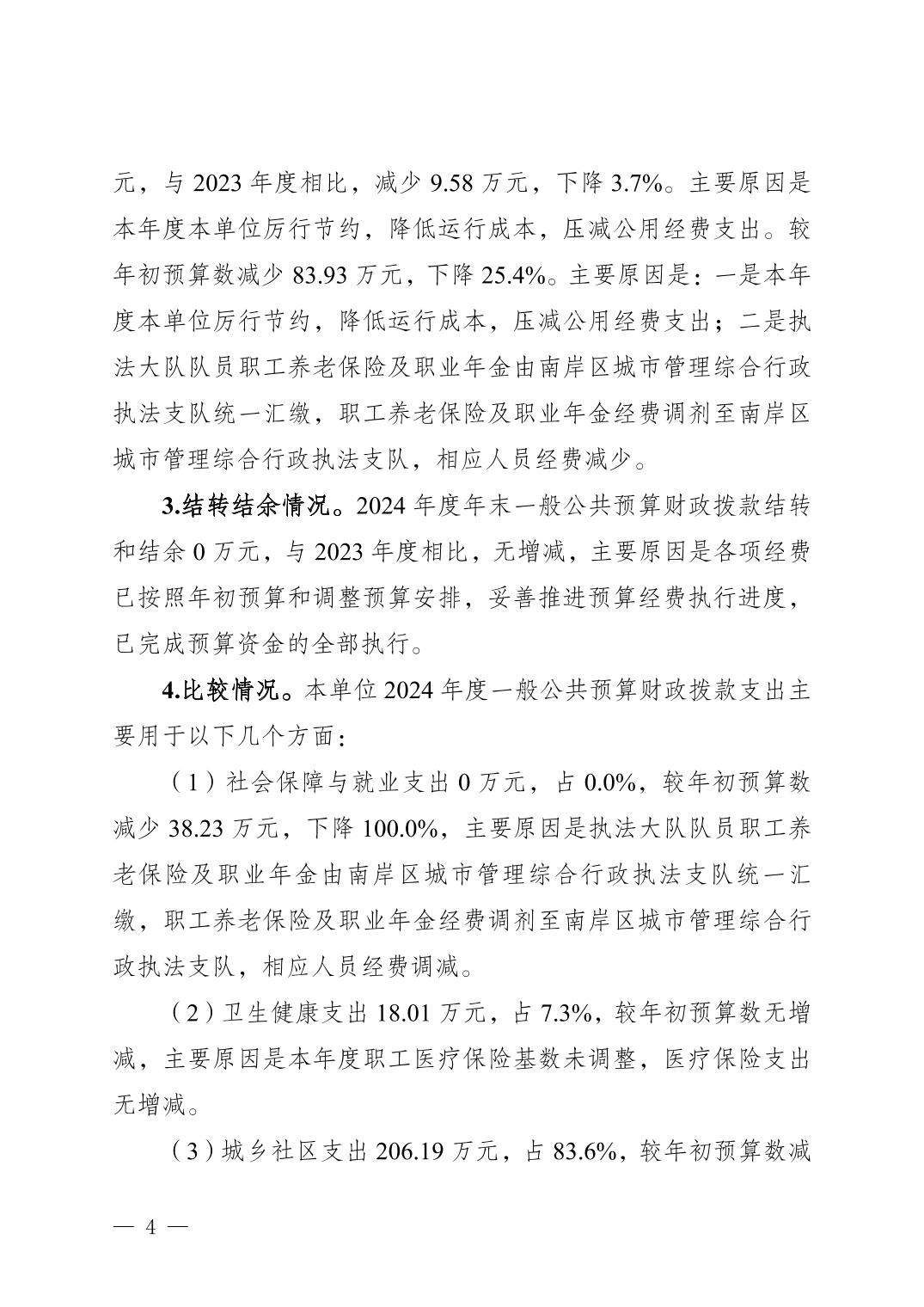 重庆市南岸区城市管理综合行政执法支队弹子石街道执法大队2024年度决算公开说明