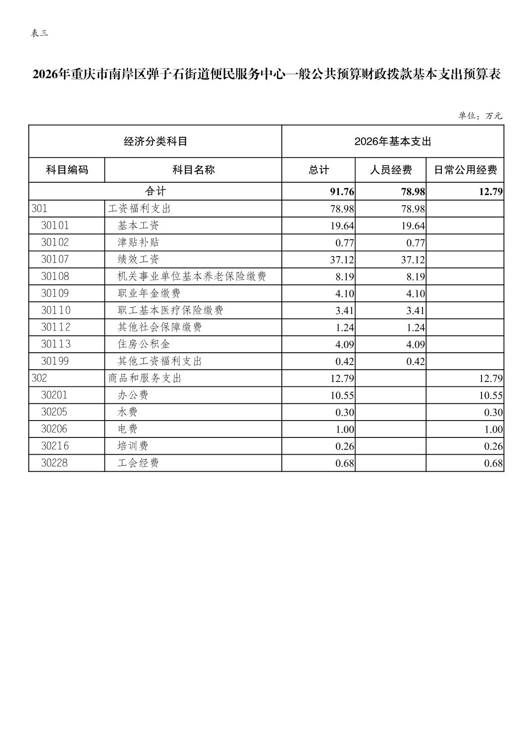 重庆市南岸区弹子石街道便民服务中心2026年单位预算情况说明