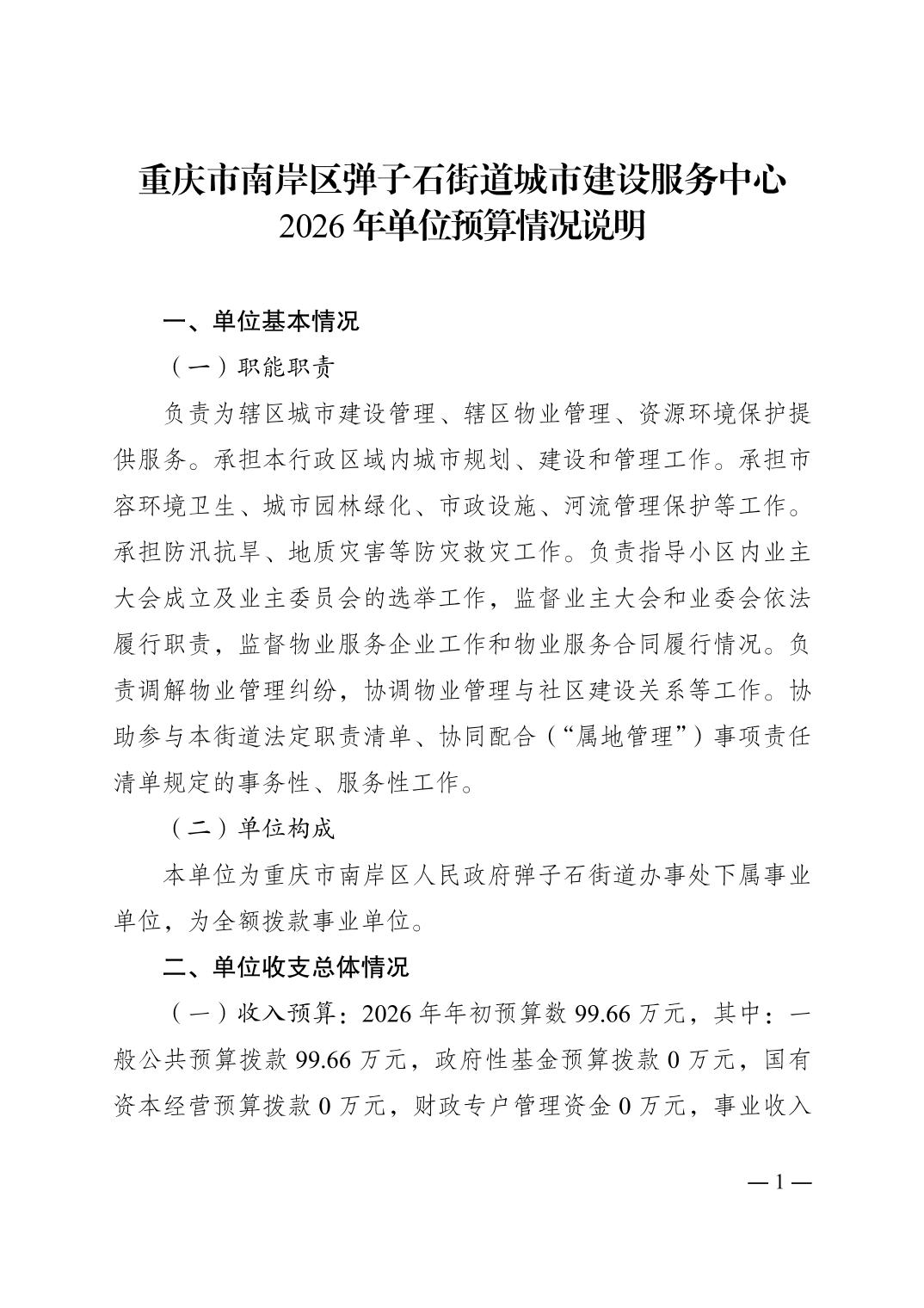 重庆市南岸区弹子石街道城市建设服务中心2026年单位预算情况说明