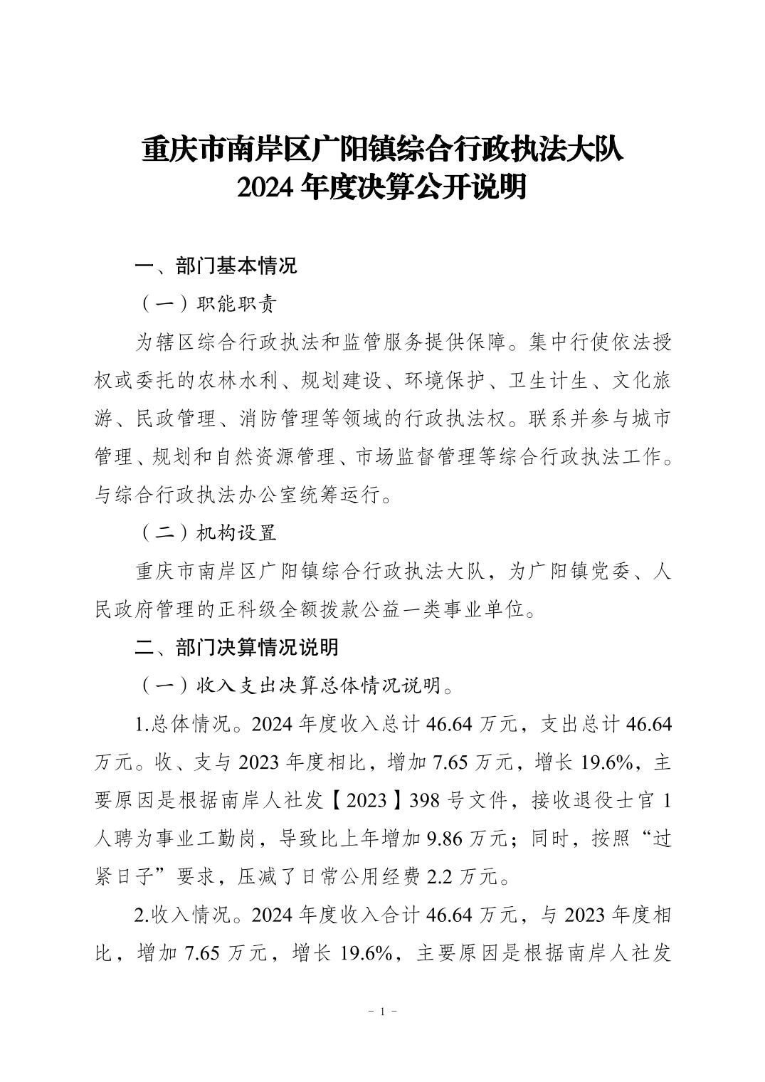 重庆市南岸区广阳镇综合行政执法大队_南岸区区决算公开报告及公开报表(部门)