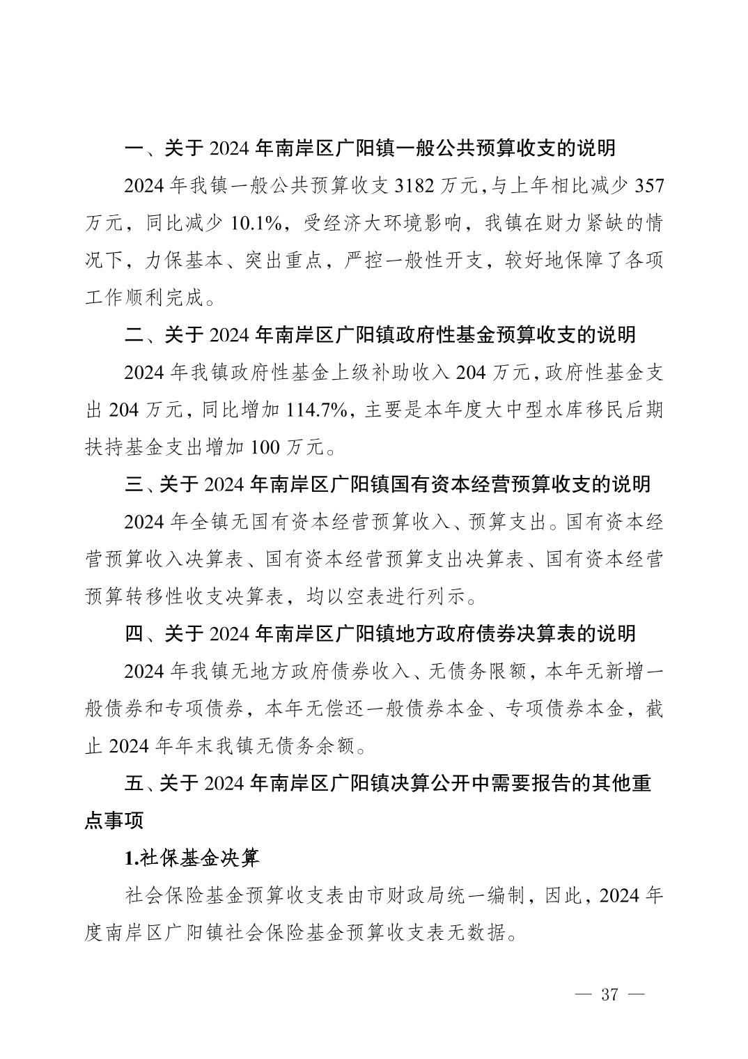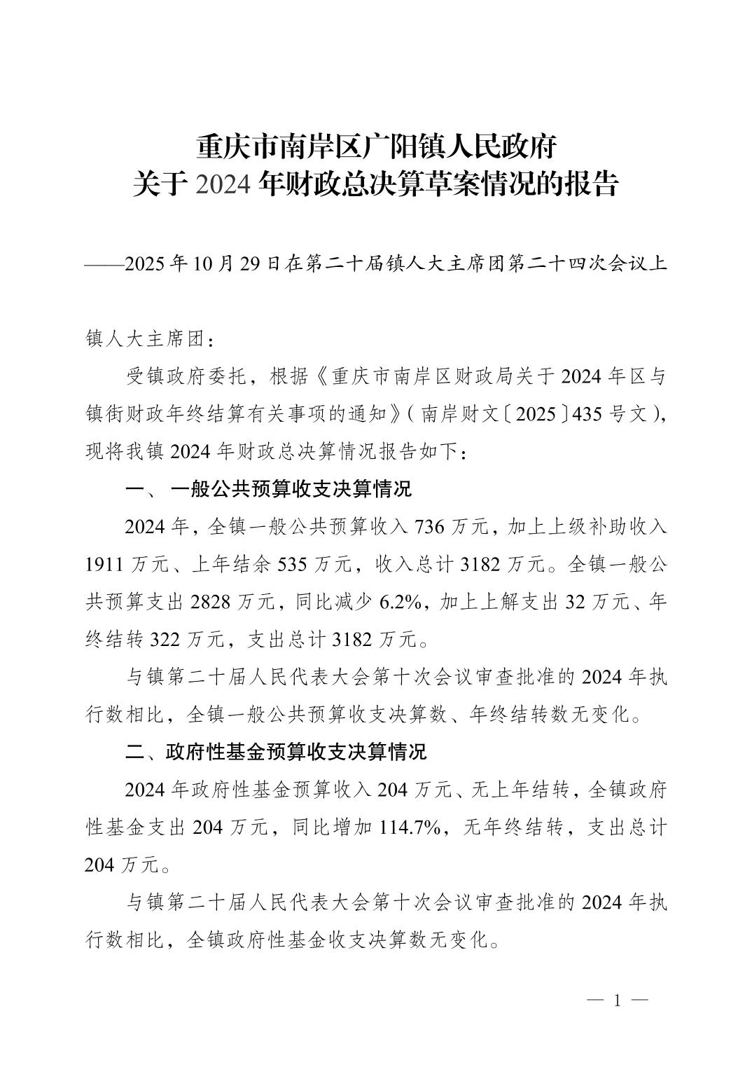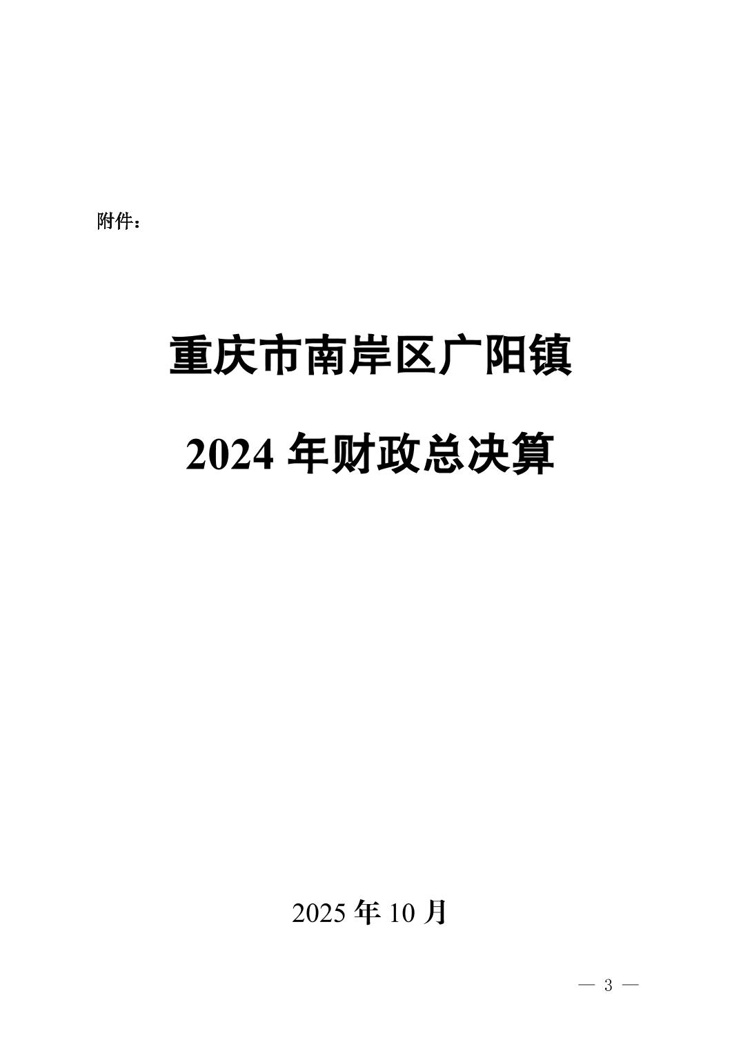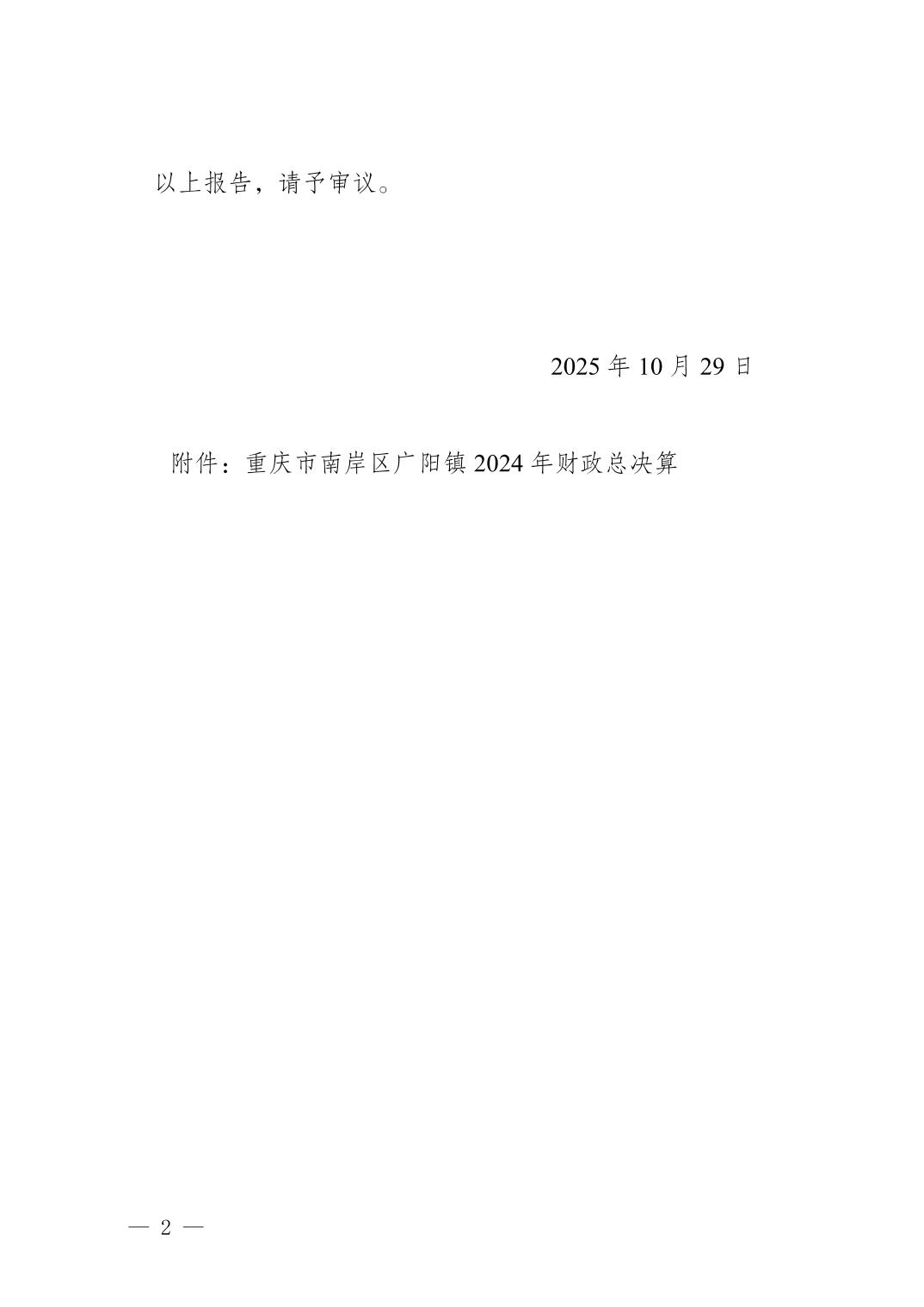重庆市南岸区广阳镇人民政府关于2024年财政总决算情况的报告