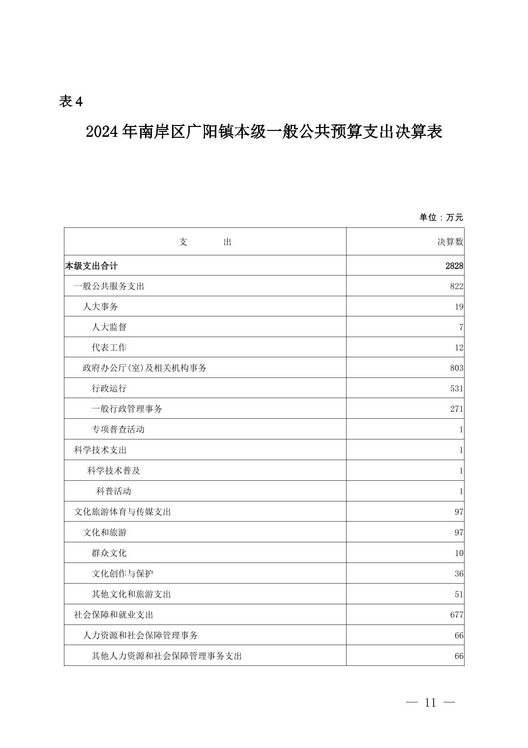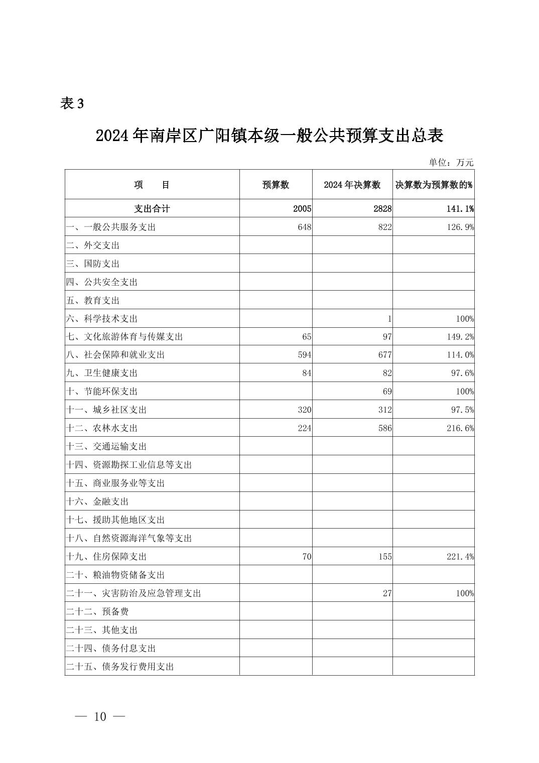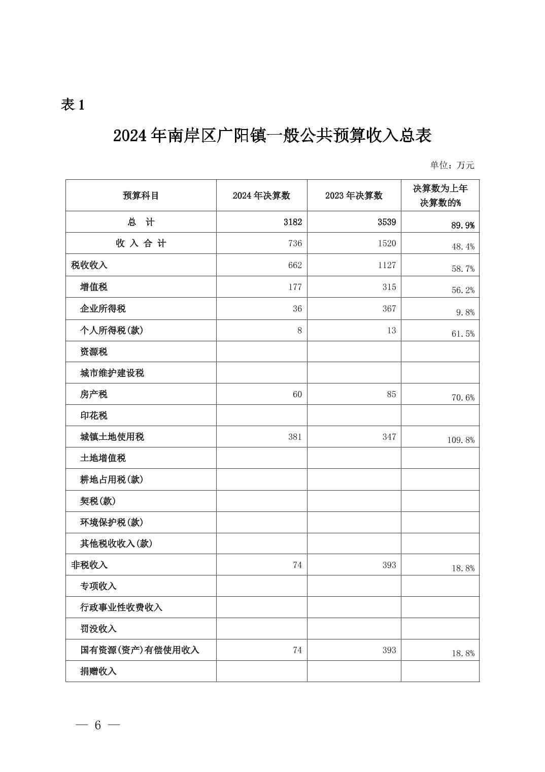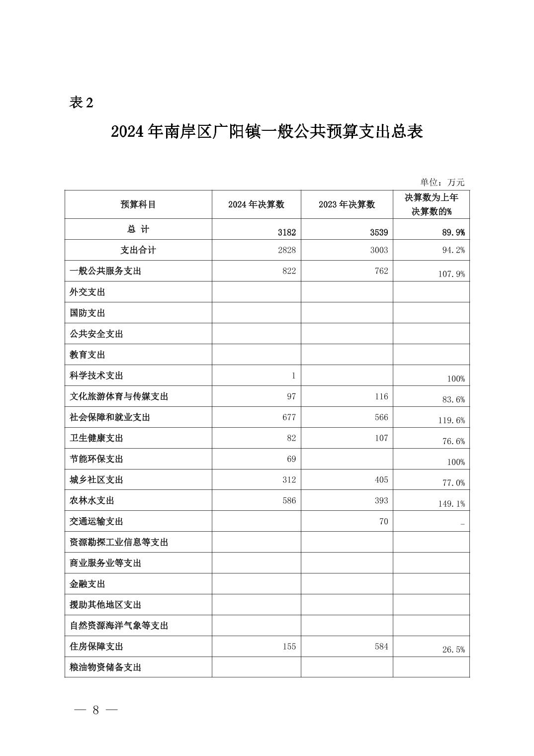 重庆市南岸区广阳镇人民政府关于2024年财政总决算情况的报告