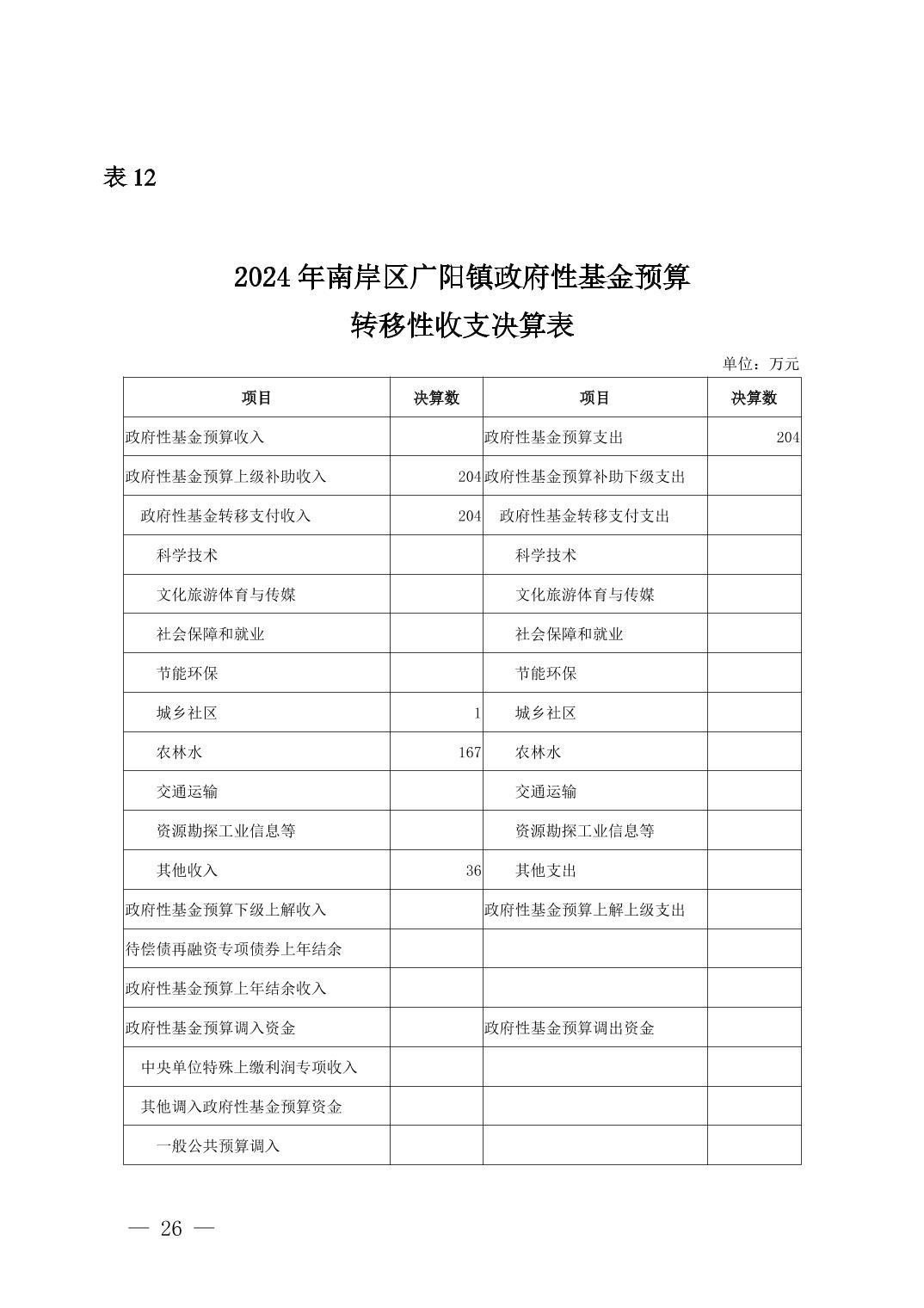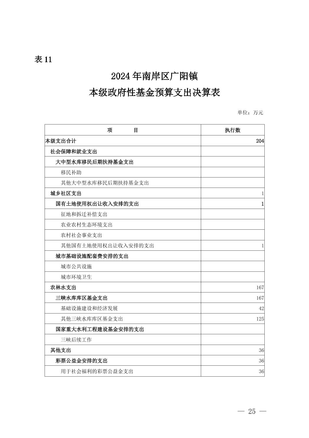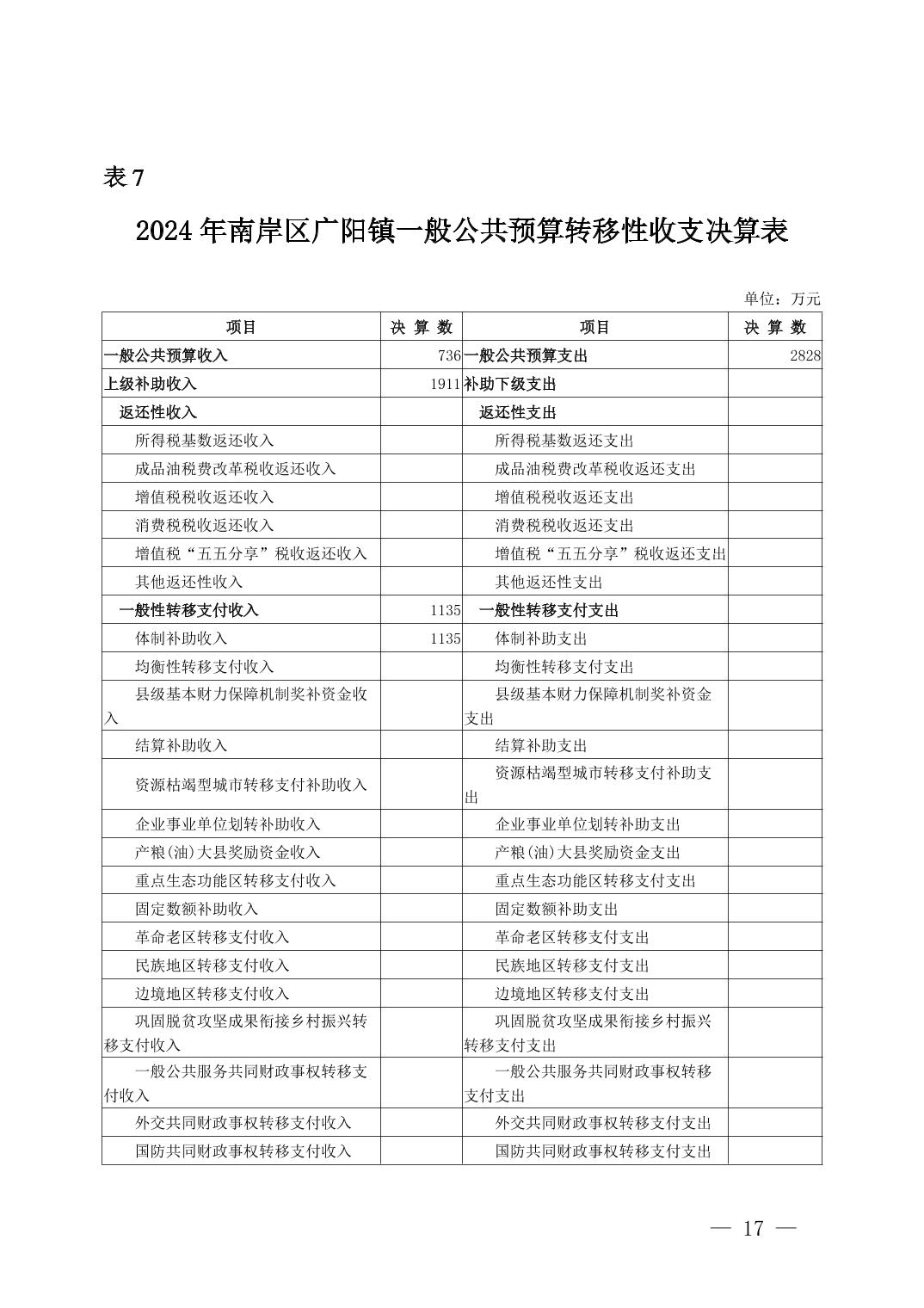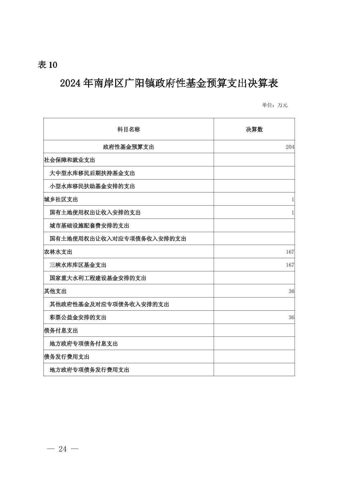 重庆市南岸区广阳镇人民政府关于2024年财政总决算情况的报告