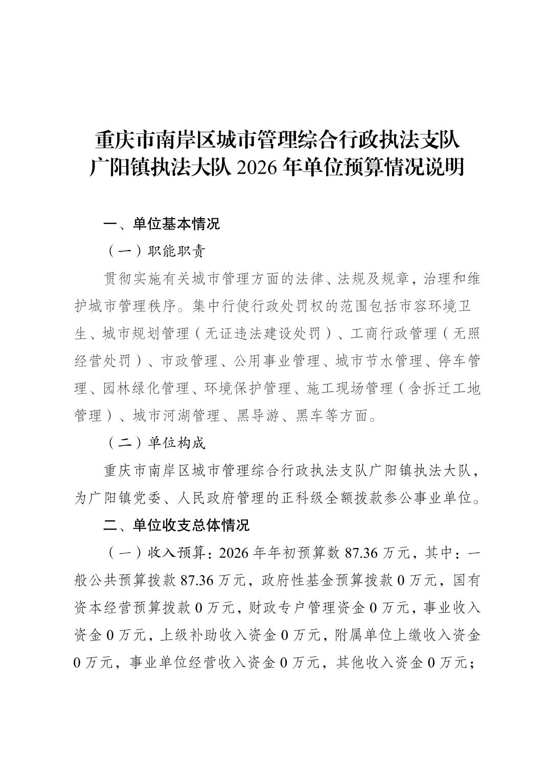 重庆市南岸区城市管理综合行政执法支队广阳镇执法大队2026年单位预算情况说明